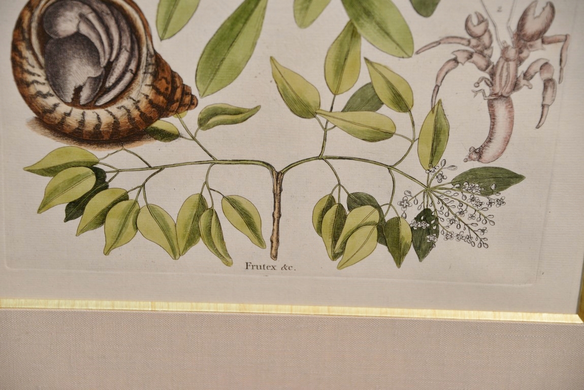 Mark Catesby 1679-1749 pair of hand colored copper plate engravings The Sea Hermit Crab Frutex Plate #33 and Bignonia Americana Plate #82 From The Natural History of Carolina, Florida and the Bahama Islands Second Edition London 1754 framed by W. Graham Arader III sight size: 15 x 11 1/2 Provenance: Property from Credit Suisse’s Americana Collection