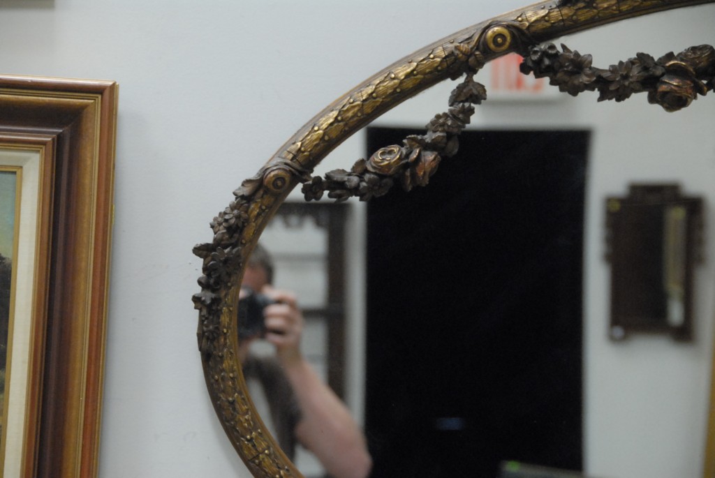 Oval gilt decorated mirror, ht. 34in. wd. 50in.