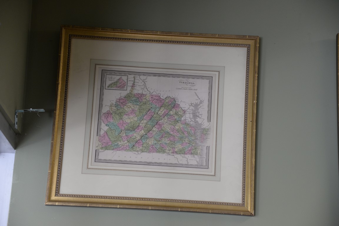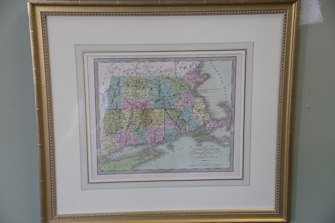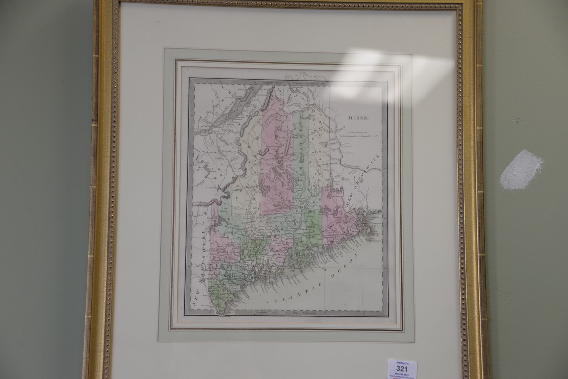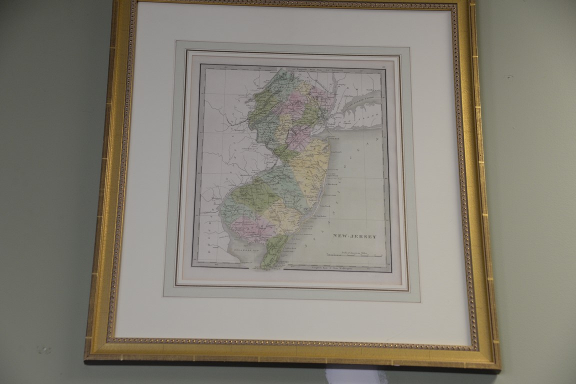 Six Jeremiah Greenleaf handcolored map engraving small folios A New Universal Atlas including New Jersey, United States, Virginia, Pennsylvania, Massachusetts/Rhode Island/Connecticut, and Maine, all framed and matted. ss 11 1/4 x 13 1/2 and 13 1/2 x 11 1/4 Provenance: Property from Credit Suisse’s Americana Collection