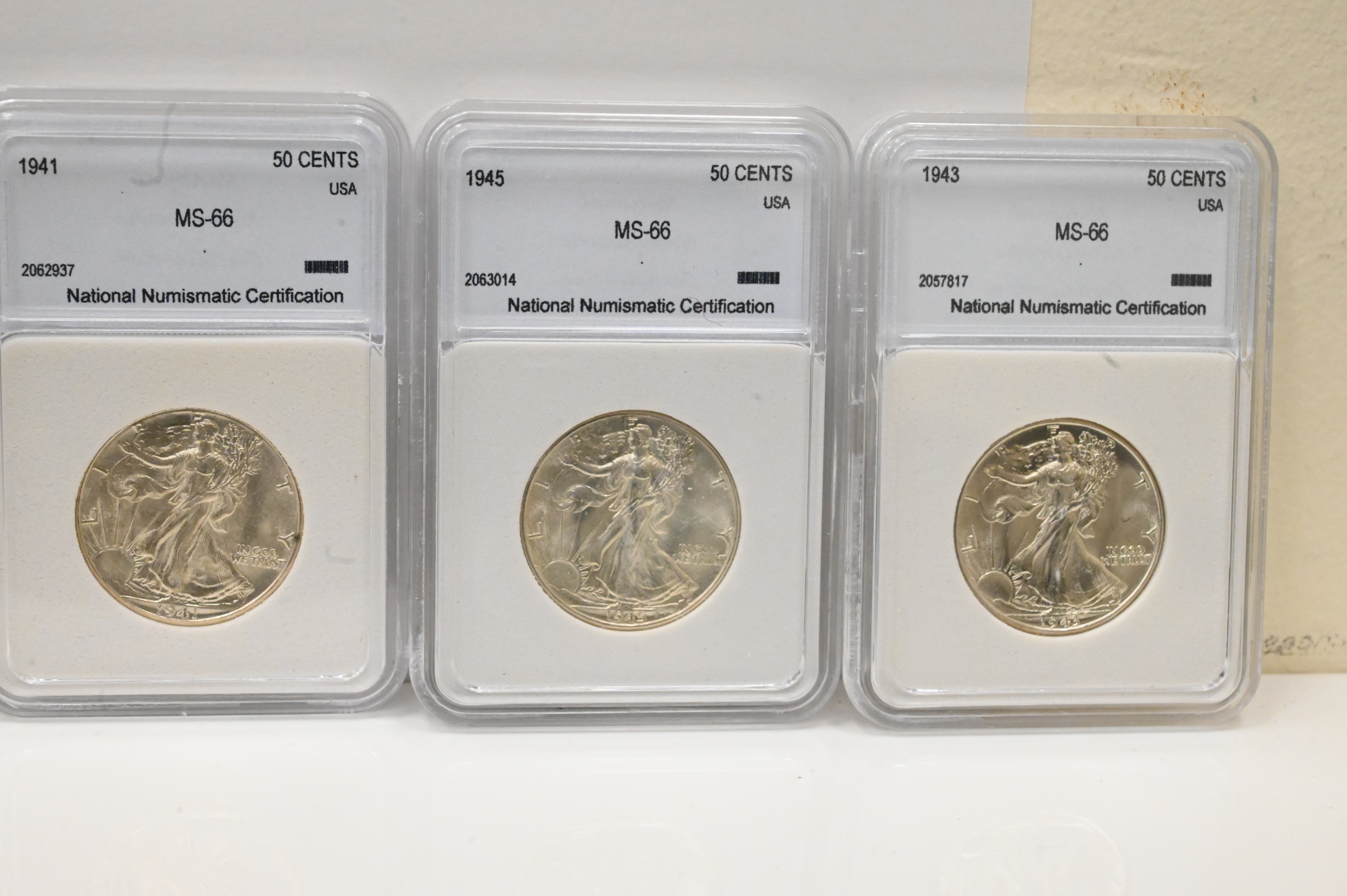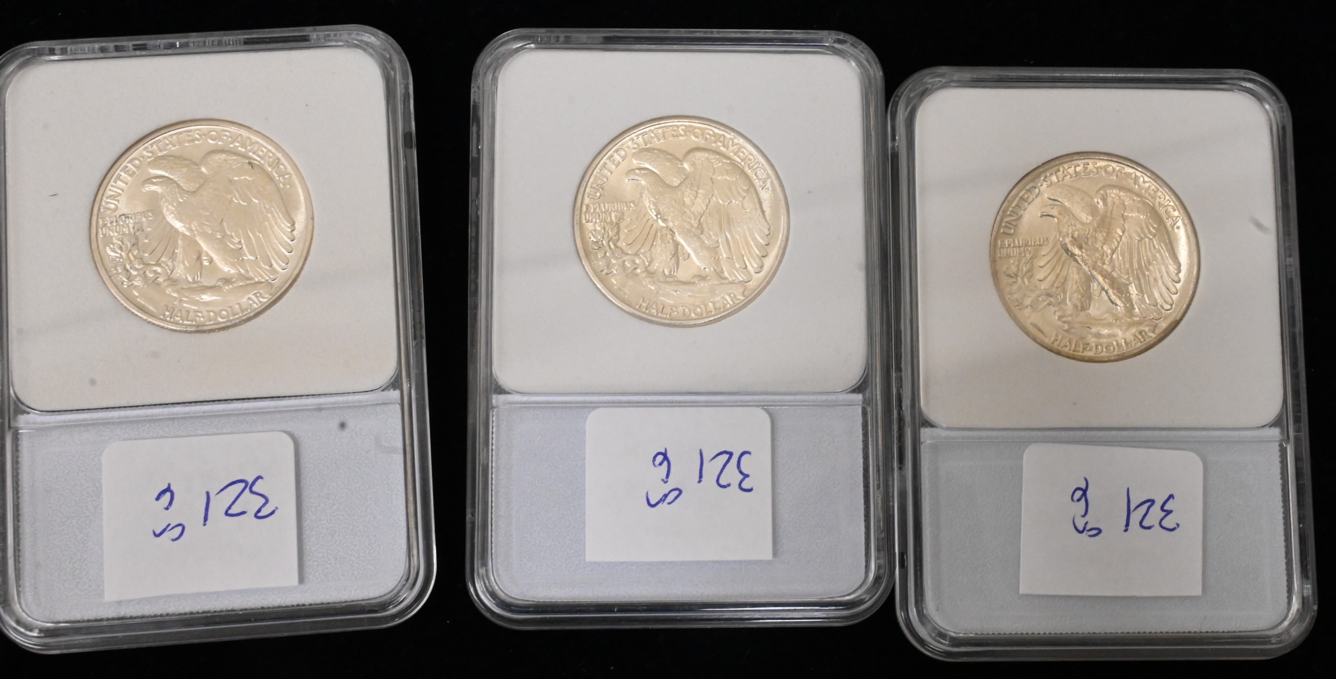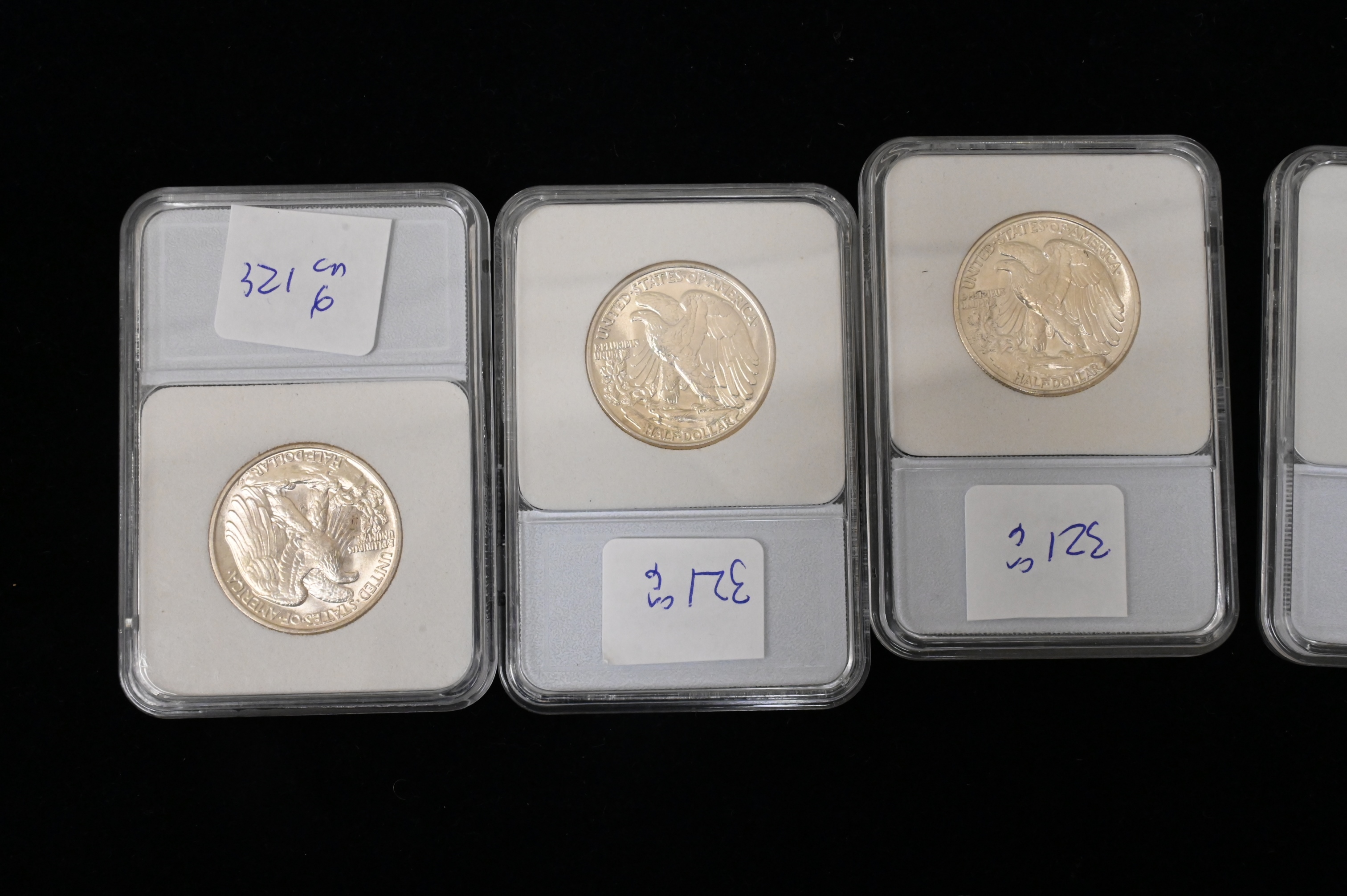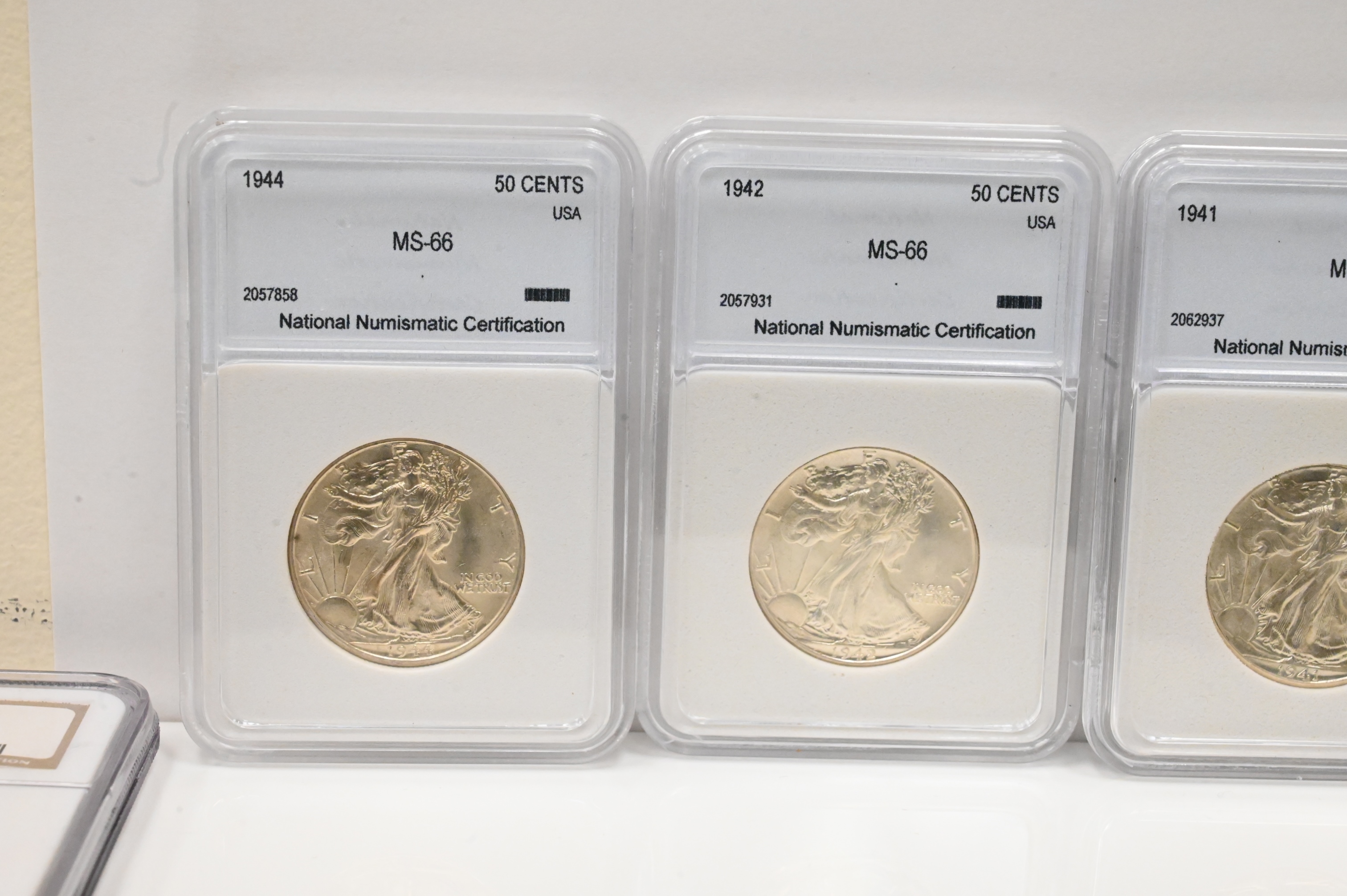 Six Piece Graded Coin Lot, to include 1909-S NGC graded fine Indian Head cent, along with five Walking Liberty halves graded ms66 by nat’l numismatic