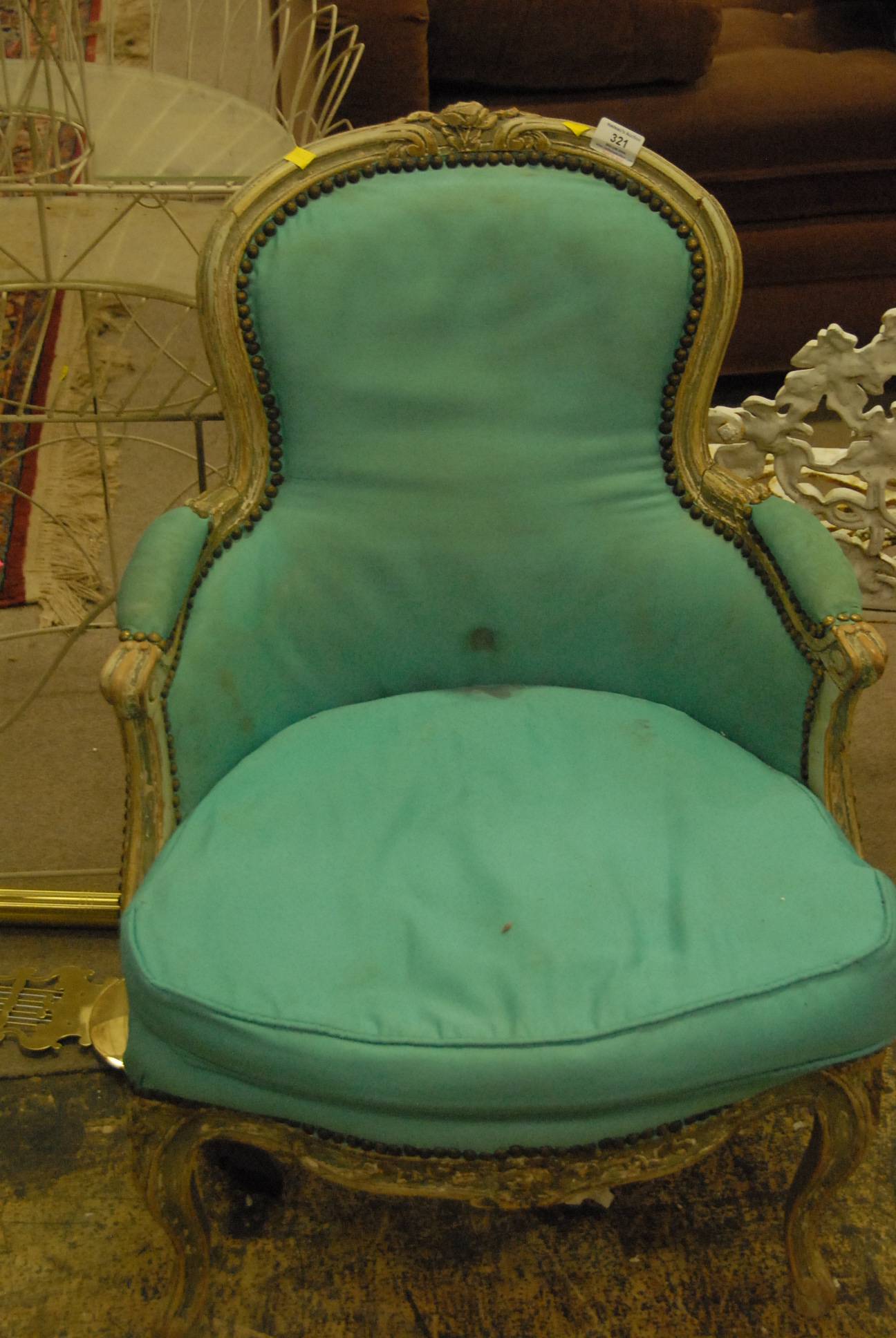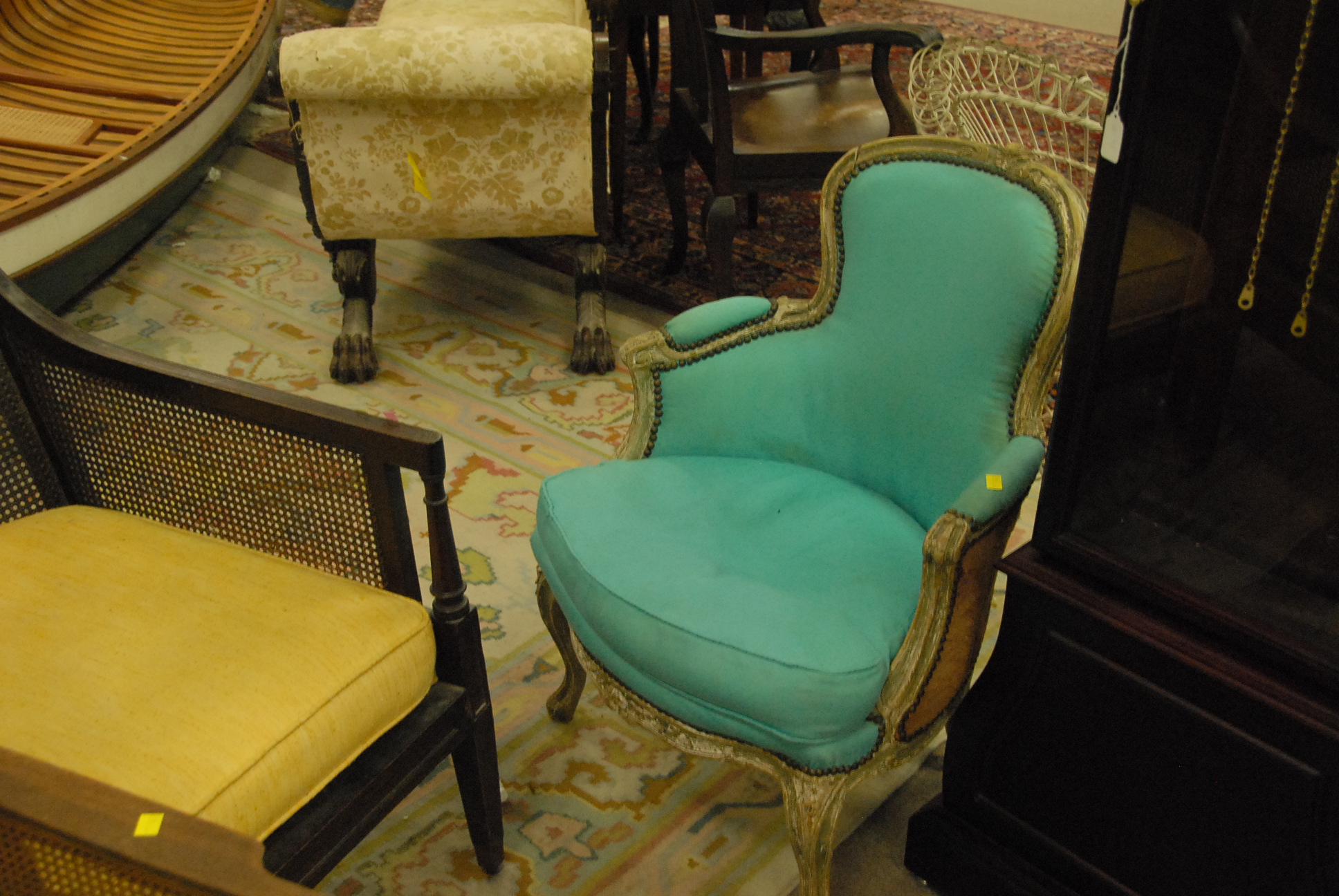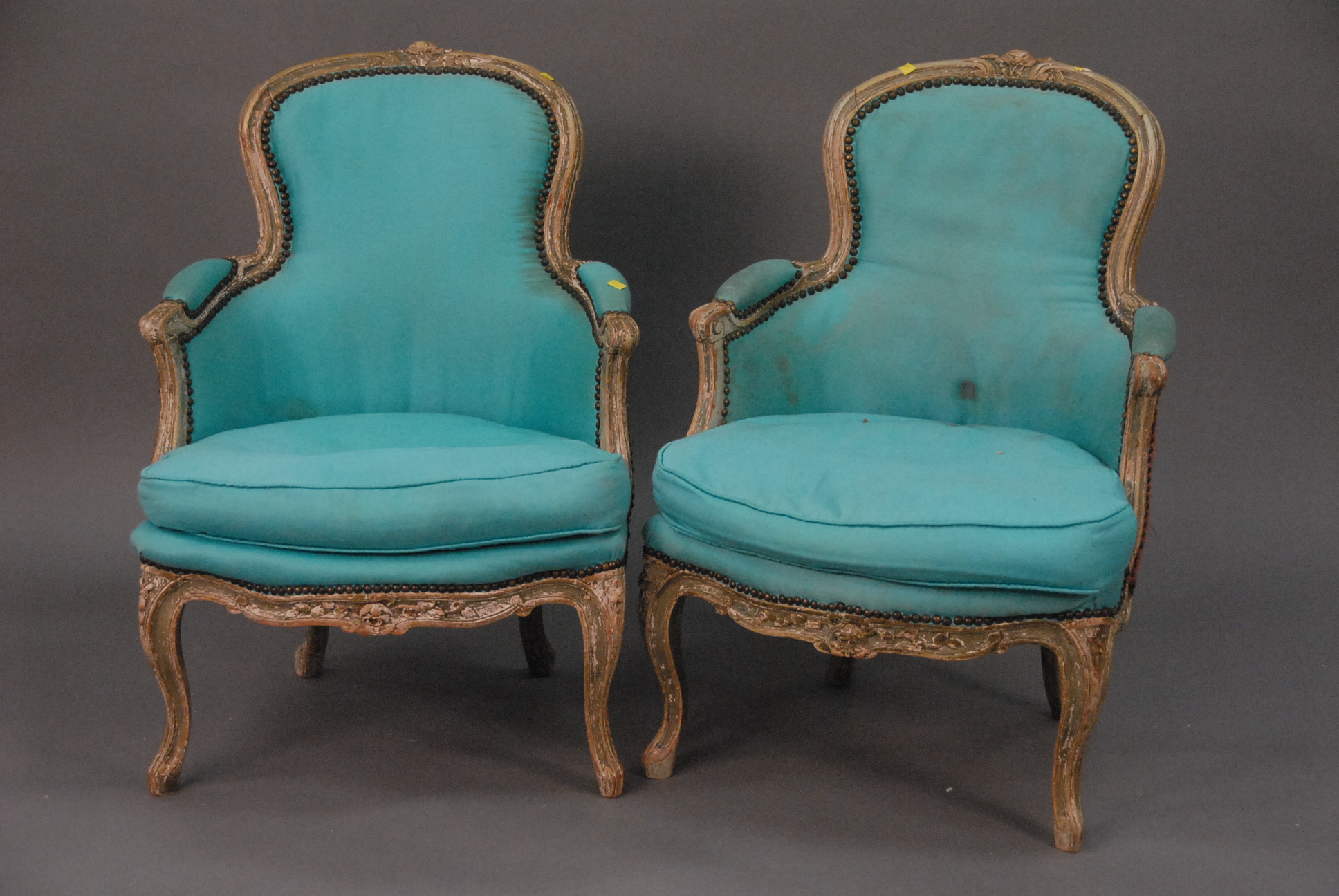Lot 321: Two pairs of chair to include a pair of Louis XV style armchairs backs as is and pair of caned armchairs.