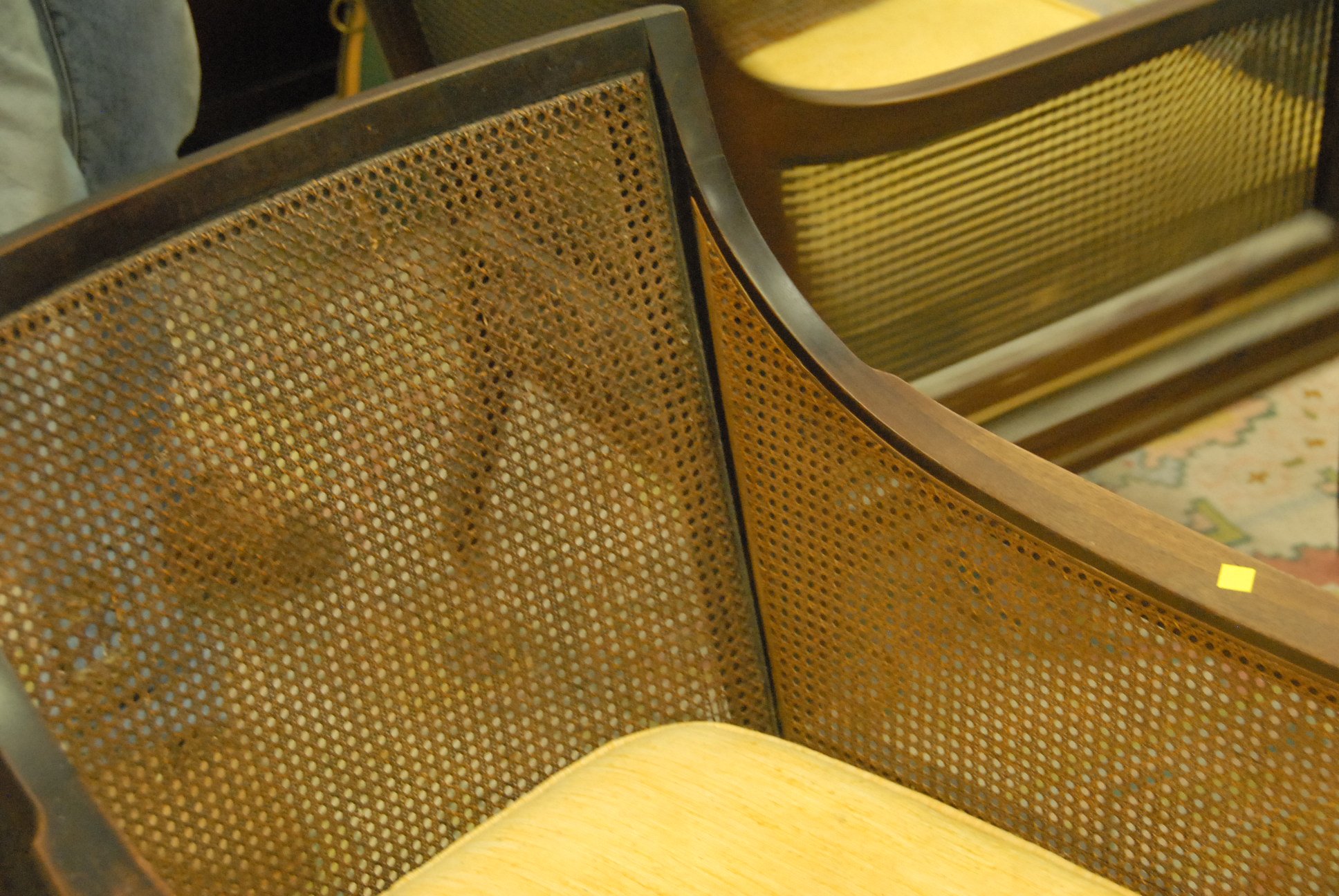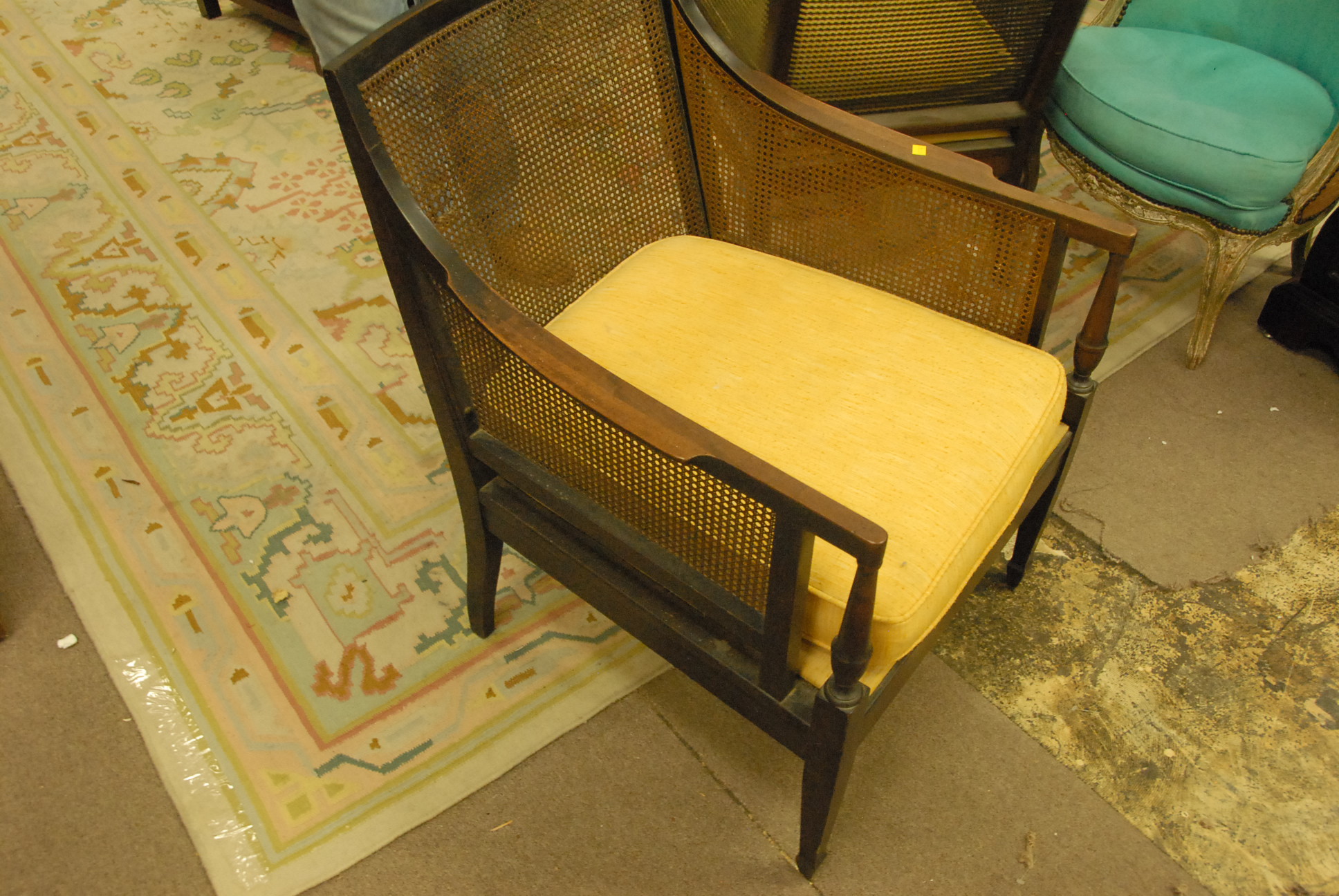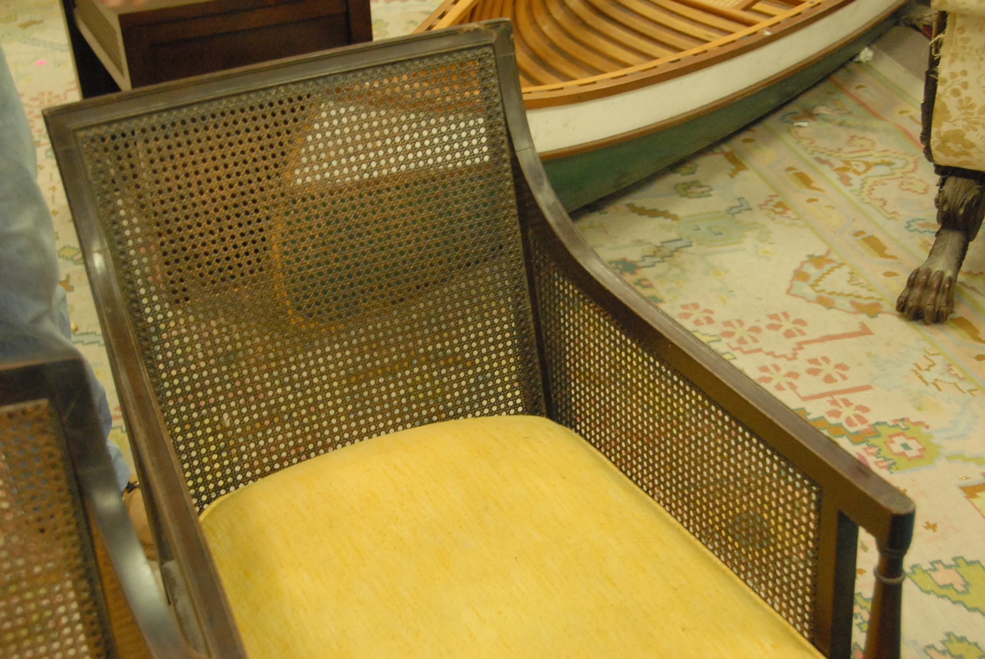 Two pairs of chair to include a pair of Louis XV style armchairs backs as is and pair of caned armchairs.