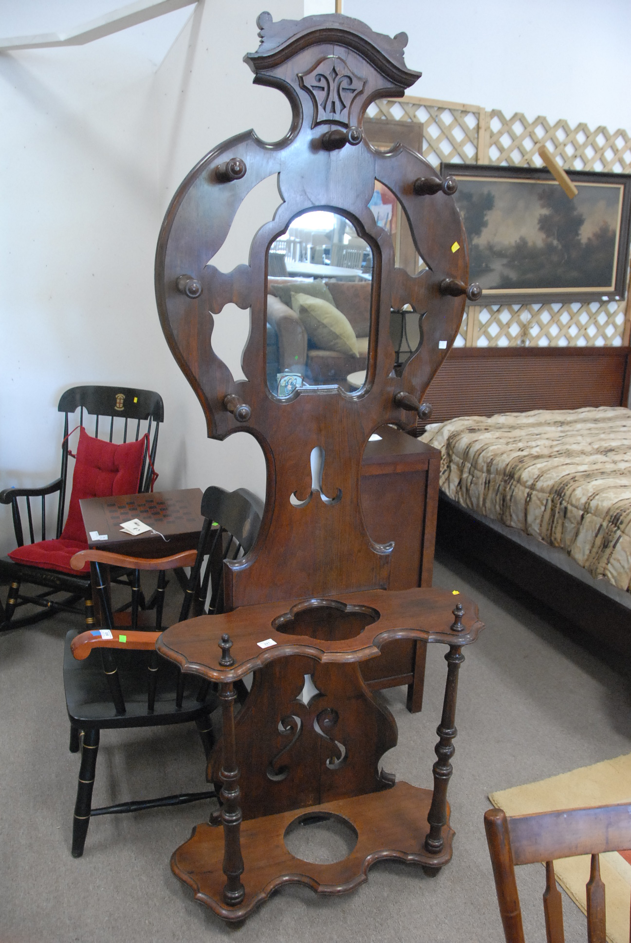 Walnut Victorian hall rack with mirror, ht. 81in.