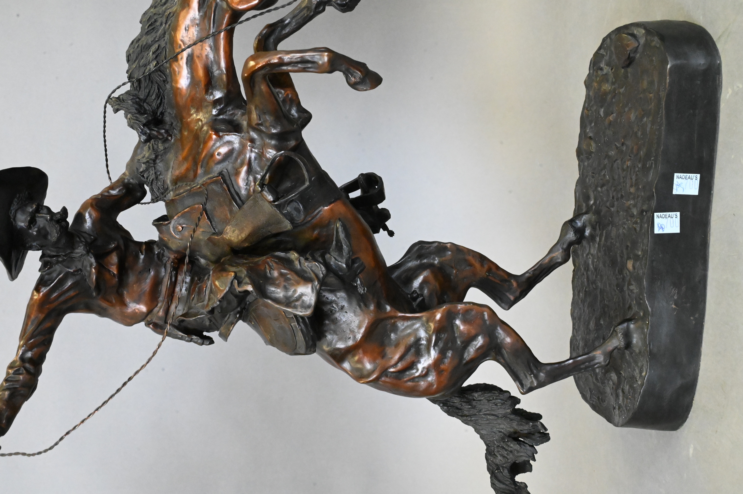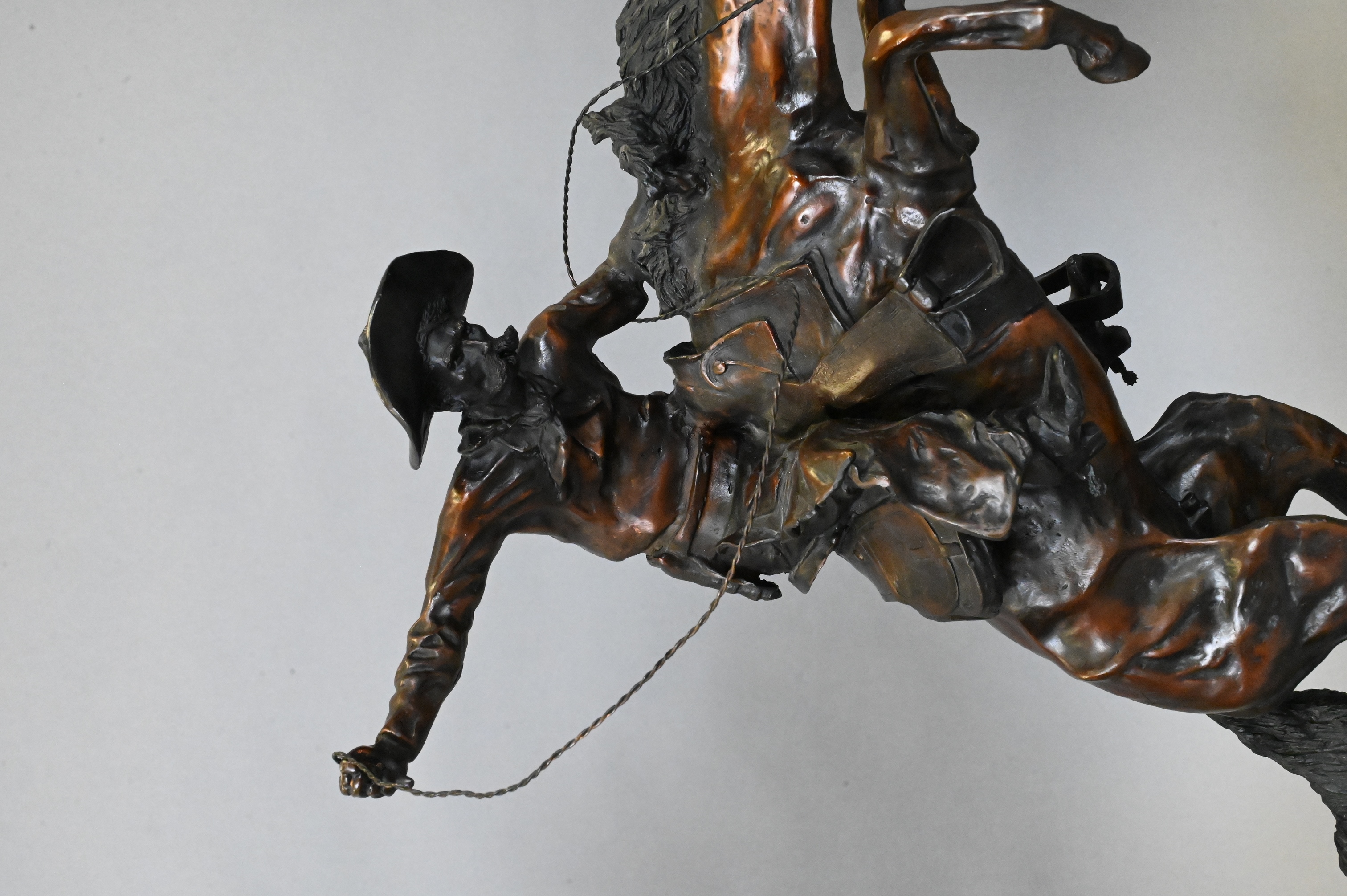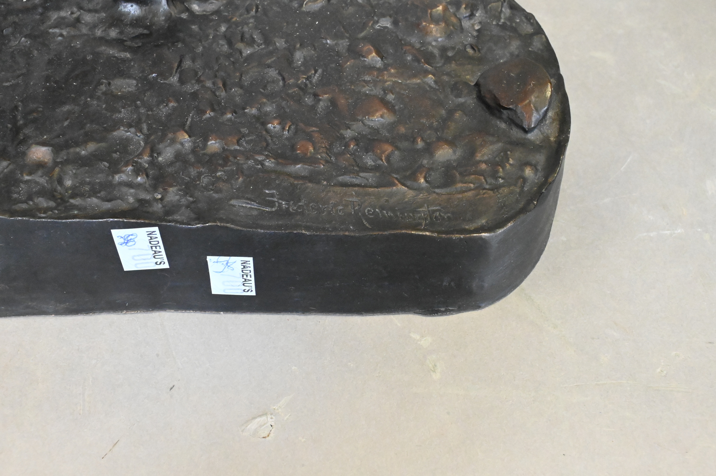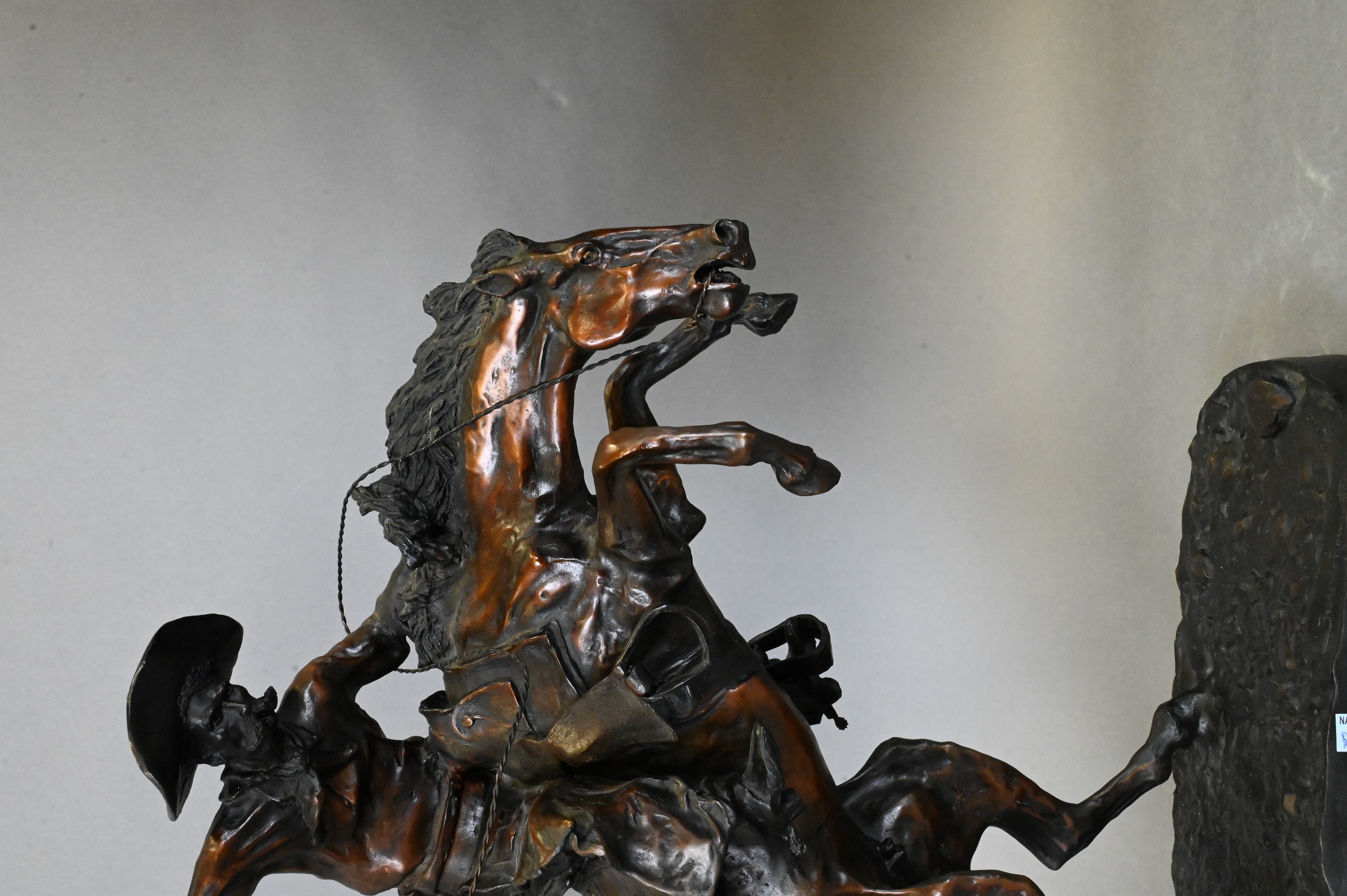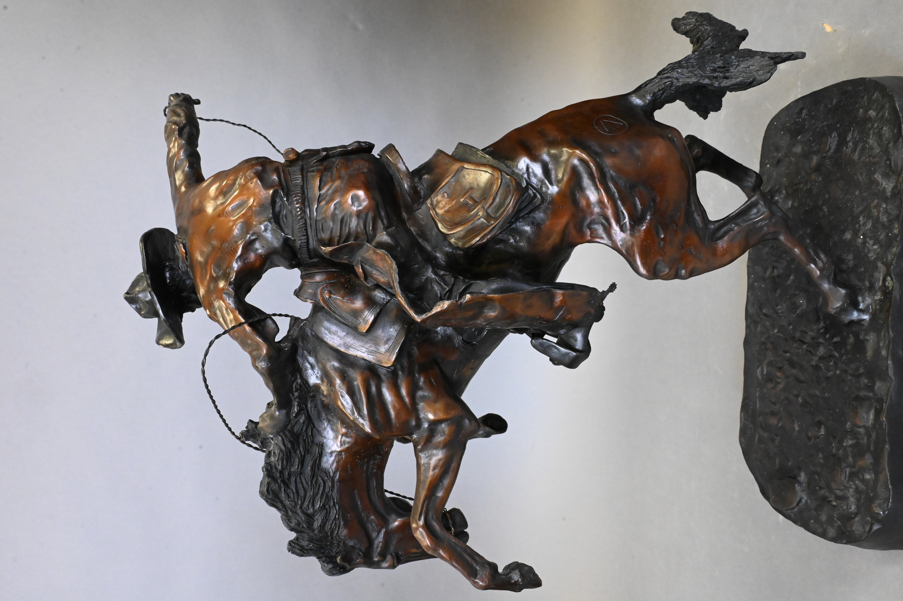 Signed on base Frederic Remington, Triangle Horse’s brand mark and “R” stamped to horse’s rear