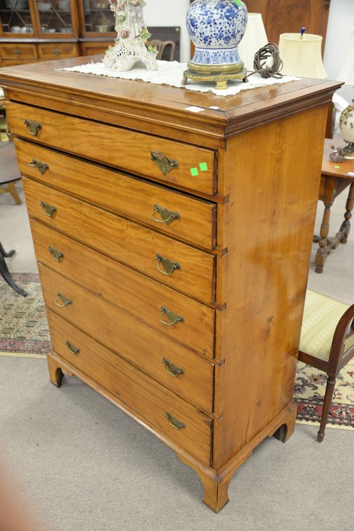 Lot 322: Chippendale tall chest having six graduated drawers over bracket feet. ht. 52in., lg. 39in., dp. 19in.