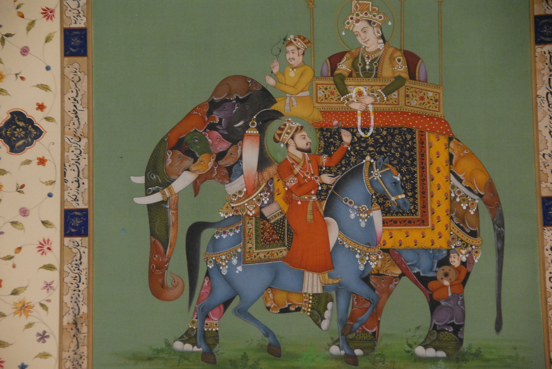 Composite painting of King Soloman welcoming the Queen, mounted with semi precious stones, 20 x 16.