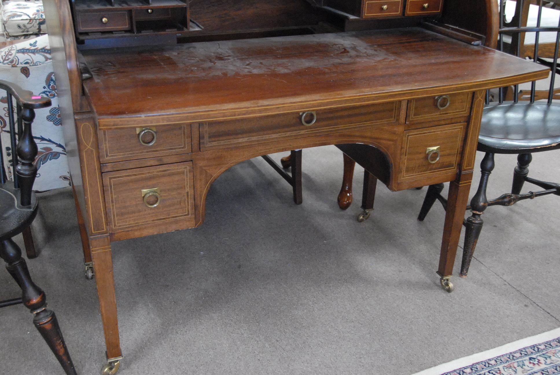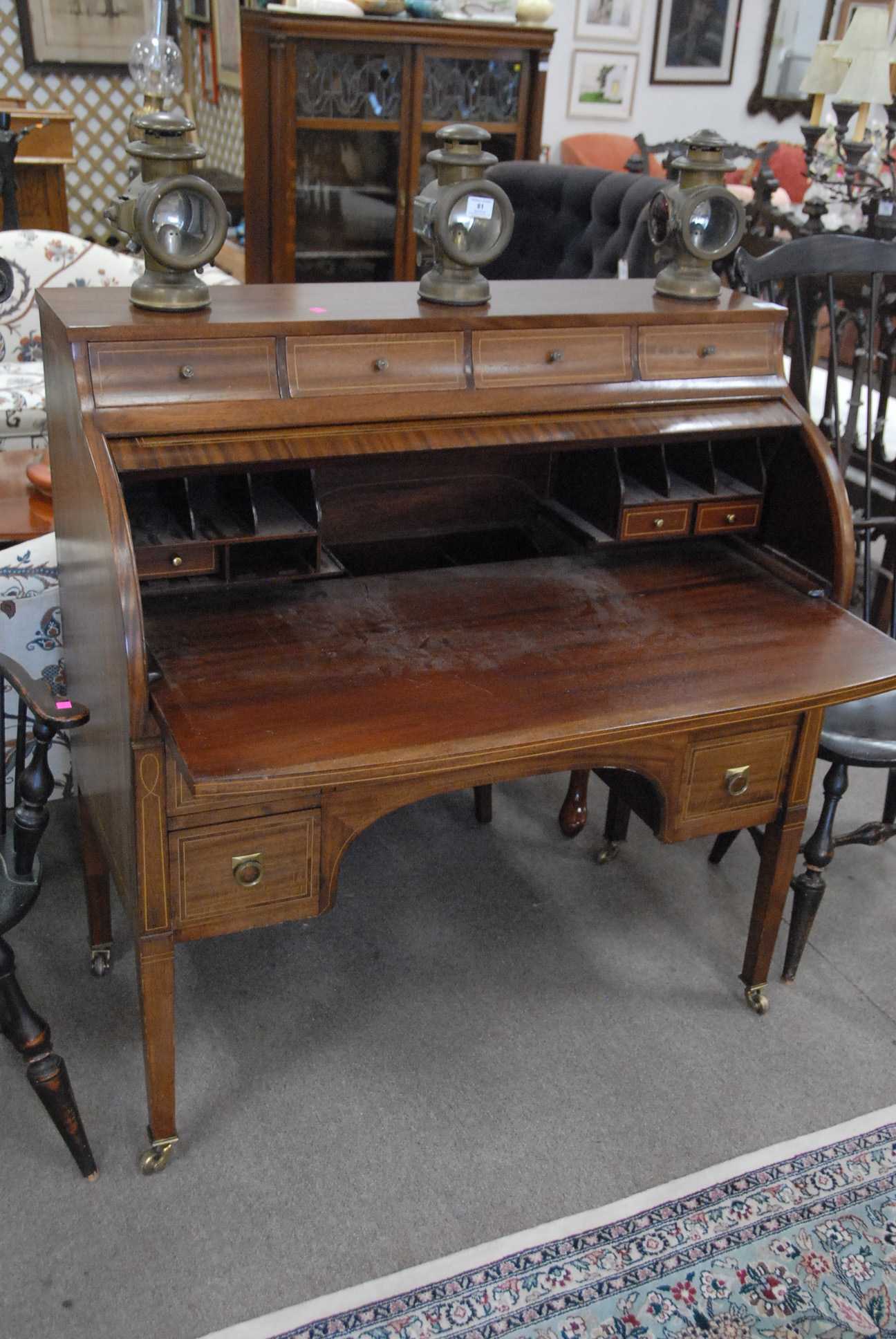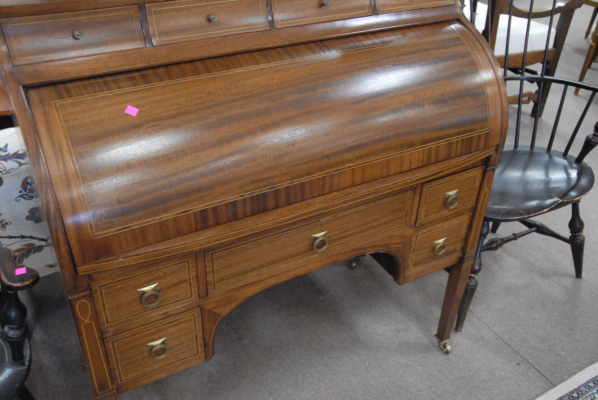 Custom mahogany cylinder roll top desk, ht. 45in. wd. 42 1/2in.