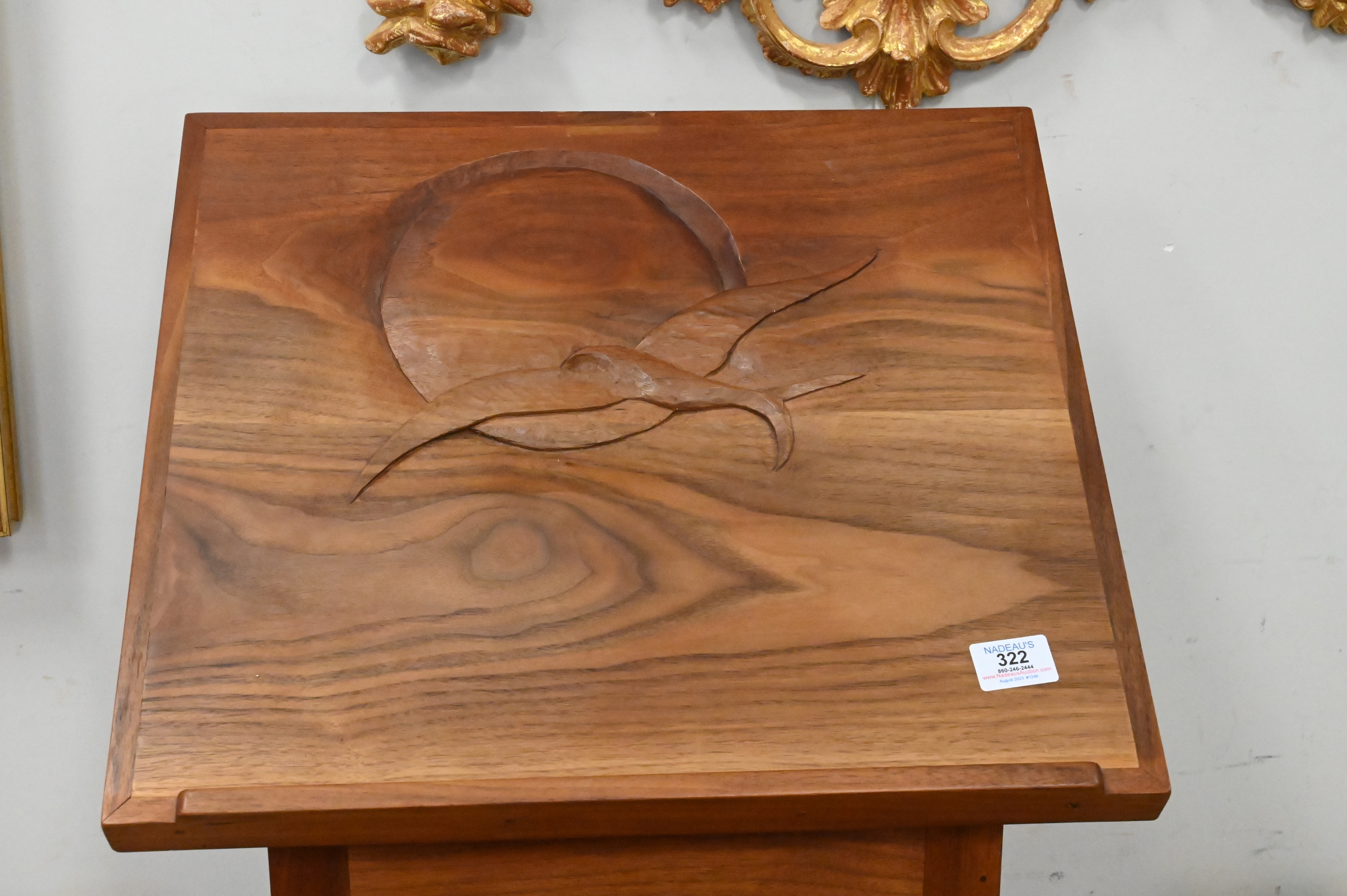 Custom Podium with Carved Bird, on an adjustable top and one long door, height 42 1/2 inches, top 19″ x 17″