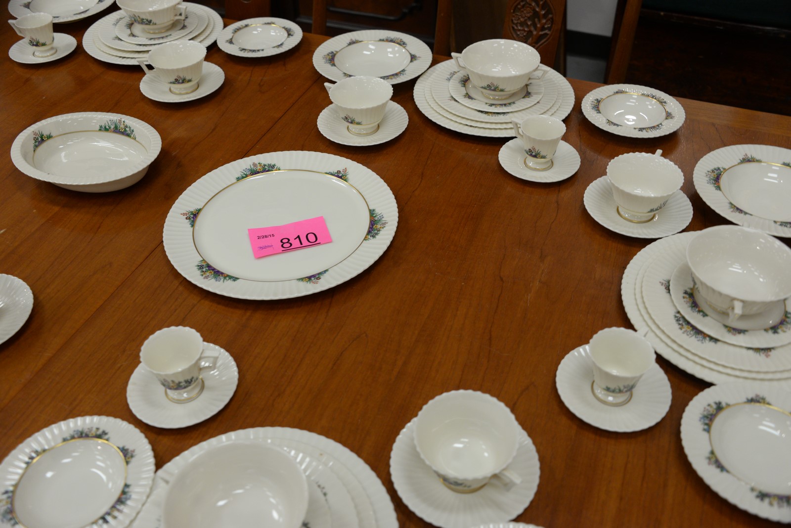 Dining table with two 18 inch leaves and eight Chinese style chairs. ht. 29 in. top: 44 x 68 opens to 104 in.
