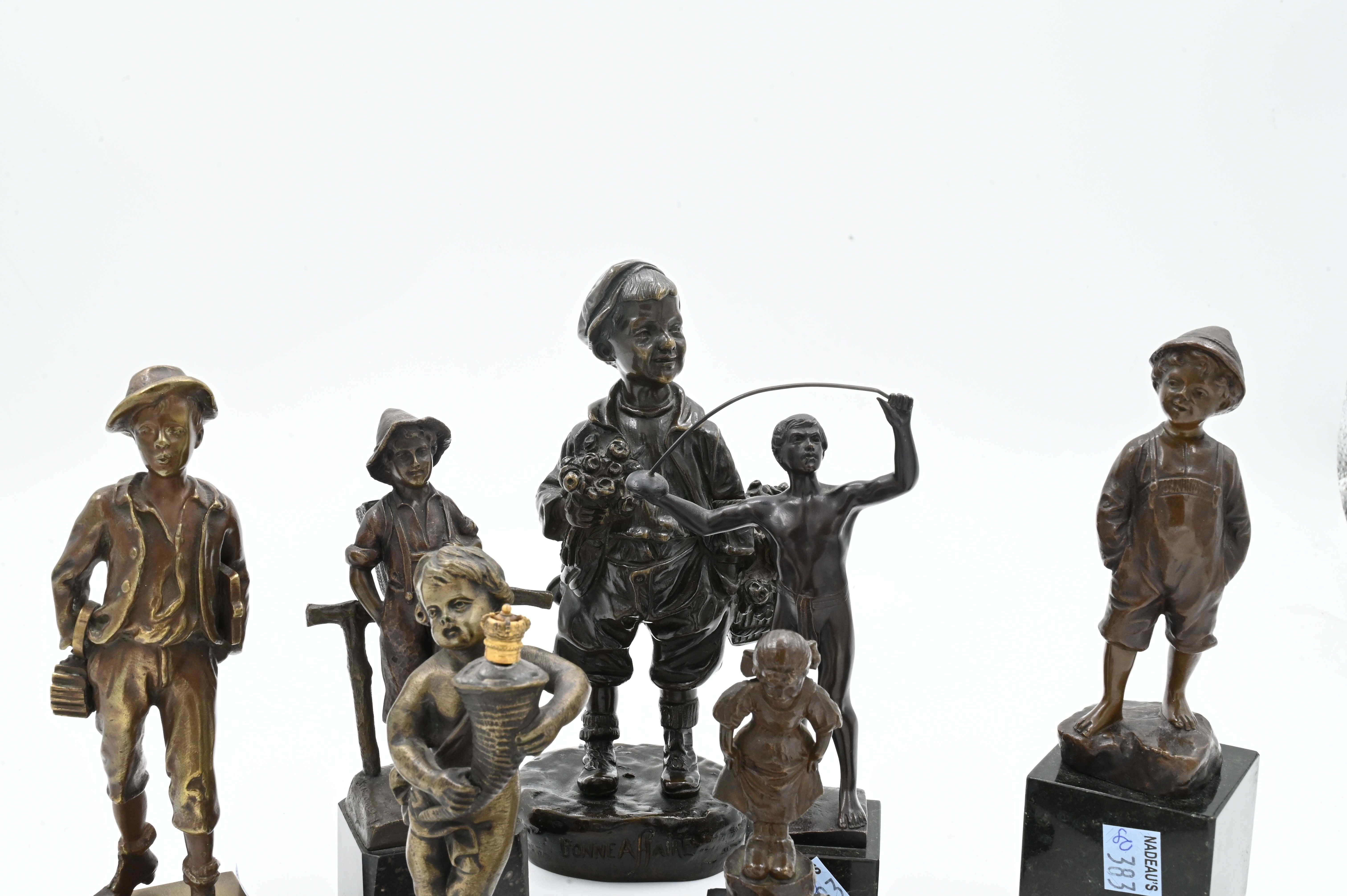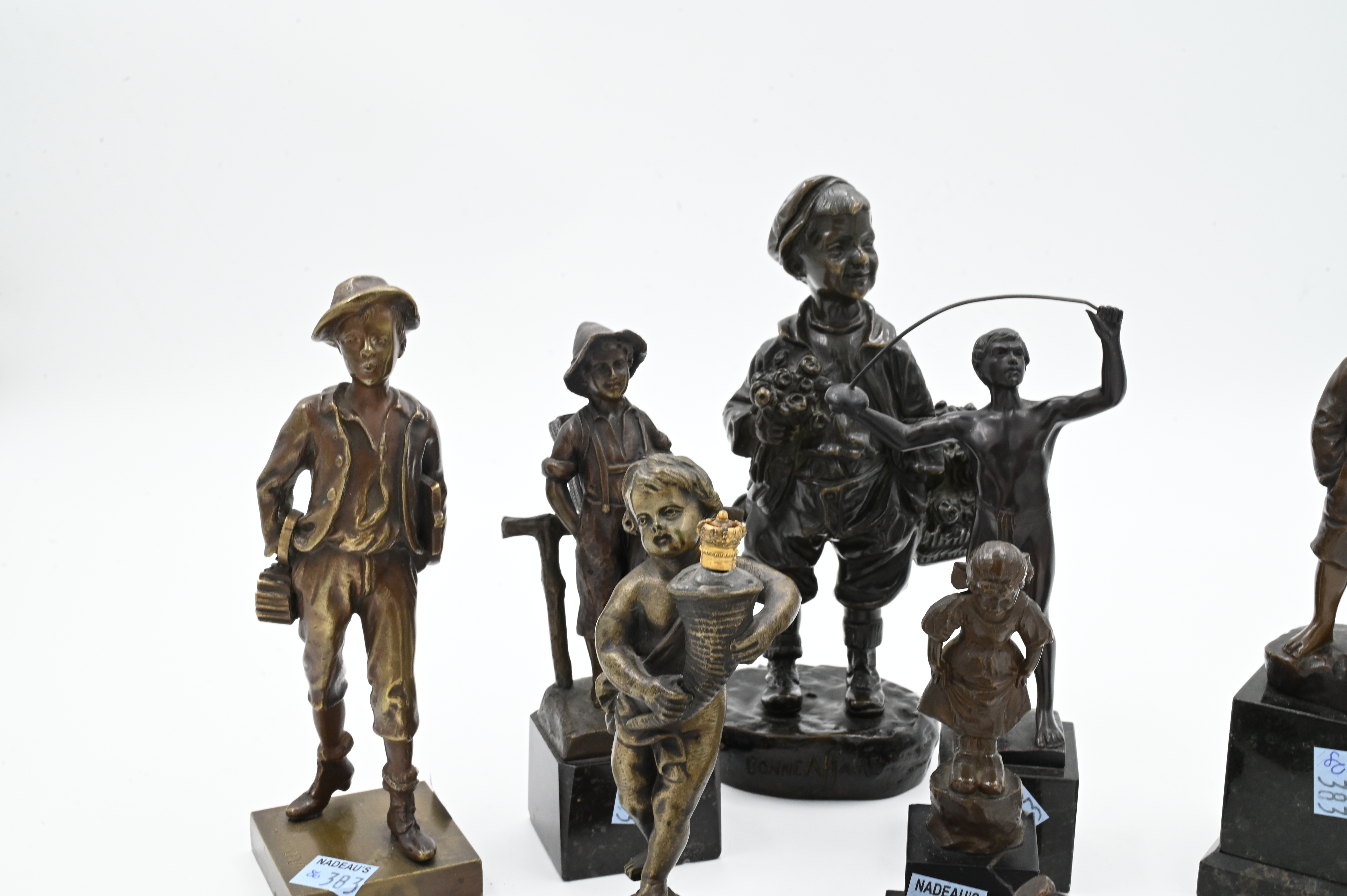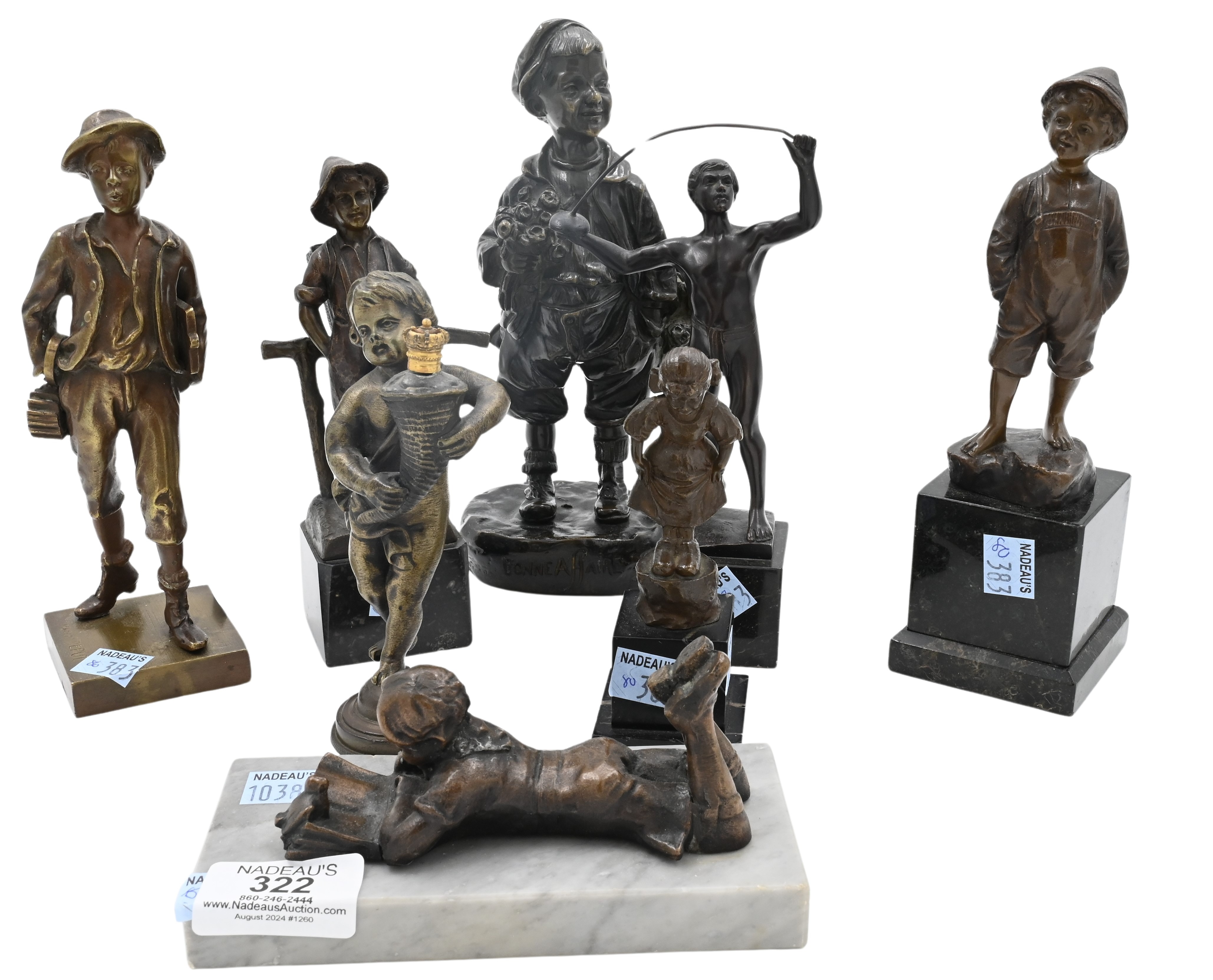 putti with cornucopia, girl with slippers signed Hambuvger, Schmidt-Felling (German 1835-1920) German boy, Hans Keck (Austrian 1875-1941) The Fencer, boy with flowers signed, Marcel Debut (French) School Boy, Austrian boy signed, child reading on grey marble, some on marble bases