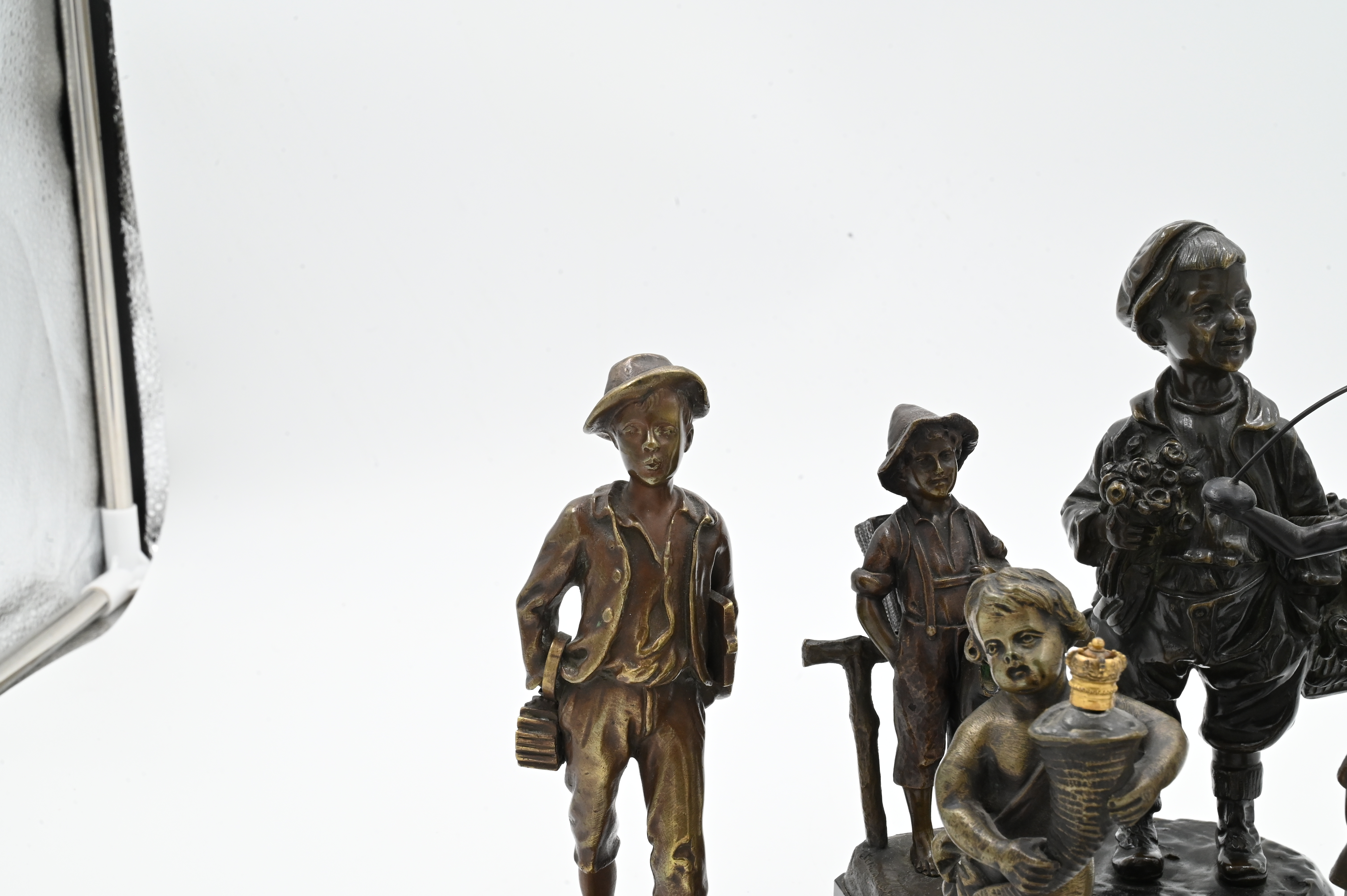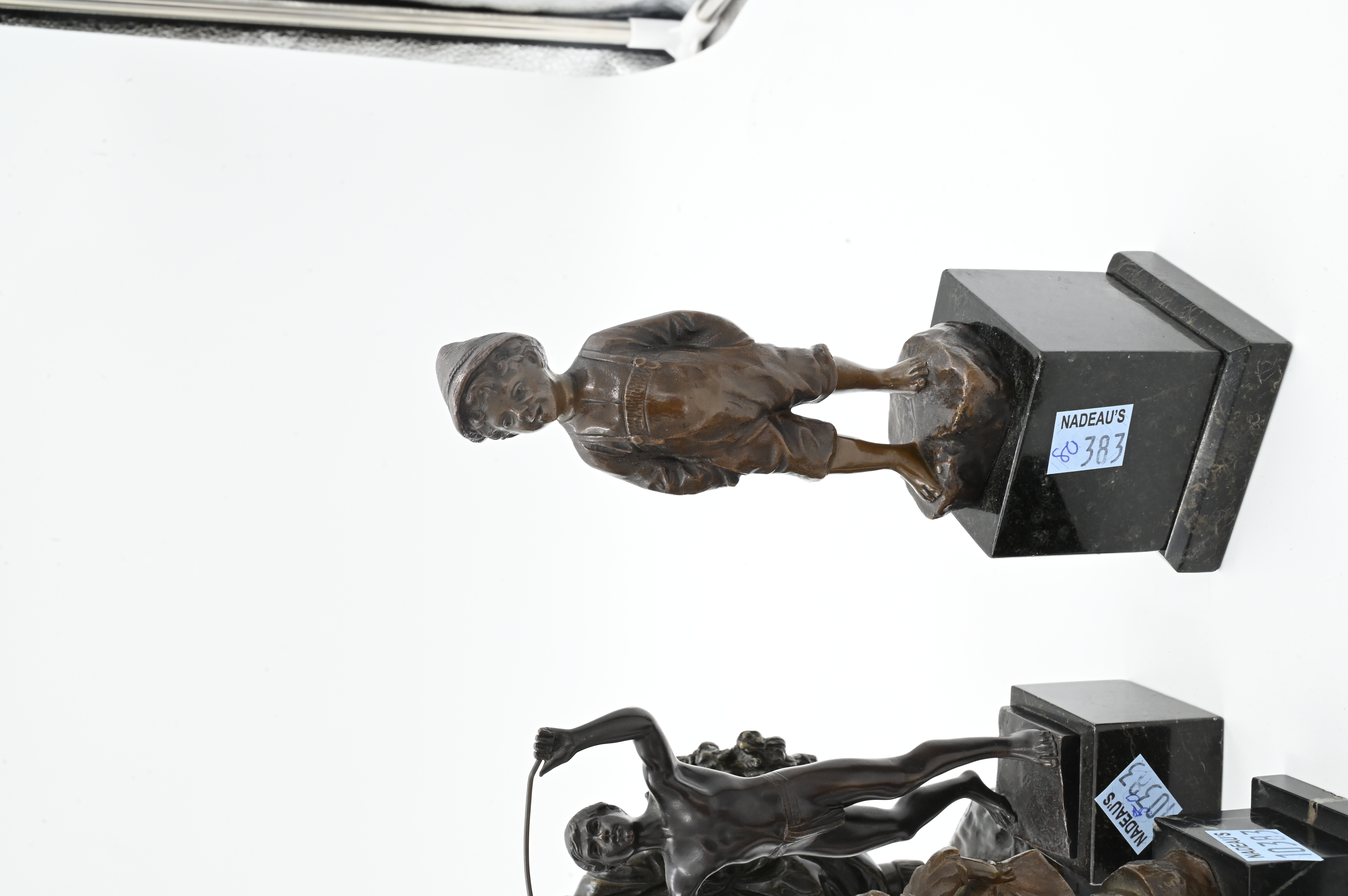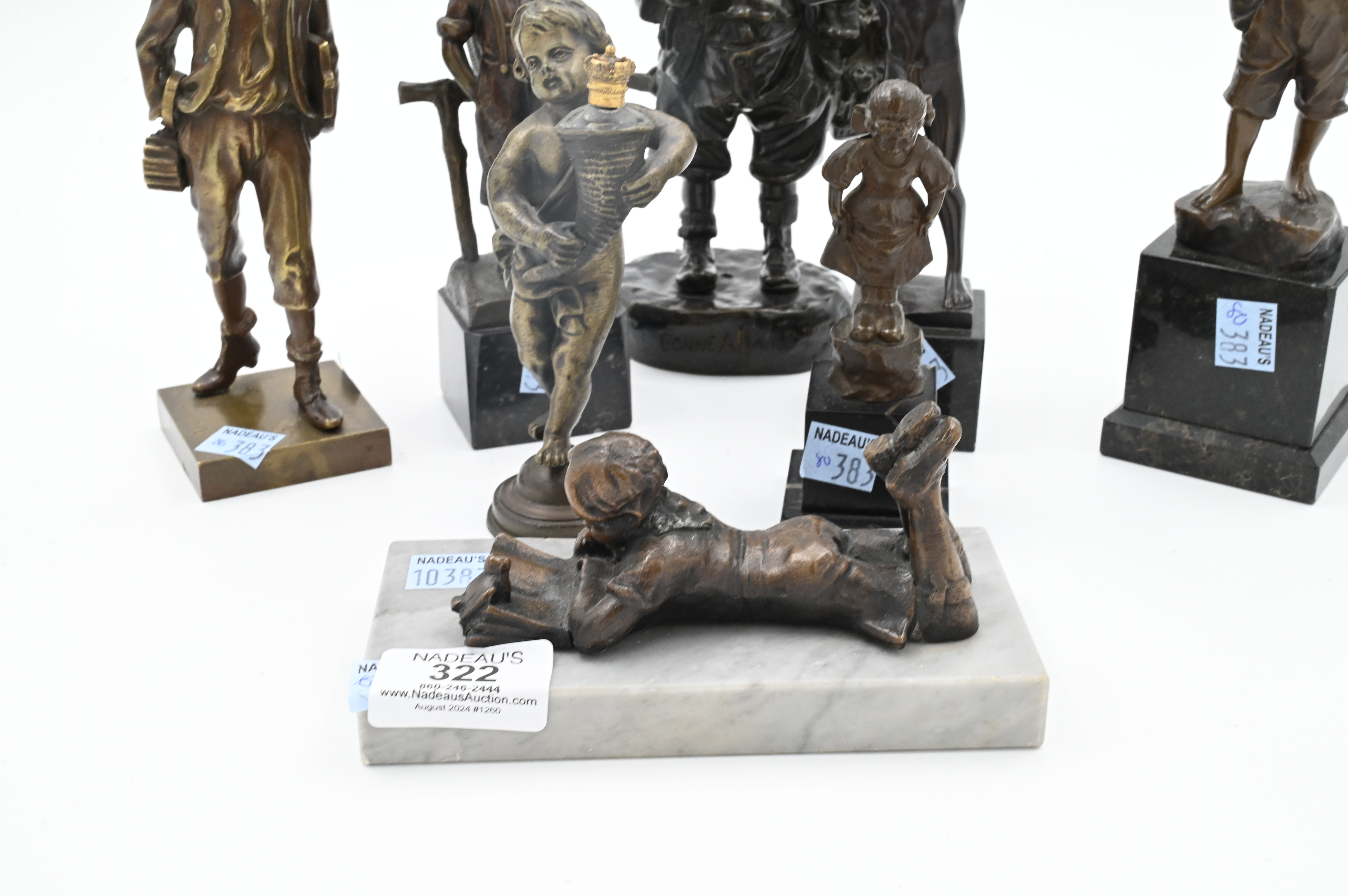 putti with cornucopia, girl with slippers signed Hambuvger, Schmidt-Felling (German 1835-1920) German boy, Hans Keck (Austrian 1875-1941) The Fencer, boy with flowers signed, Marcel Debut (French) School Boy, Austrian boy signed, child reading on grey marble, some on marble bases