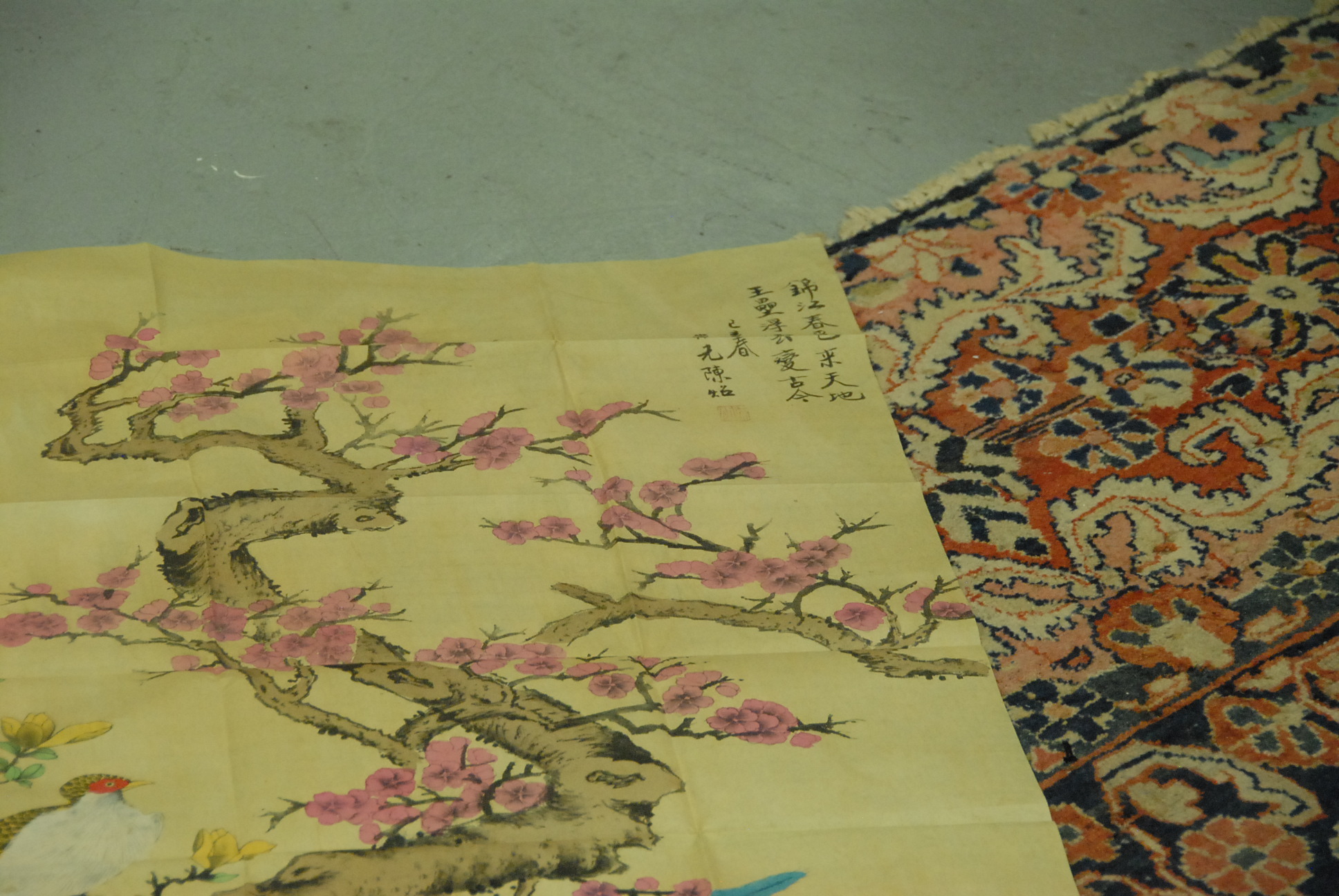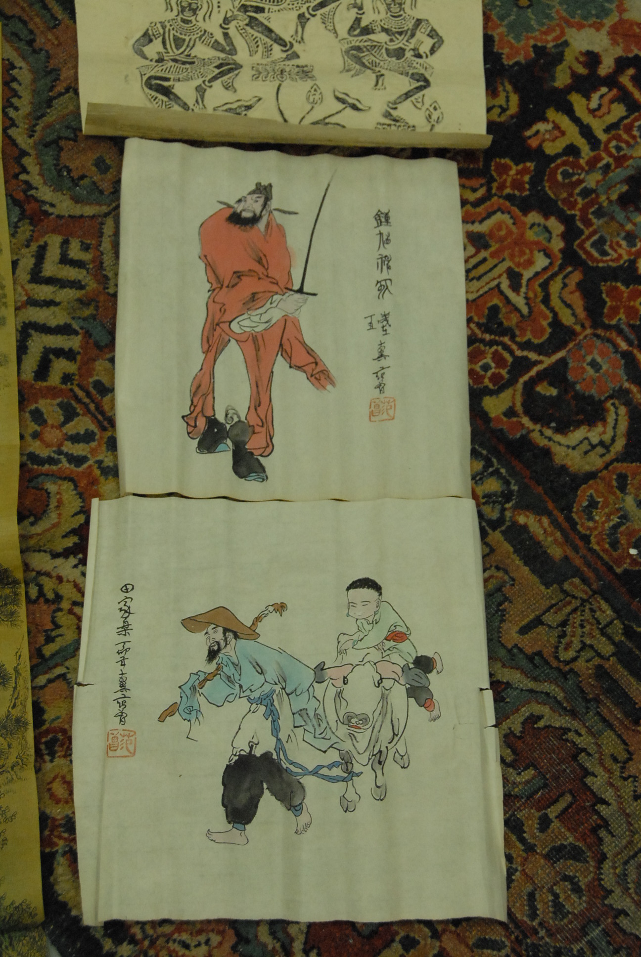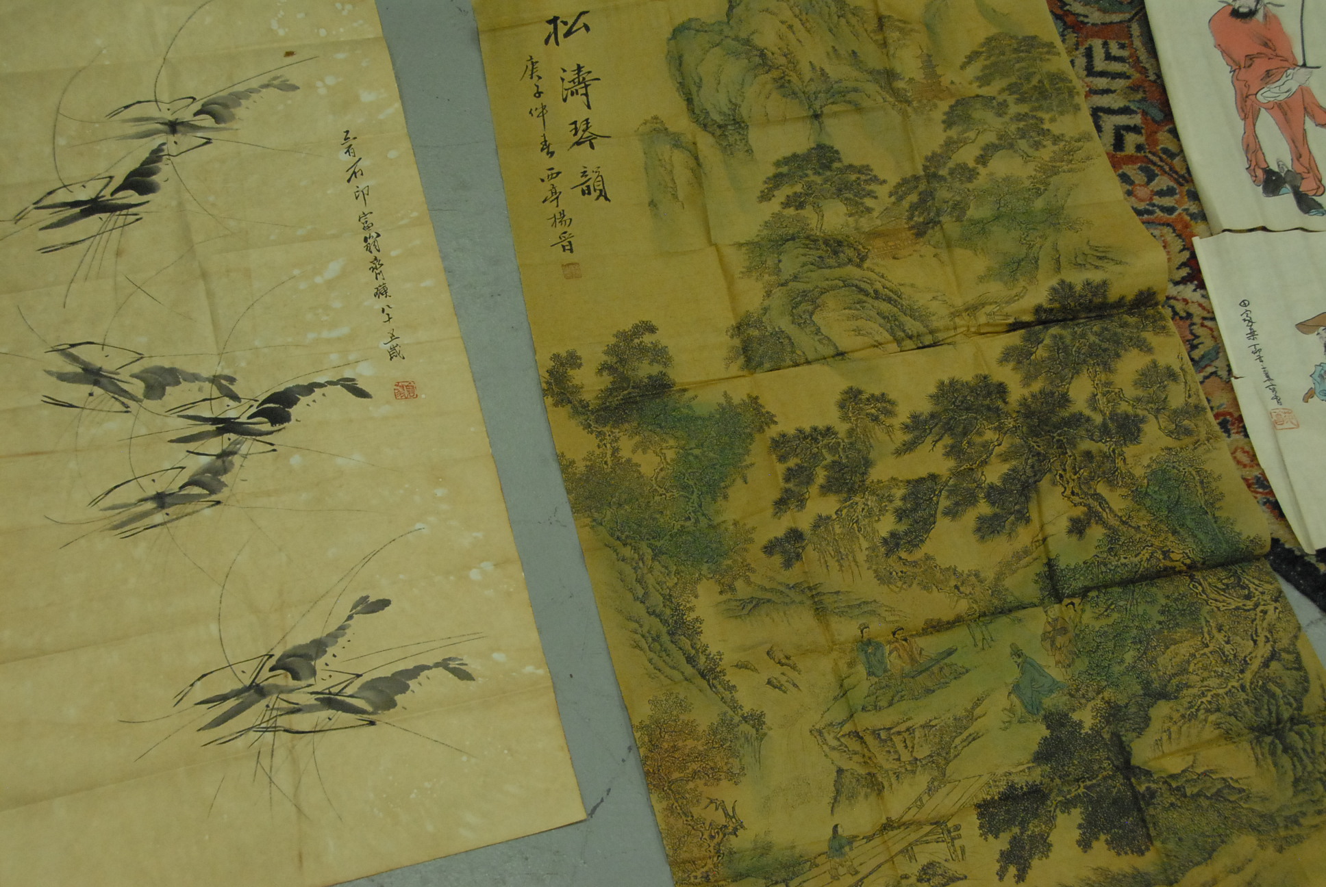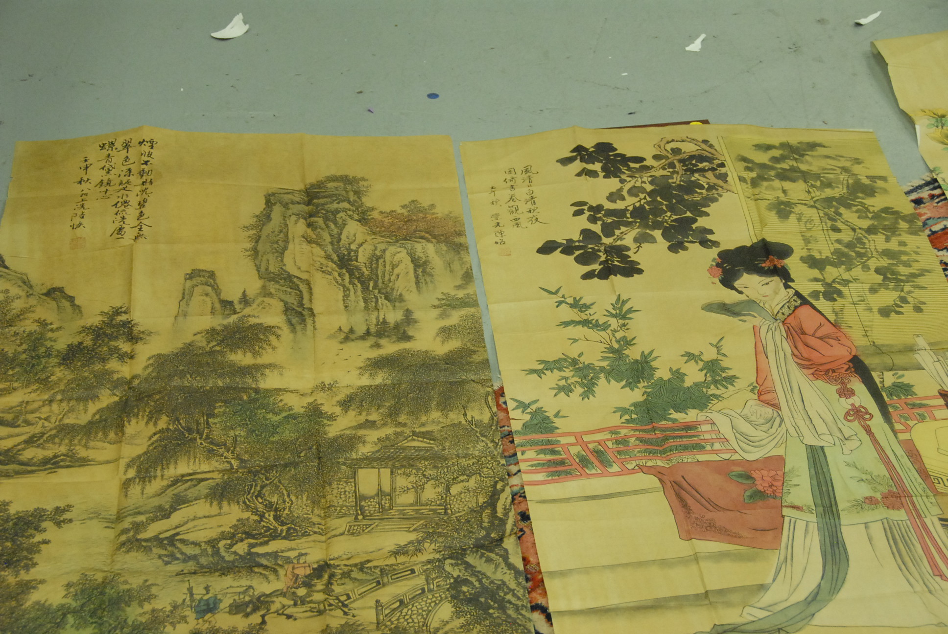 Group of nine paintings on tissue paper, four documentation of artist in a binder.