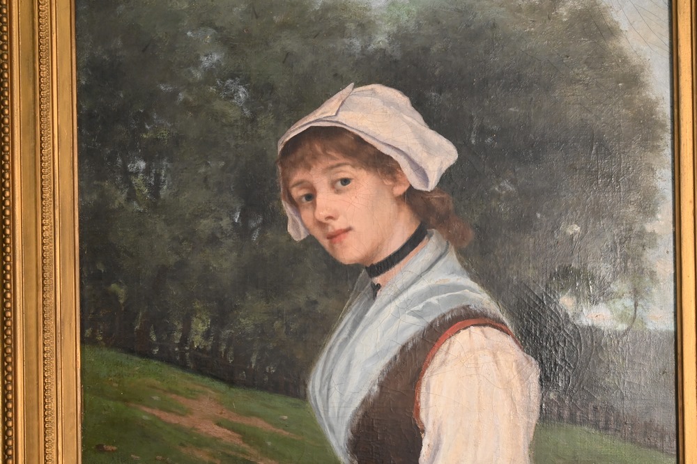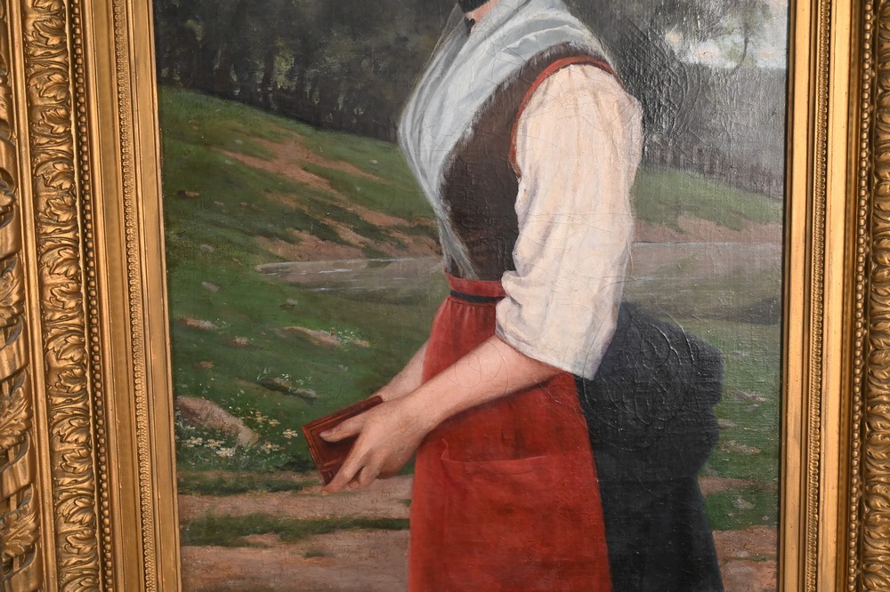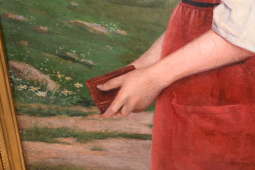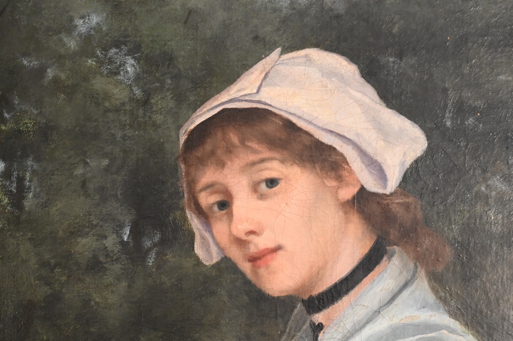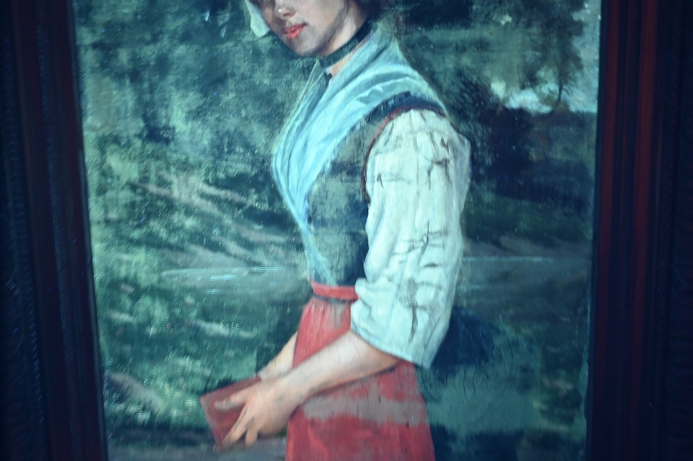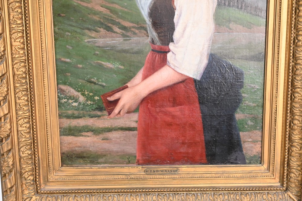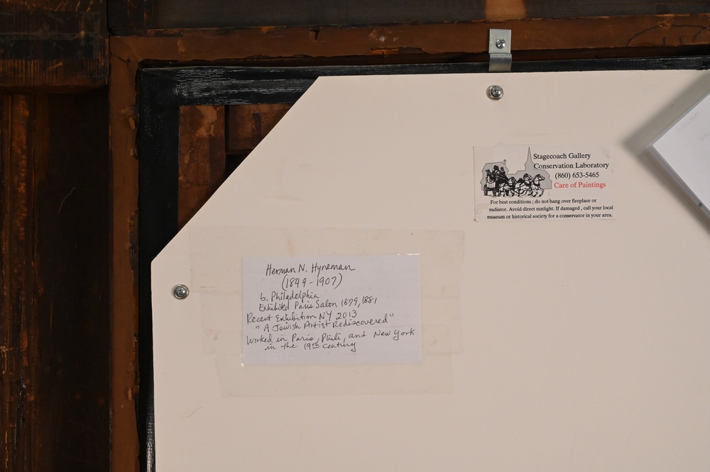 Herman N. Hyneman (1849 – 1907), Sunday Morning, oil on canvas, signed lower left H.N. Hyneman, in Victorian frame, 36″ x 24″. Provenance: Nadeau’s Auction Gallery receipt from March 24, 2001.
