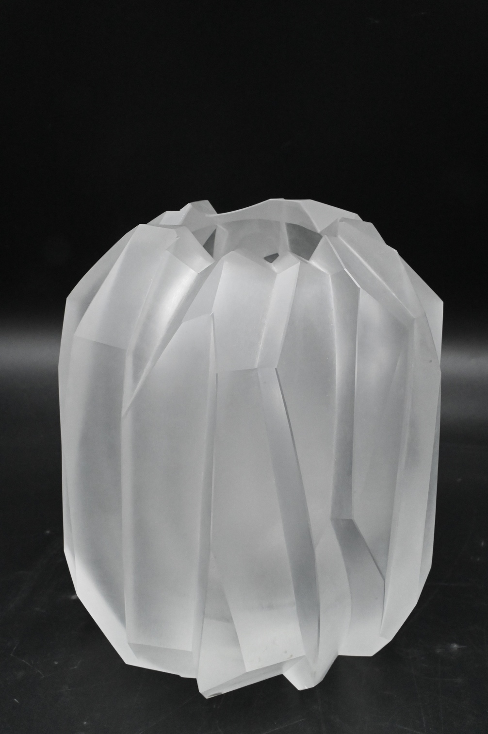 J&L Lobmeyr “Gletscher” Frosted Crystal Vase, having Lobmeyr markings to base, designed by Sebastian Menschhorn, height 9 inches, width 7 1/2 inches.