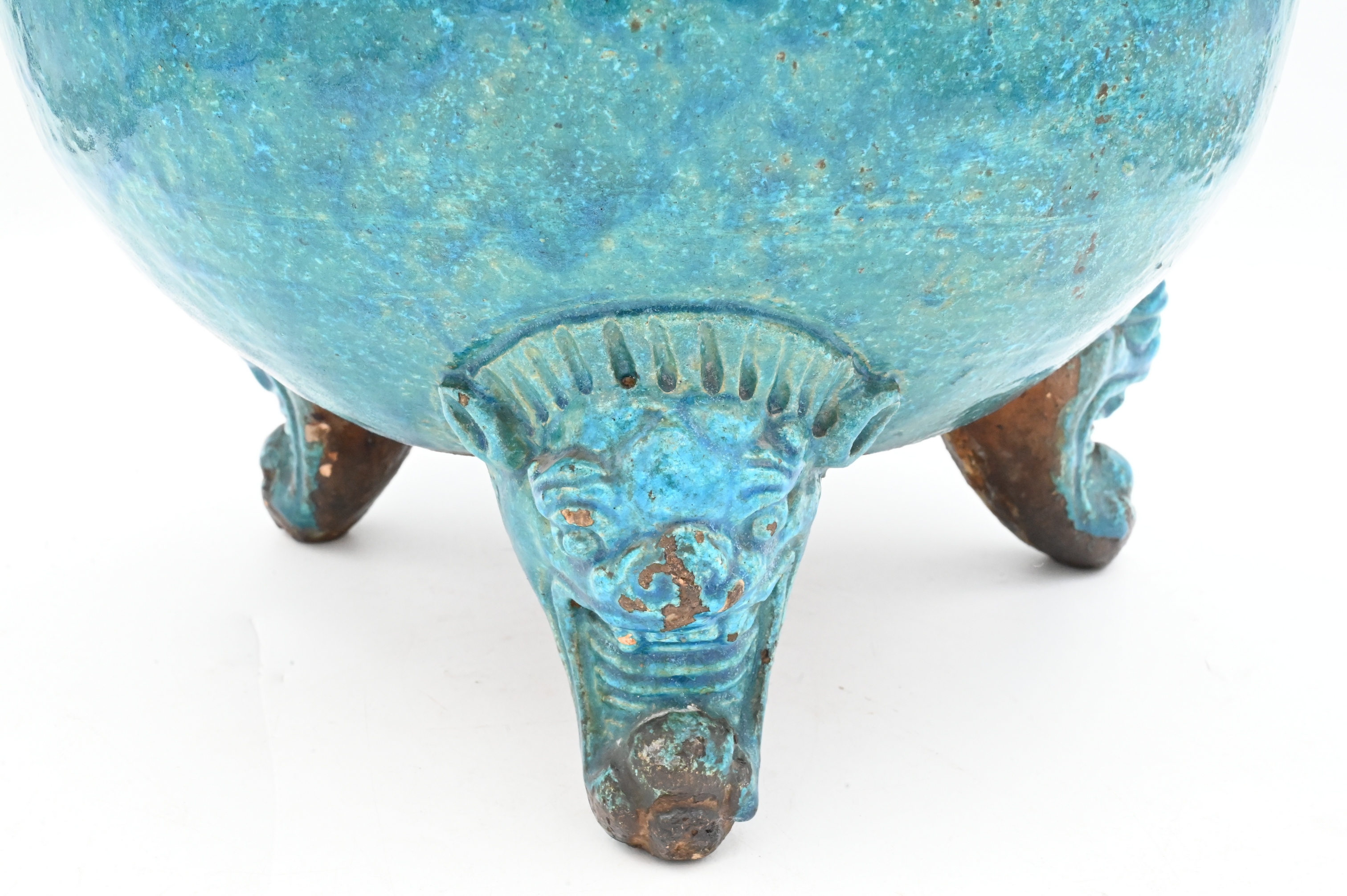 Lot 322: Large Chinese Monochrome Turquoise Footed Censer