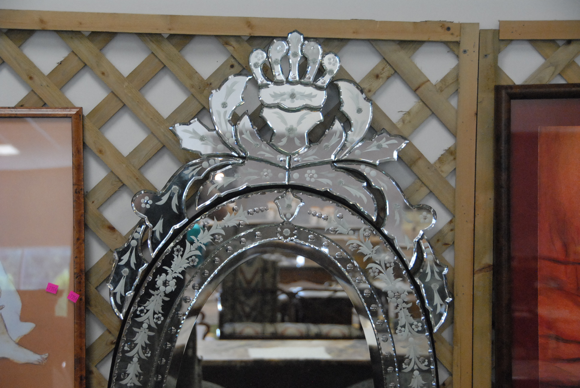 Large Venetian glass oval mirror, 55 x 26.