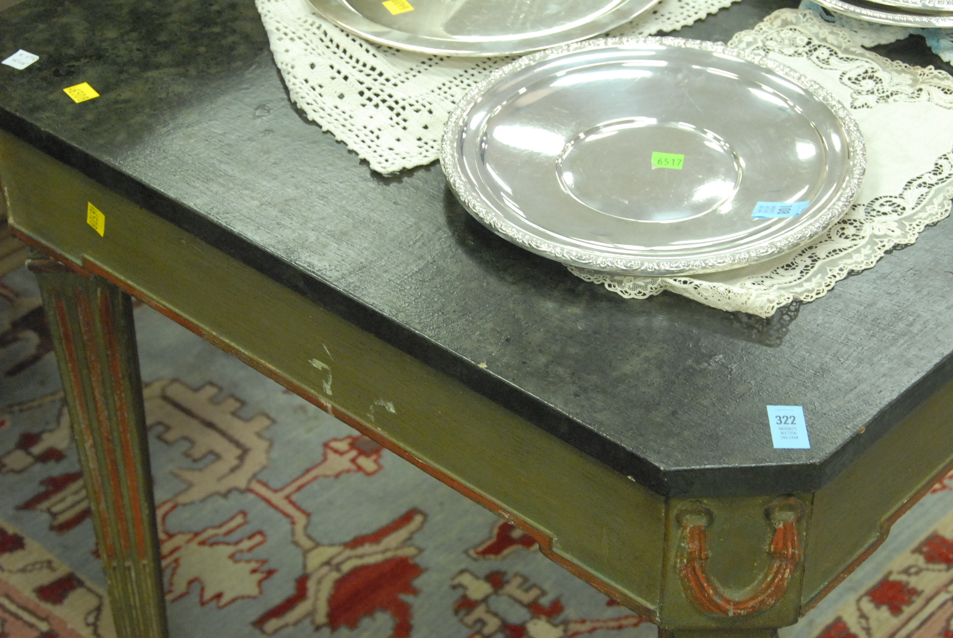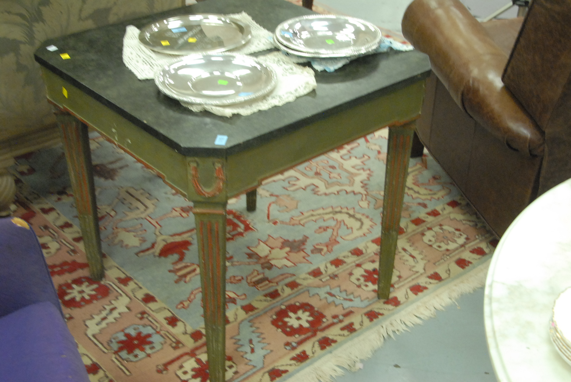 Paint decorated square table, wd. 28in. Provenance: property from a home in Rockville Center, New York which was decorated by Iris Apfel.