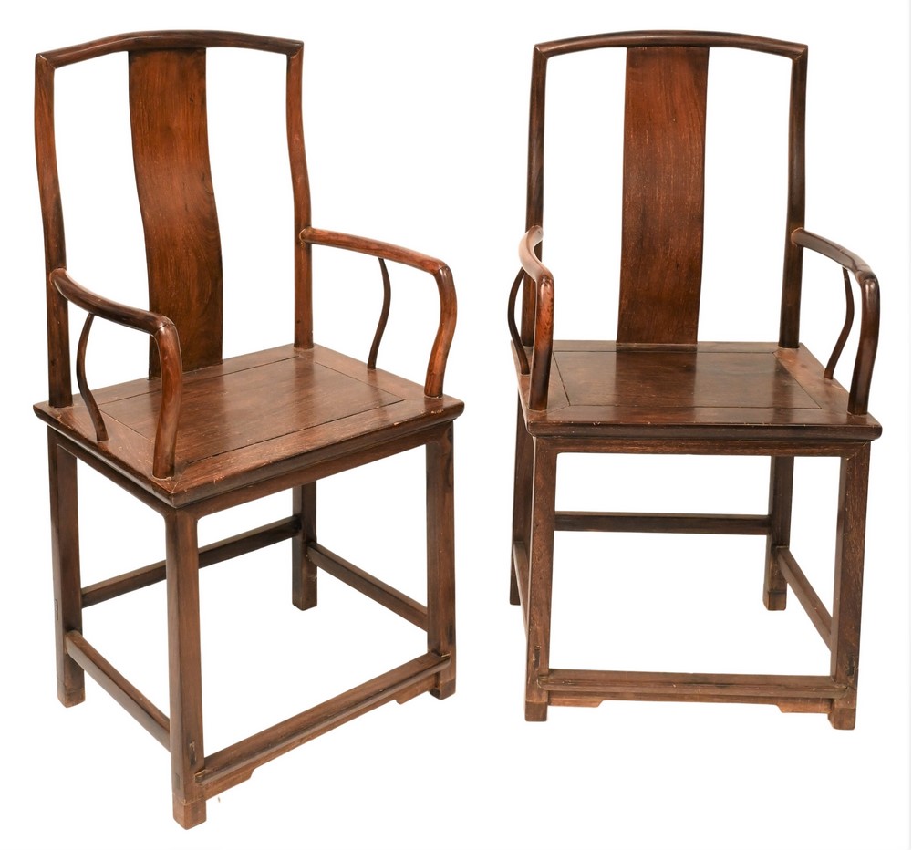 Lot 322: Pair of Chinese Armchairs possibly Zitan wood