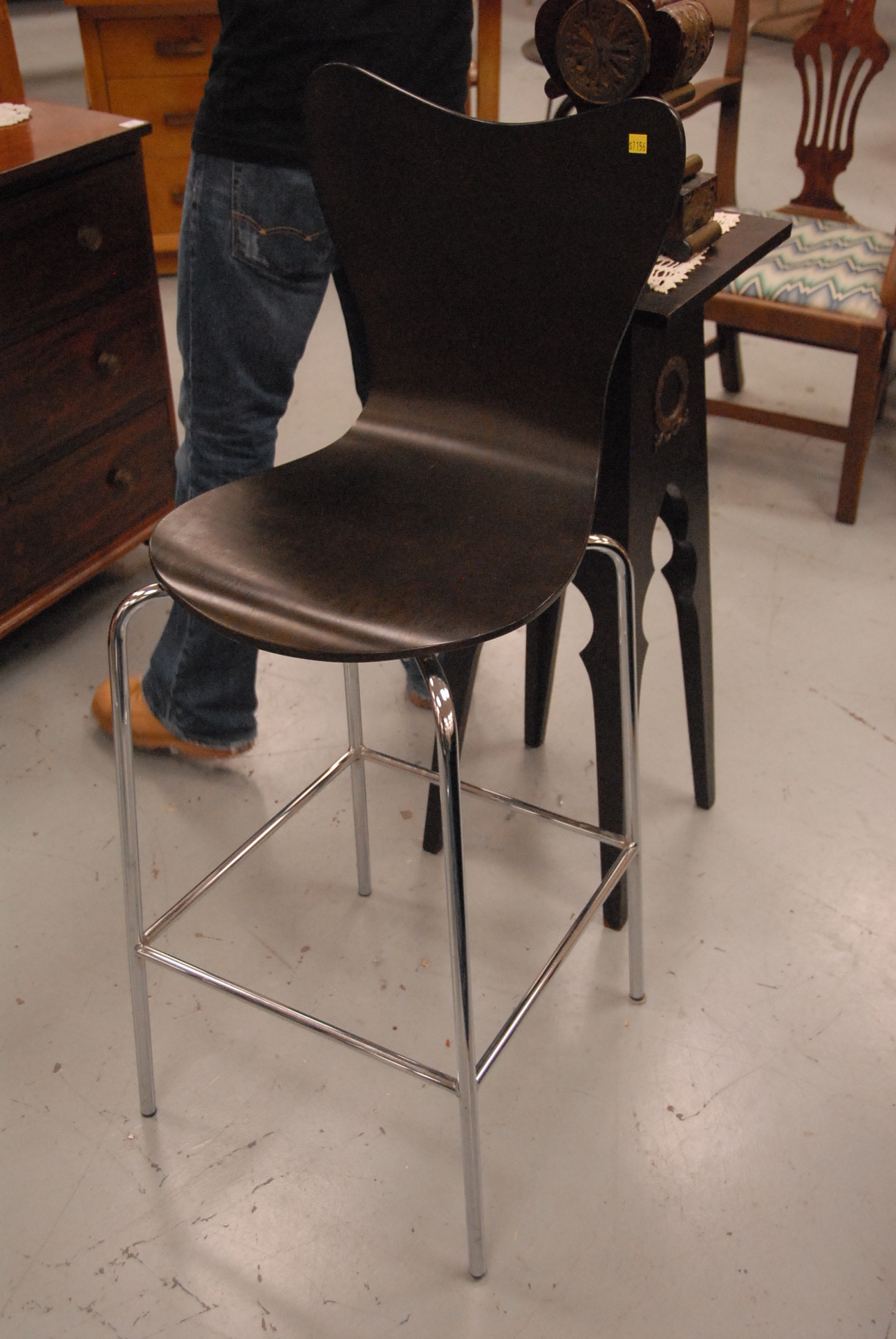 Set of three chrome and bentwood bar stools, seat ht. 30in.