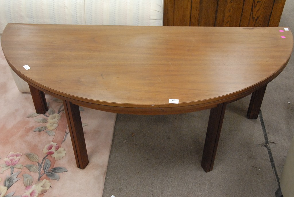 Lot 322: Swedish table by Tin Stromb model SESAM Made in Sweden half round opens to circle, ht. 23, dia. 59 open.