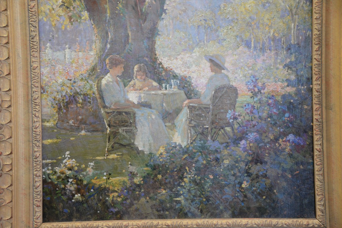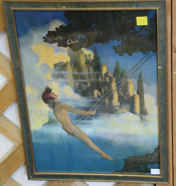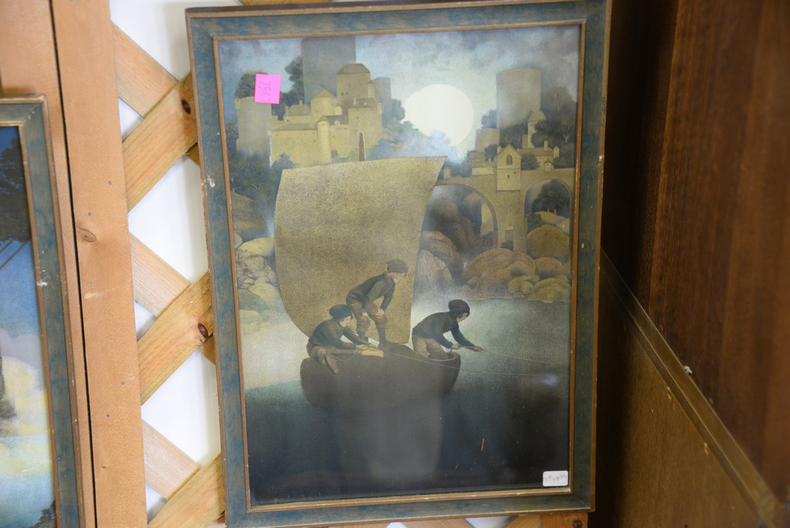 Lot 322: Three framed pieces to include Contemporary print on canvas Spring Lunch 28 x 33, and two Maxwell Parrish prints 11 1/2 x 9 3/4