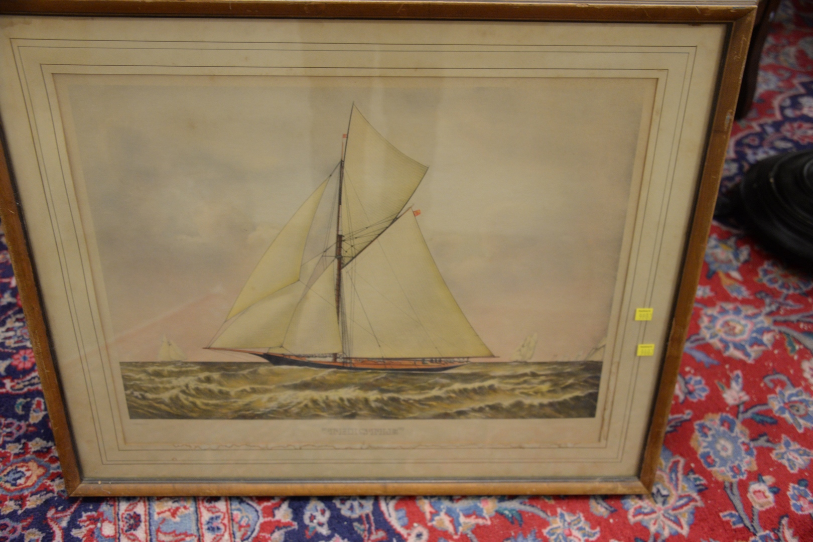 Lot 322: Three Piece Lot, to include a Jacques Barraband framed engraving of a parrot, Thistle, a maritime lithograph by Currier and Ives …
