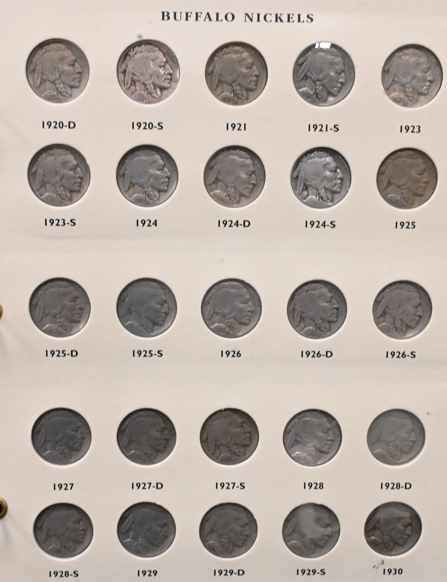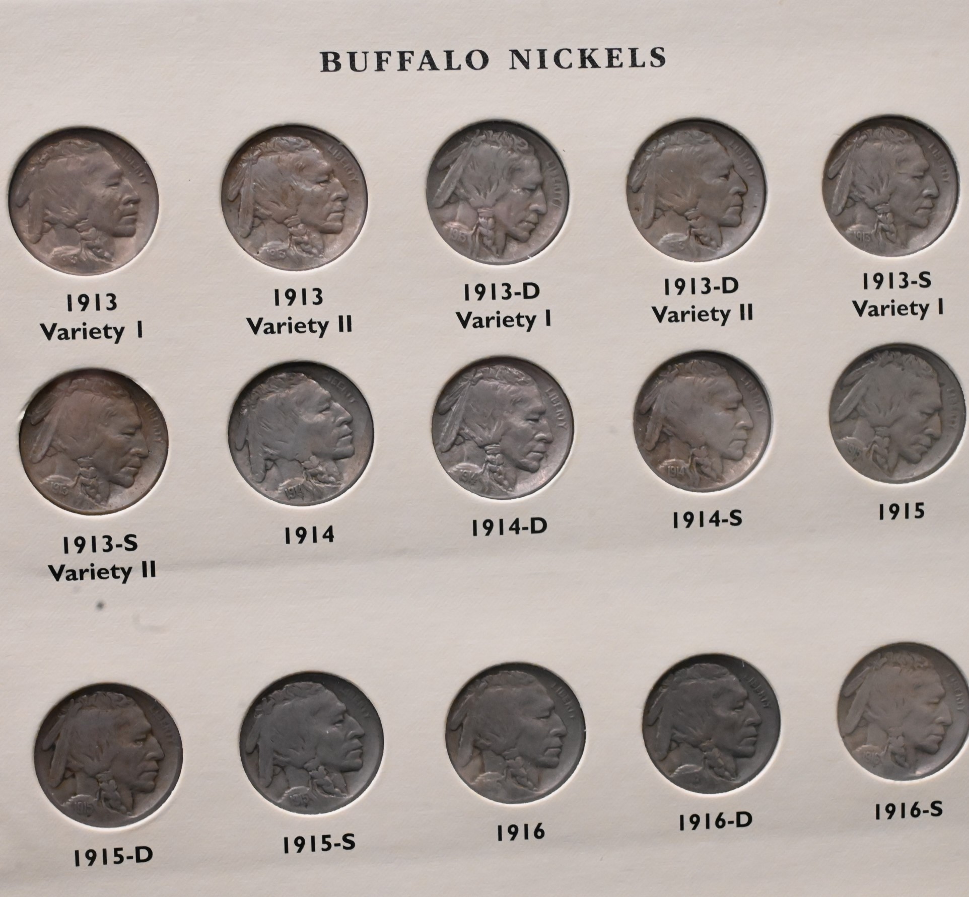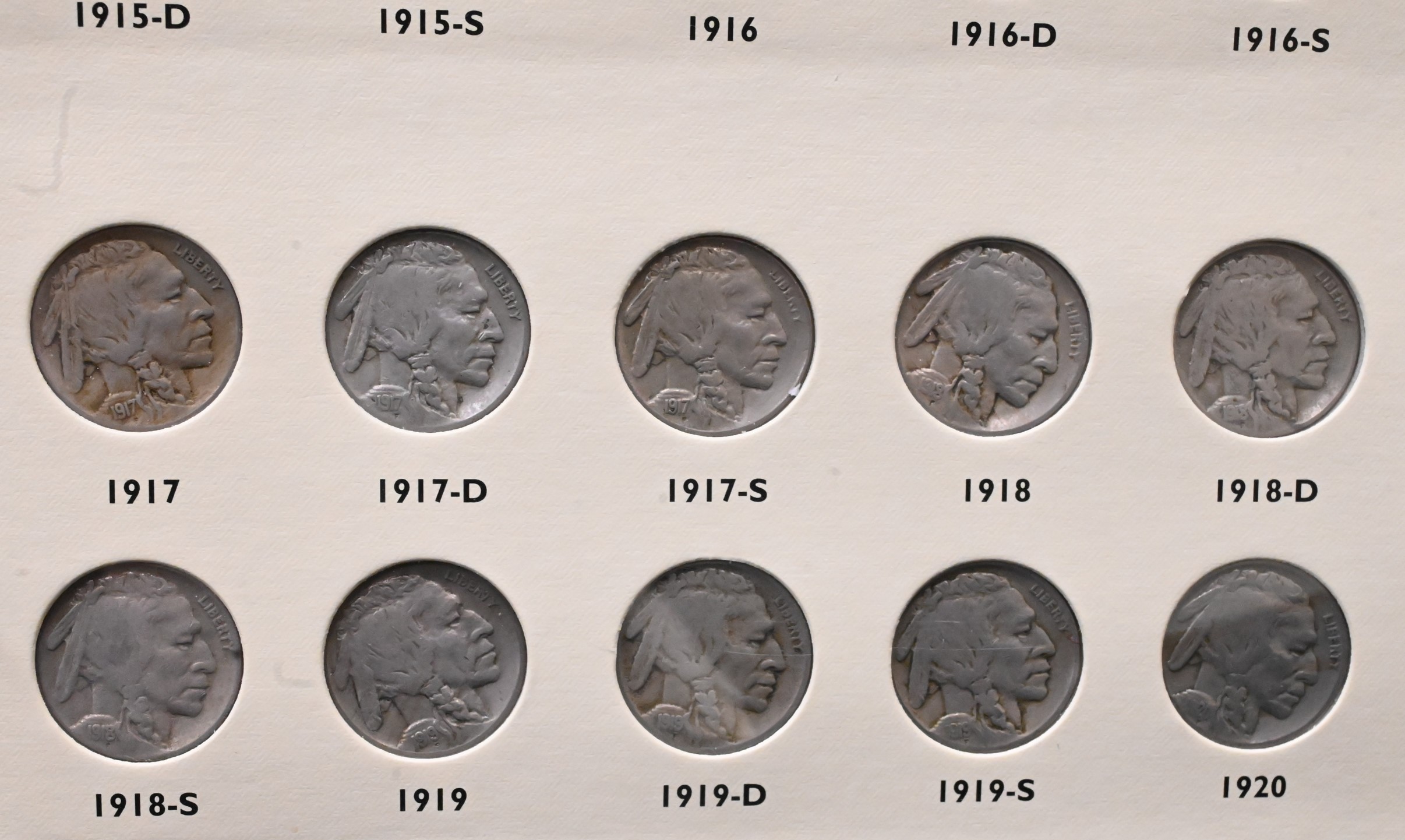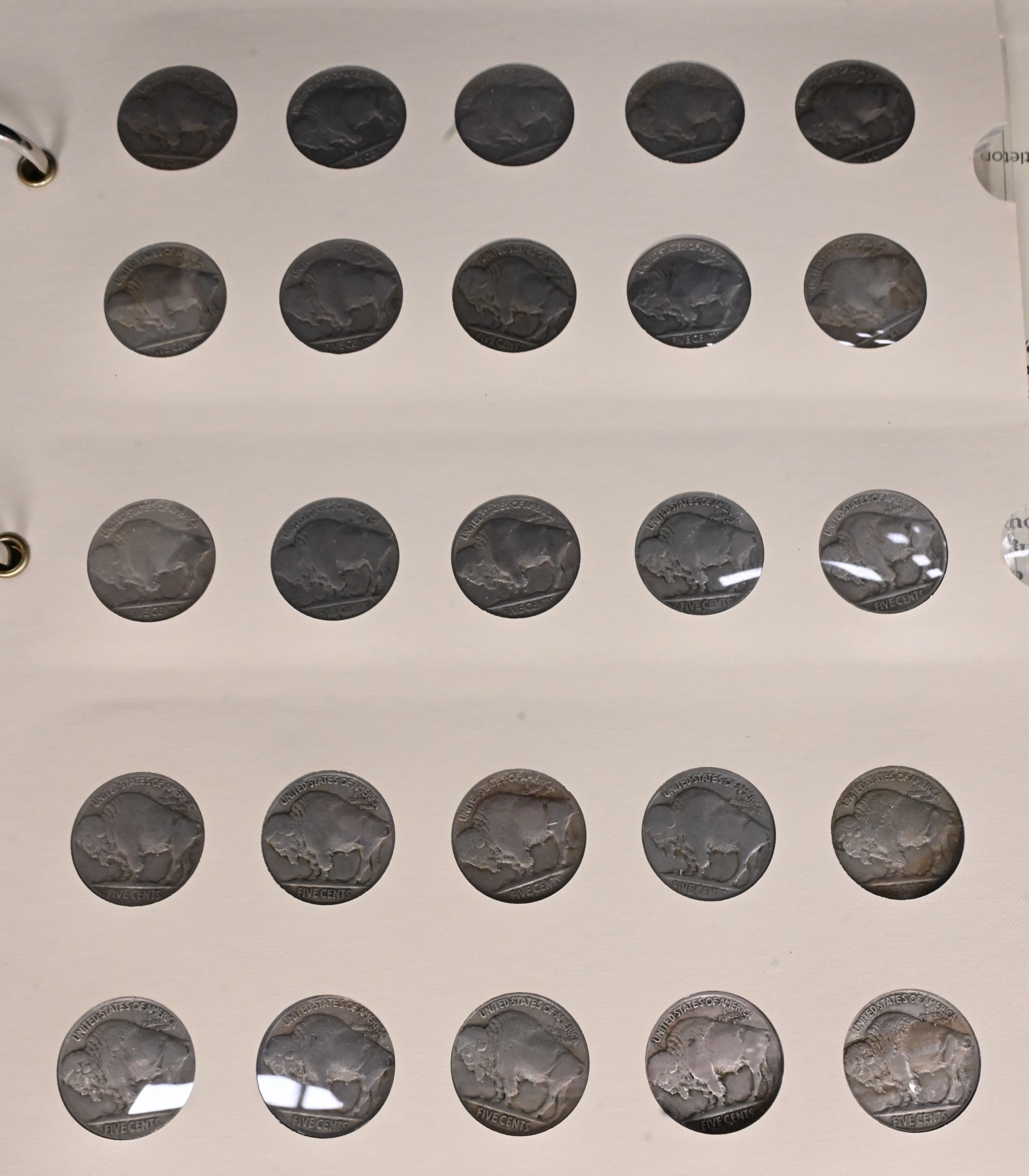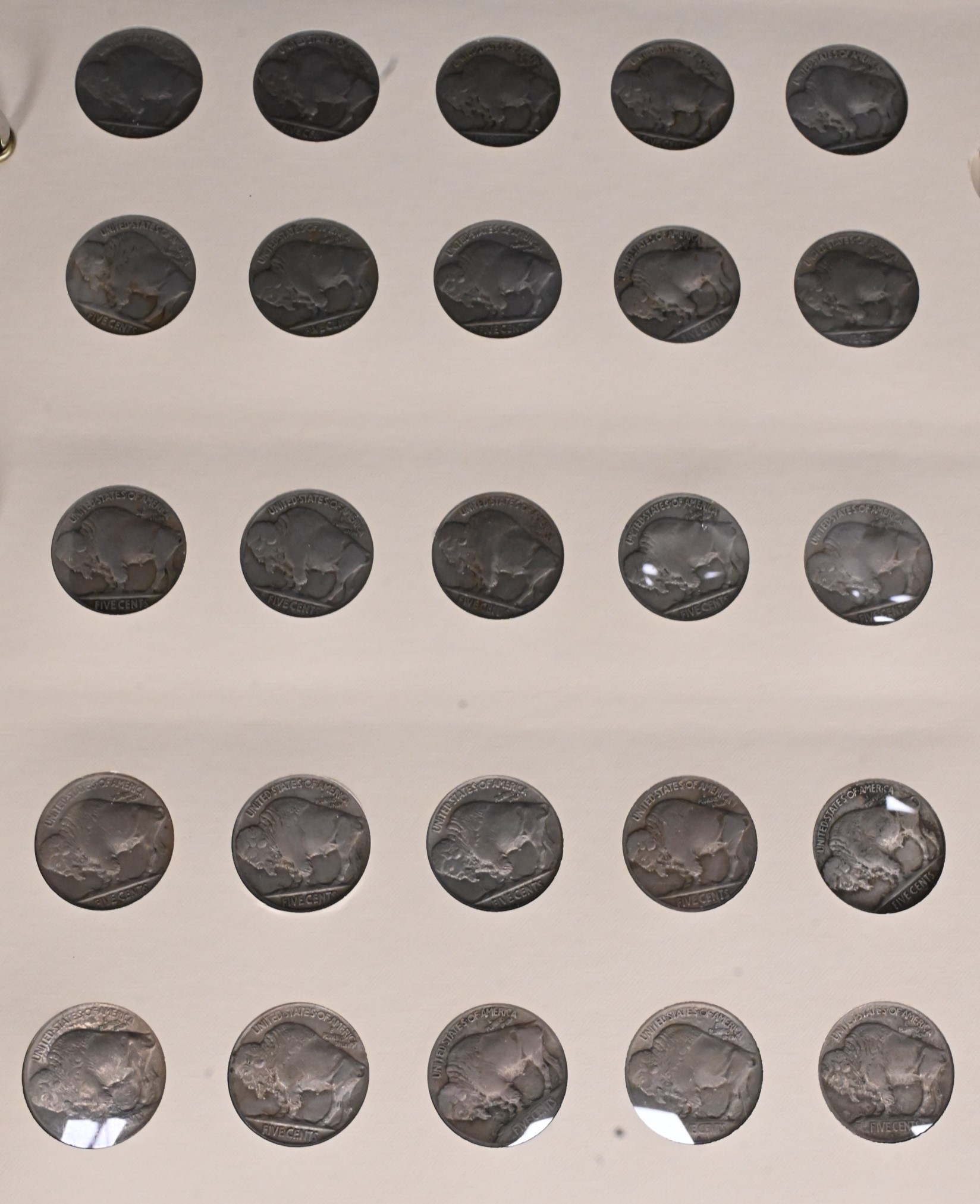 A complete set of Buffalo Nickels from 1913 to 1938, No overdates, circulated