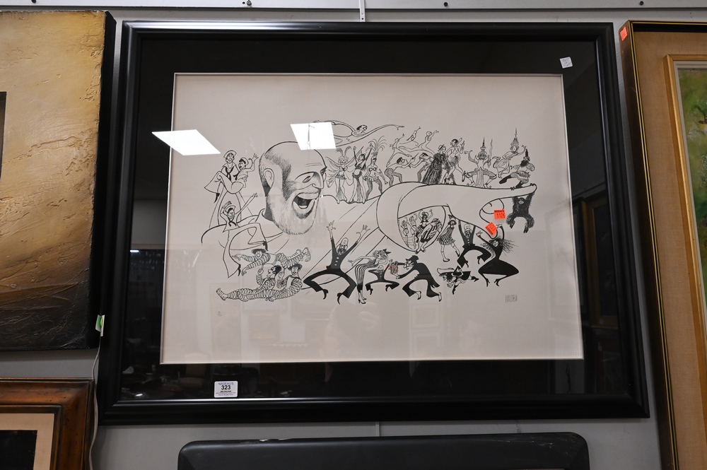 Al Hirschfeld, group of figures, lithograph, pencil signed and numbered 97/100, 20″ x 28″.
