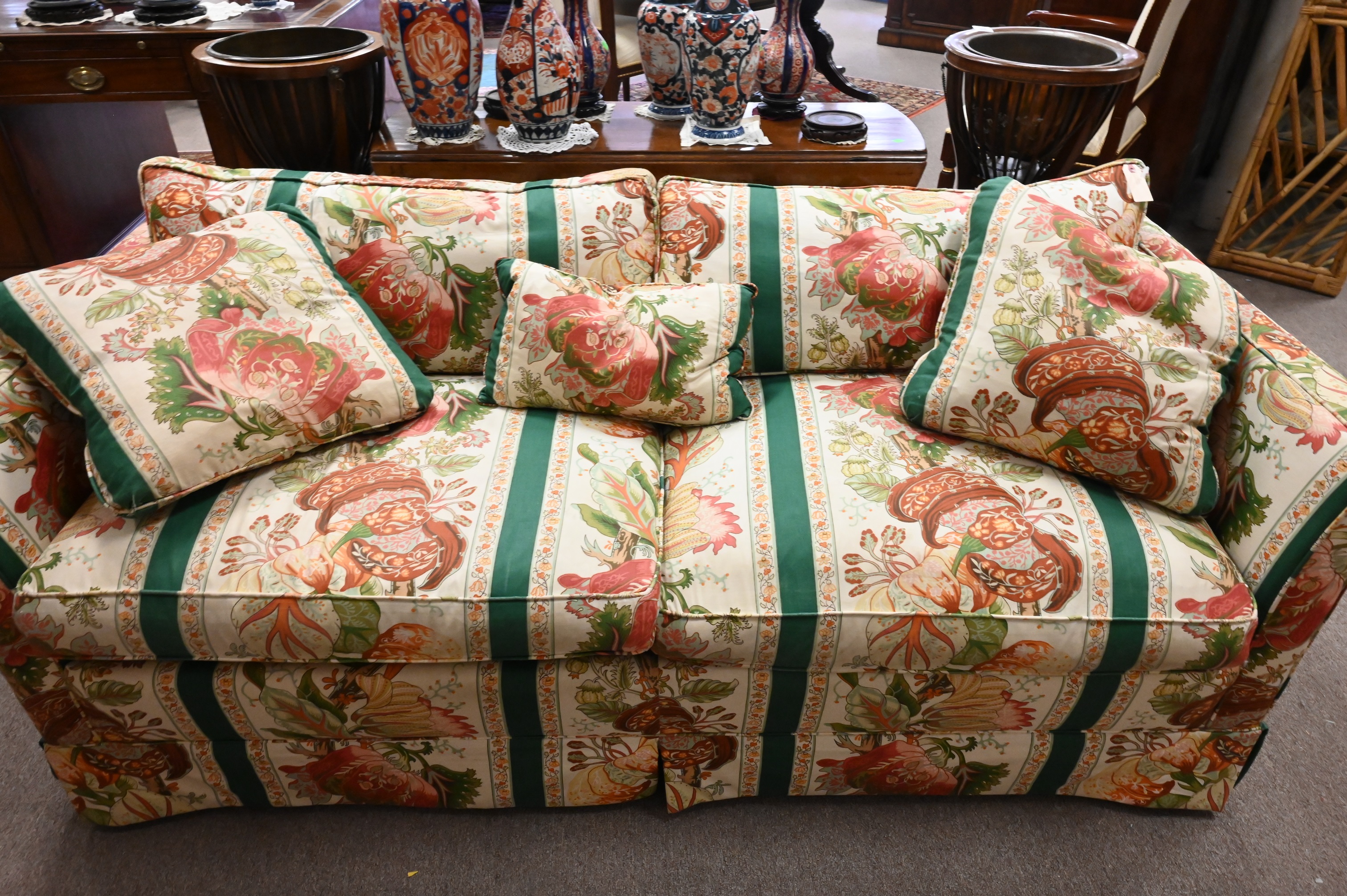 Chintz Custom Upholstery Sleeper Sofa, height 25 inches, length 70 inches