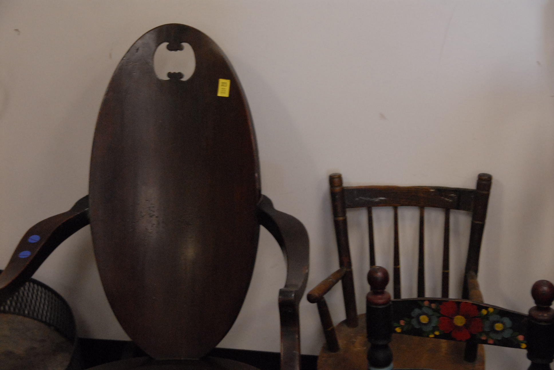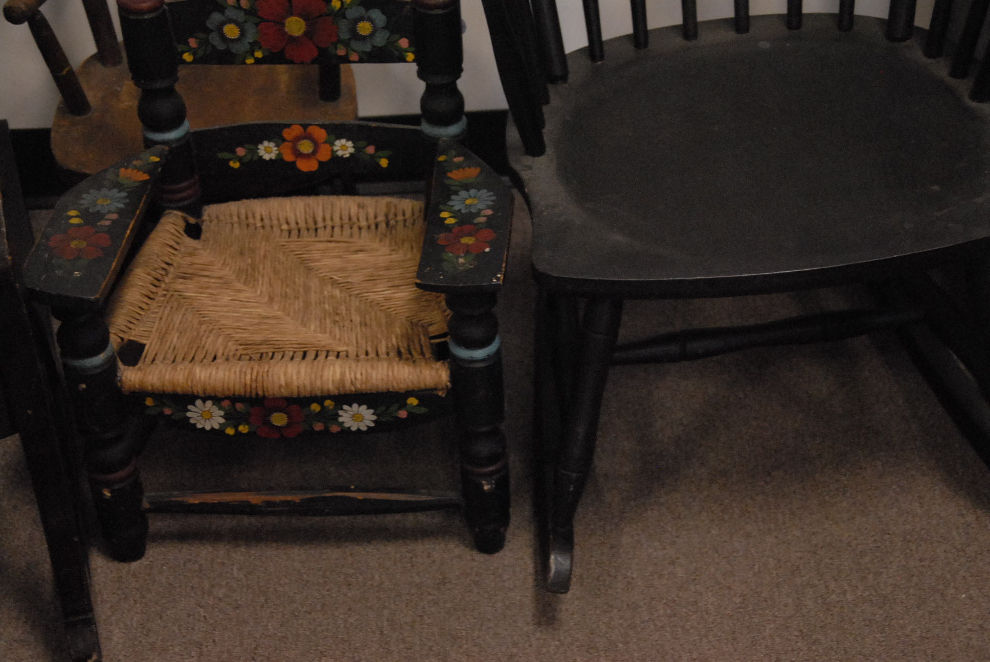 Group of 4 chairs: 2 child’s chairs, a comb back rocker and a mahogany rocker.