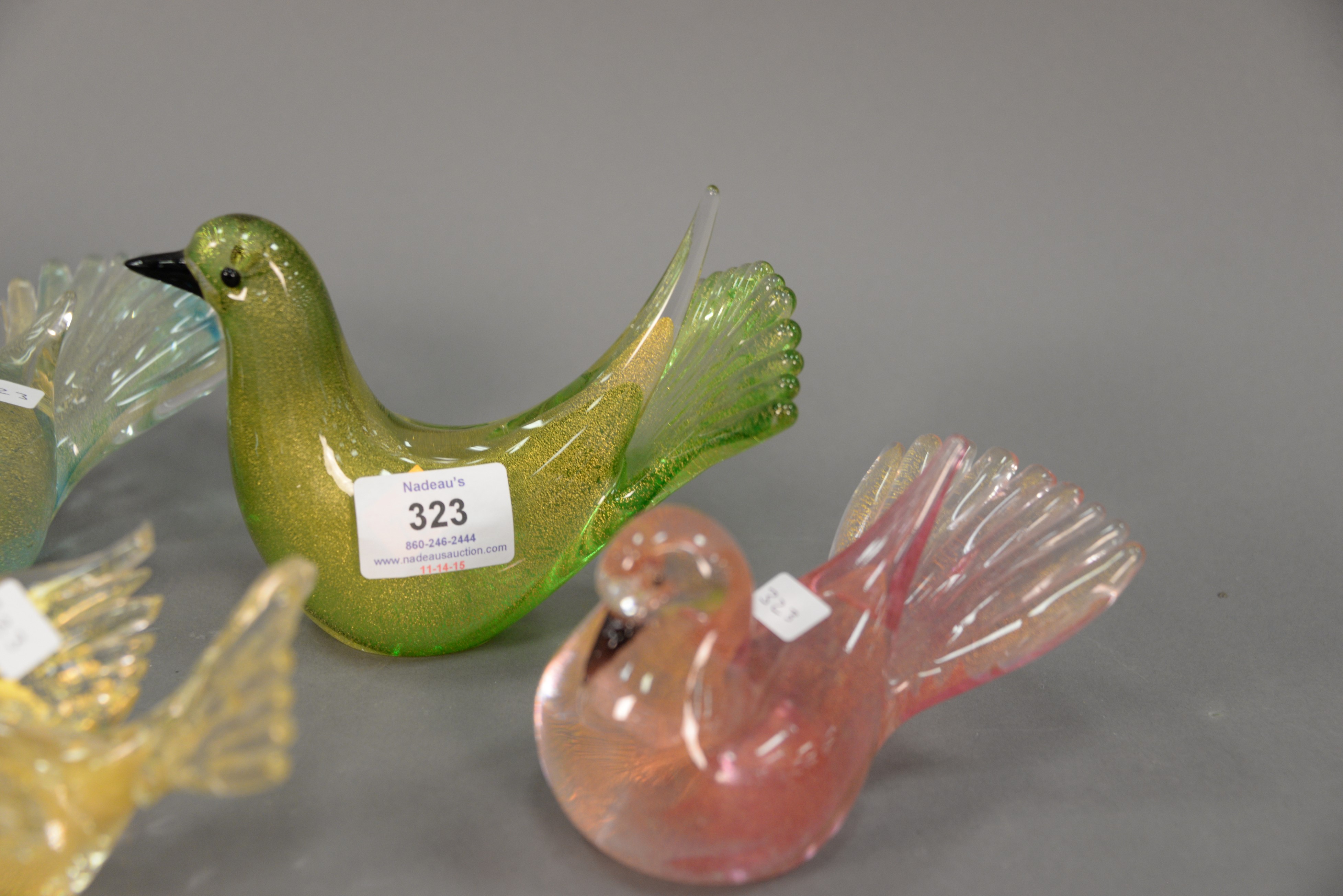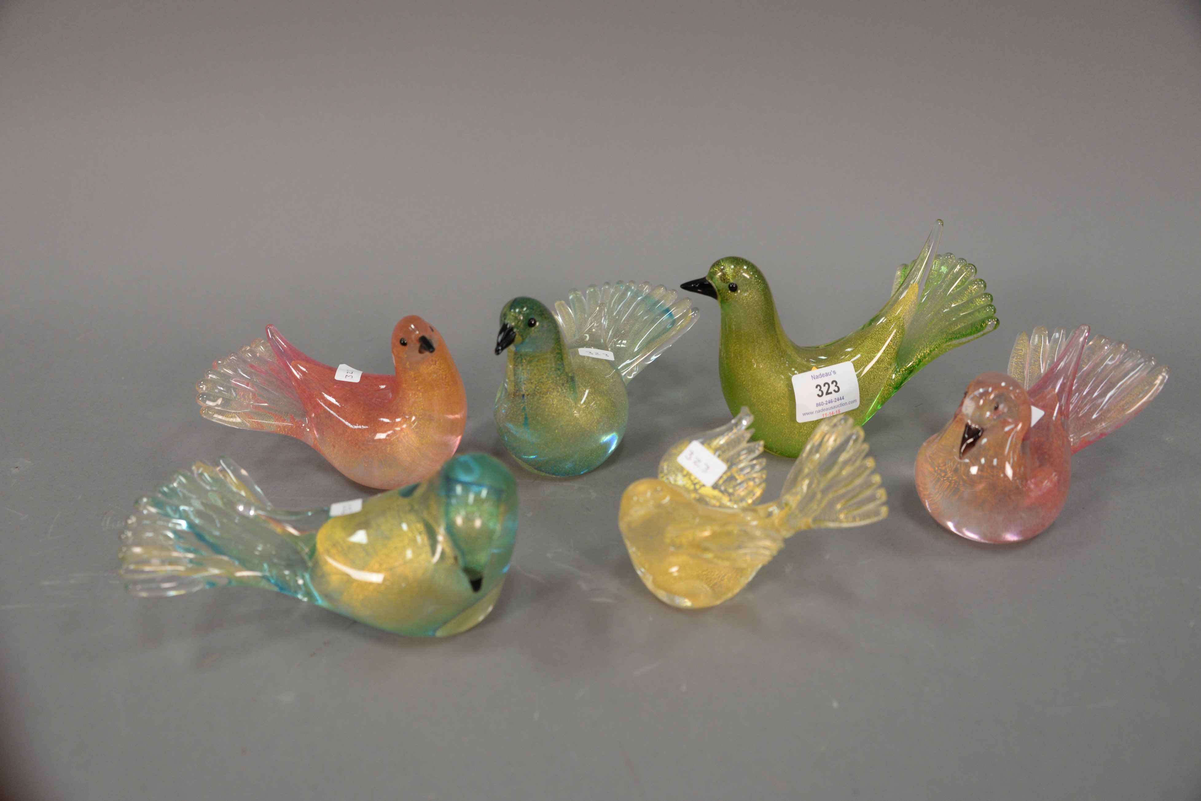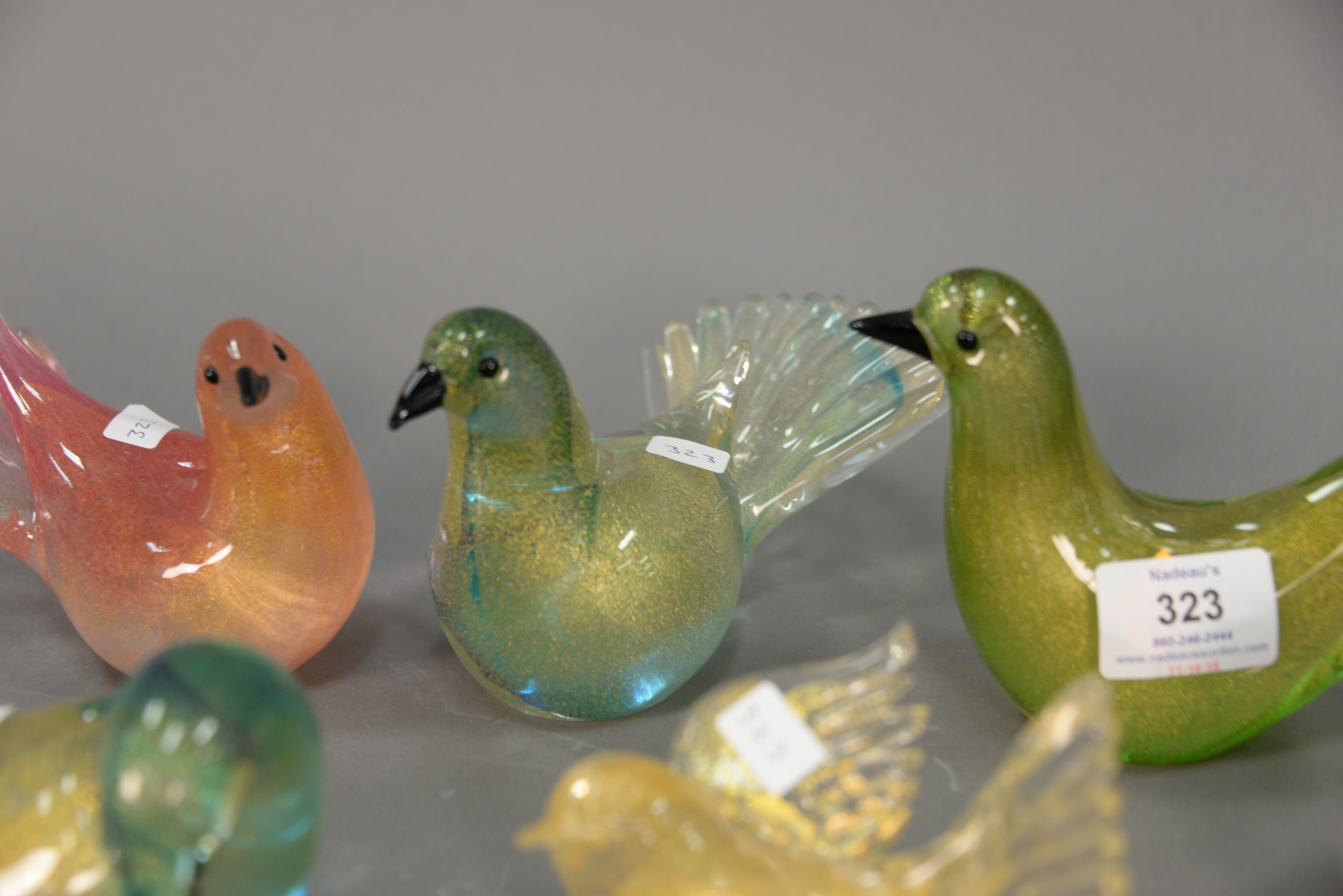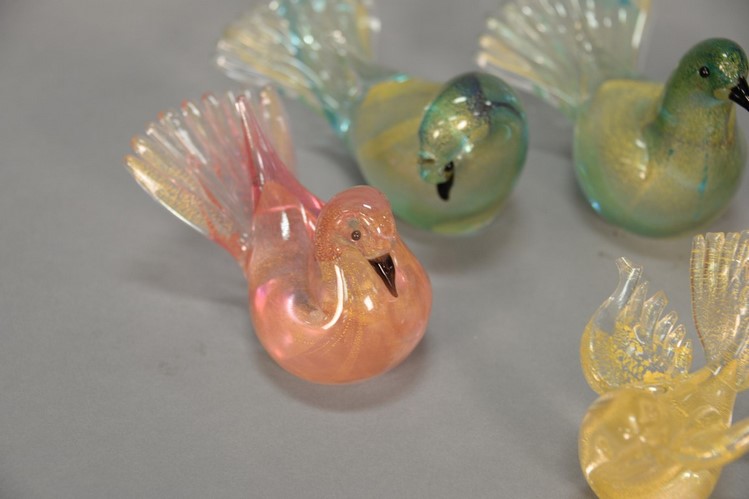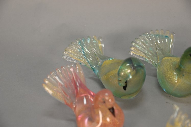 Group of six Venetian Murano art glass doves. ht. 3 in. to 4 in.