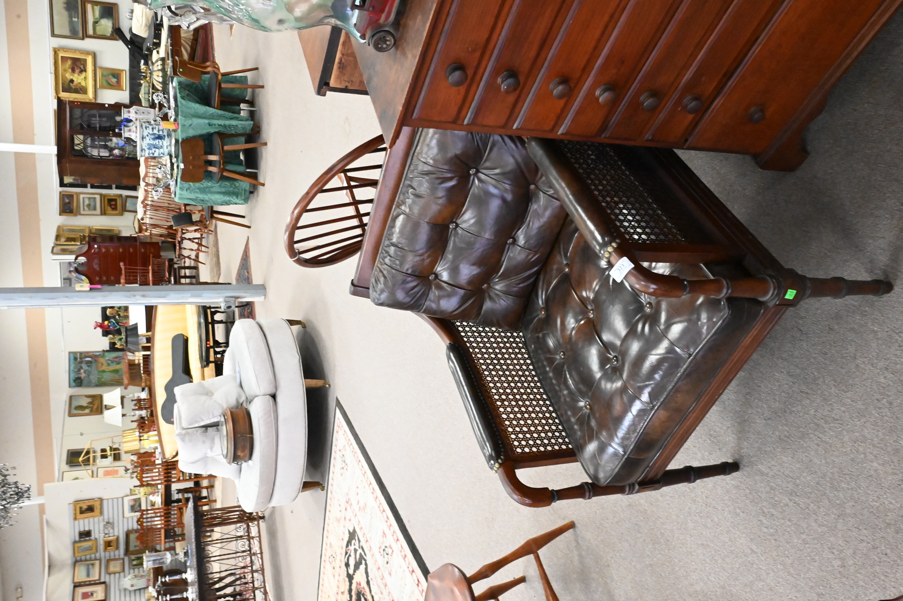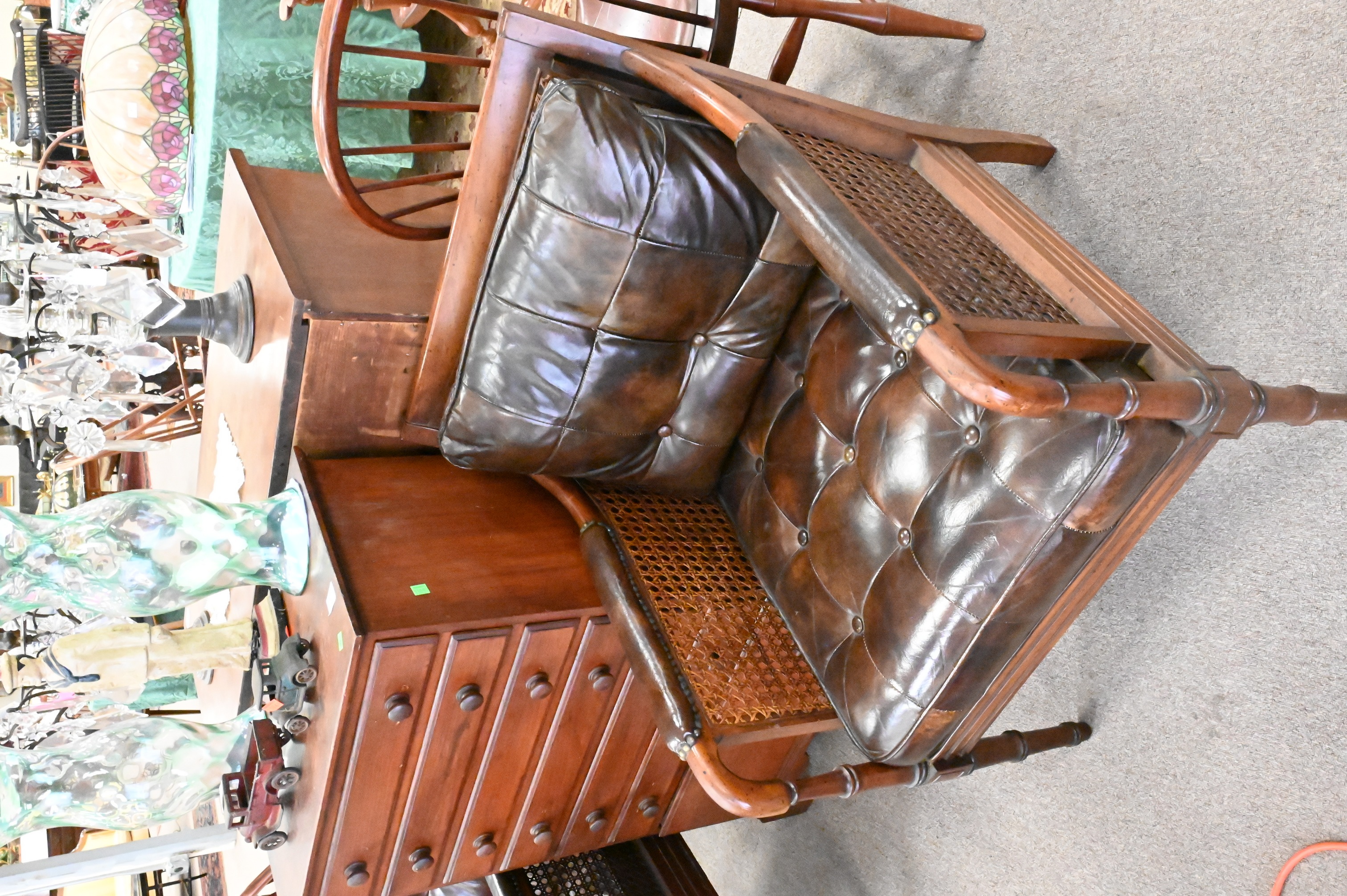 Lot 323: Pair of Caned Armchairs with Leather Cushions