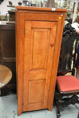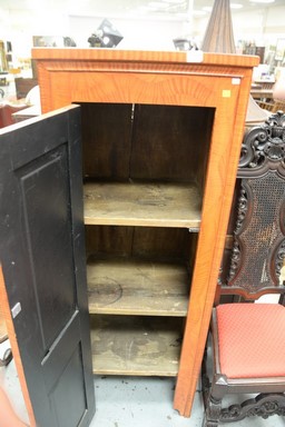 Primitive cupboard, narrow with one door with raised panels and surround molding, now repainted with grain paint, late 18th to early 19th century. ht. 60 in. wd. 21 in. dp. 16 in.