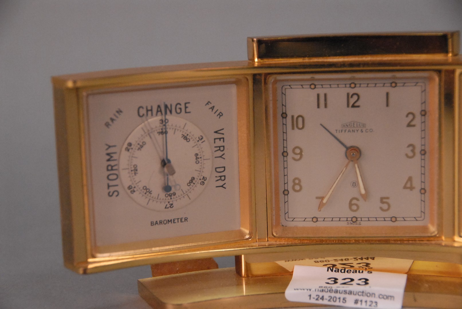 Tiffany bronze desk clock barometer and temp, marked Angelus Tiffany & Co. ht. 3, wd. 7