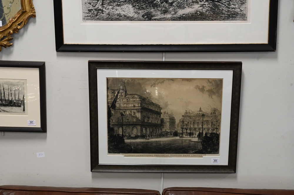 Two Louis Orr (American, 1879 – 1961) Etchings, to include “Belleau Woods”, 21 1/4″ x 29 3/4″, pencil signed lower right and titled and dated lower left; along with “Lloyd’s & National Provincial Foreign Bank Limited”, 15 1/4″ x 21″, pencil signed lower right. Provenance: From the Robert Circiello Collection, West Hartford, Connecticut.
