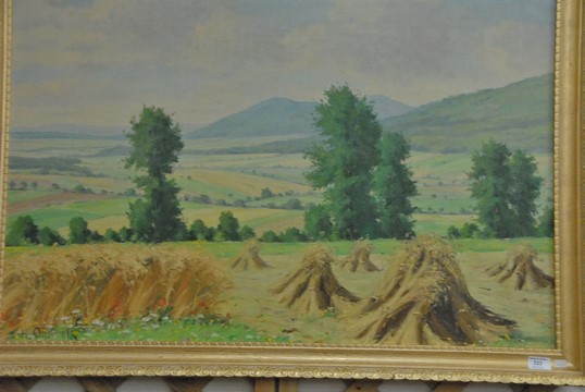 Lot 323: Two piece H. Ohlwein lot to include oil on canvas of landscape with hay stacks signed lower left H. Ohlwein, 27 x 38 and oil on ca…