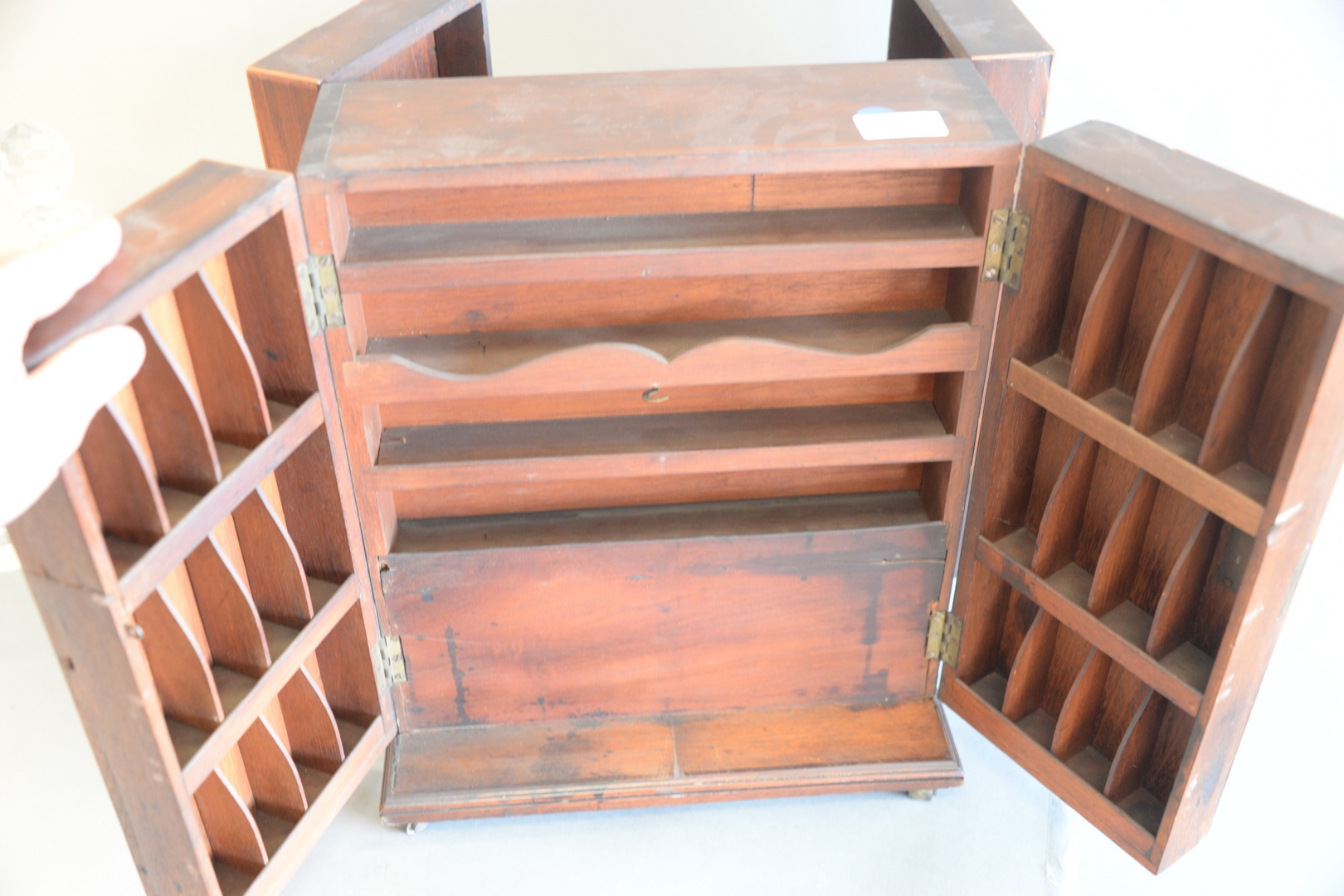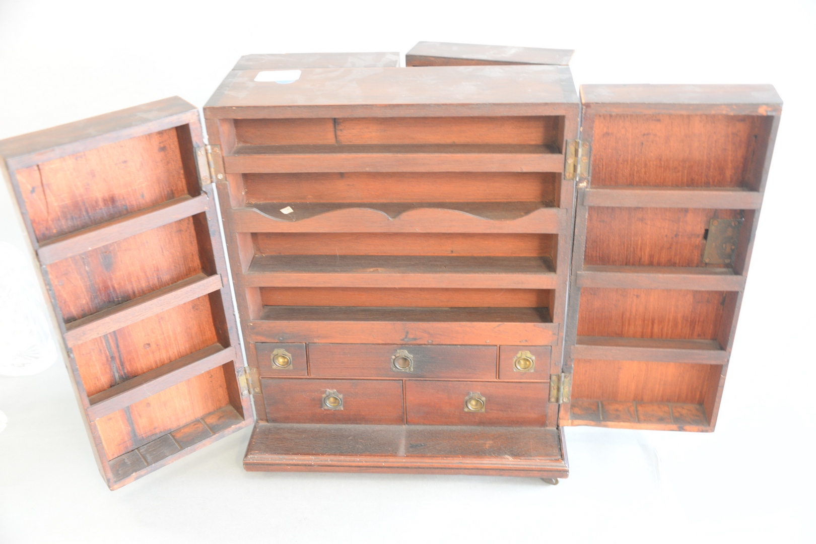 Lot 323: Two piece lot to include Medical Apothecary Box large inlaid mahogany with two-sided chest, having double swing door, opening t…