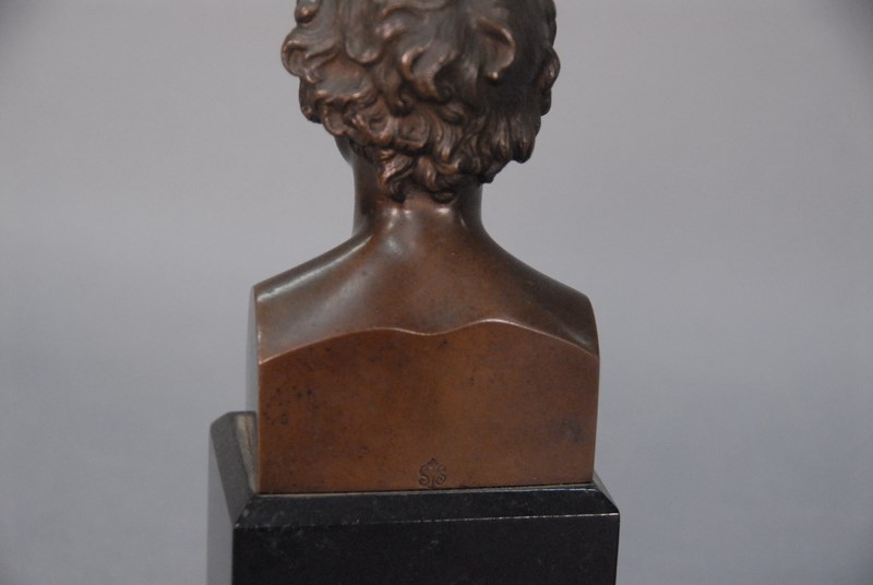 Bronze sculpture of Schiller on marble base, rear impressed with SS. ht. 8 1/2in.