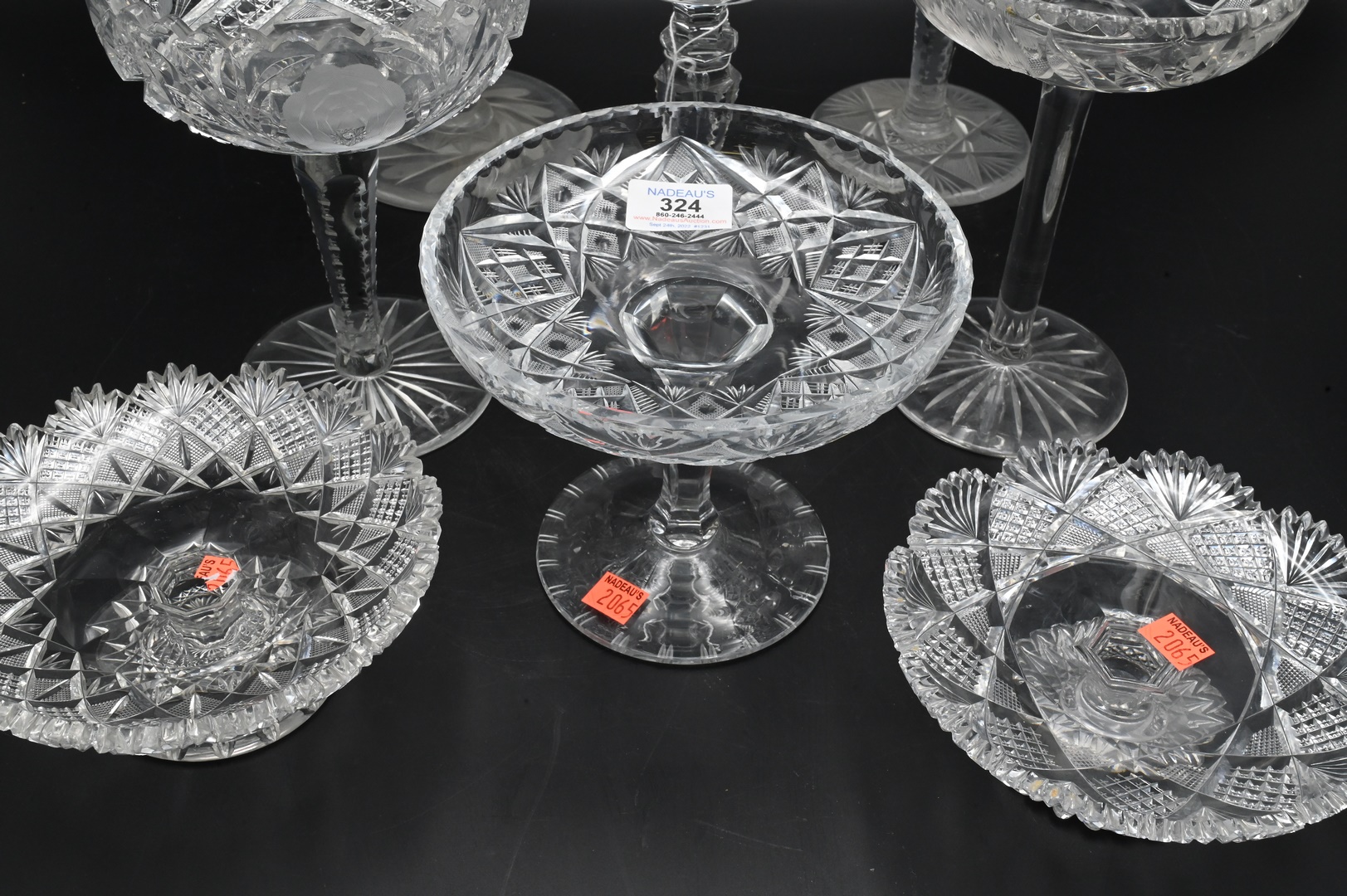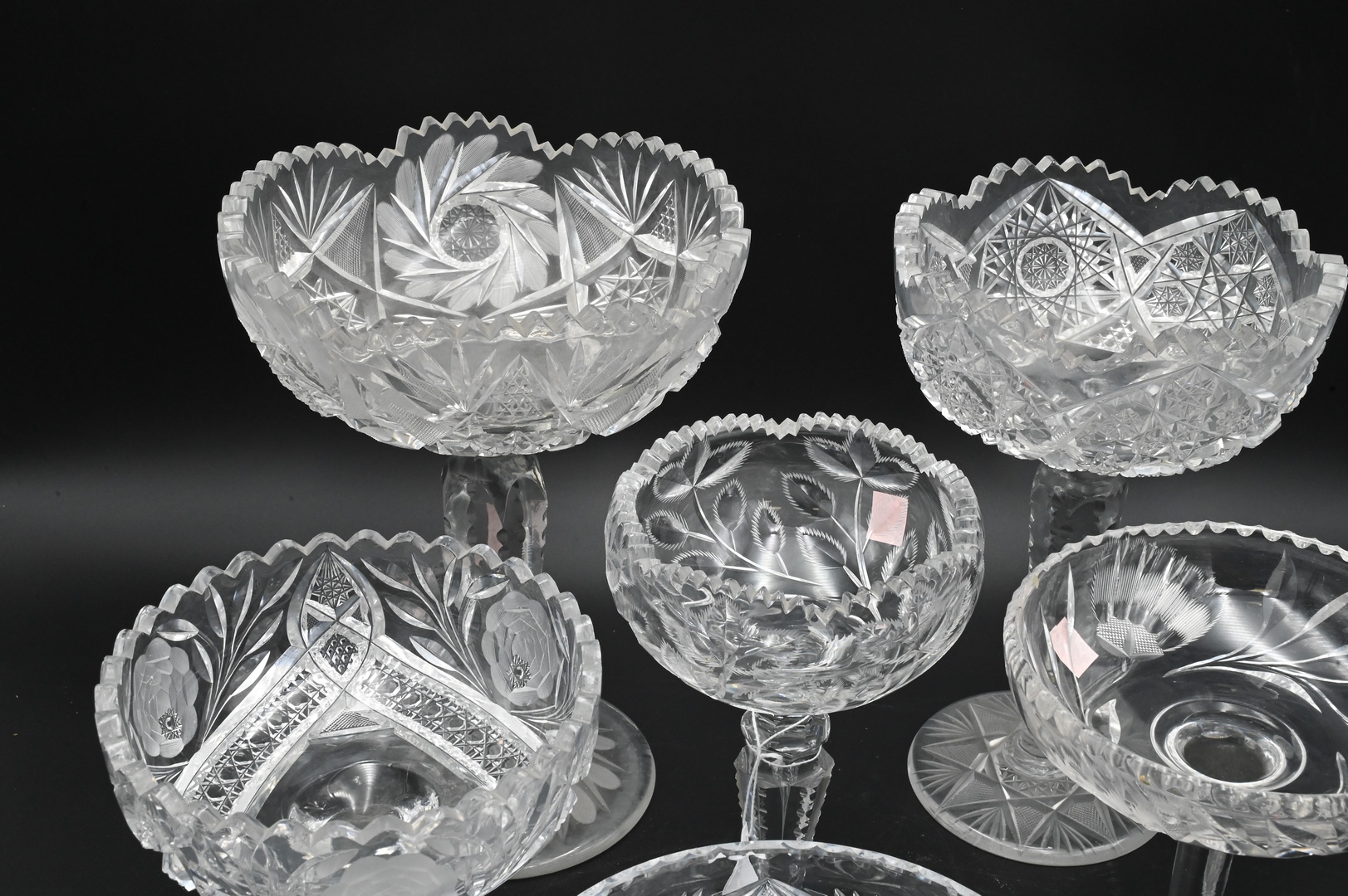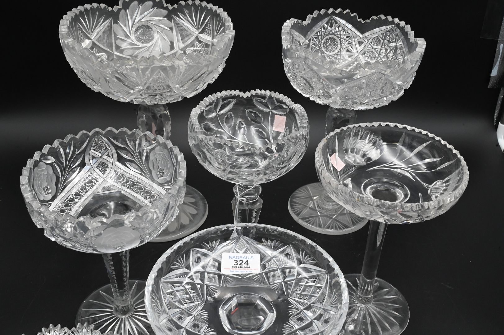 Eight American Brilliant Cut Glass Compotes, tallest 11 inches. Provenance: An estate from Redding, CT.