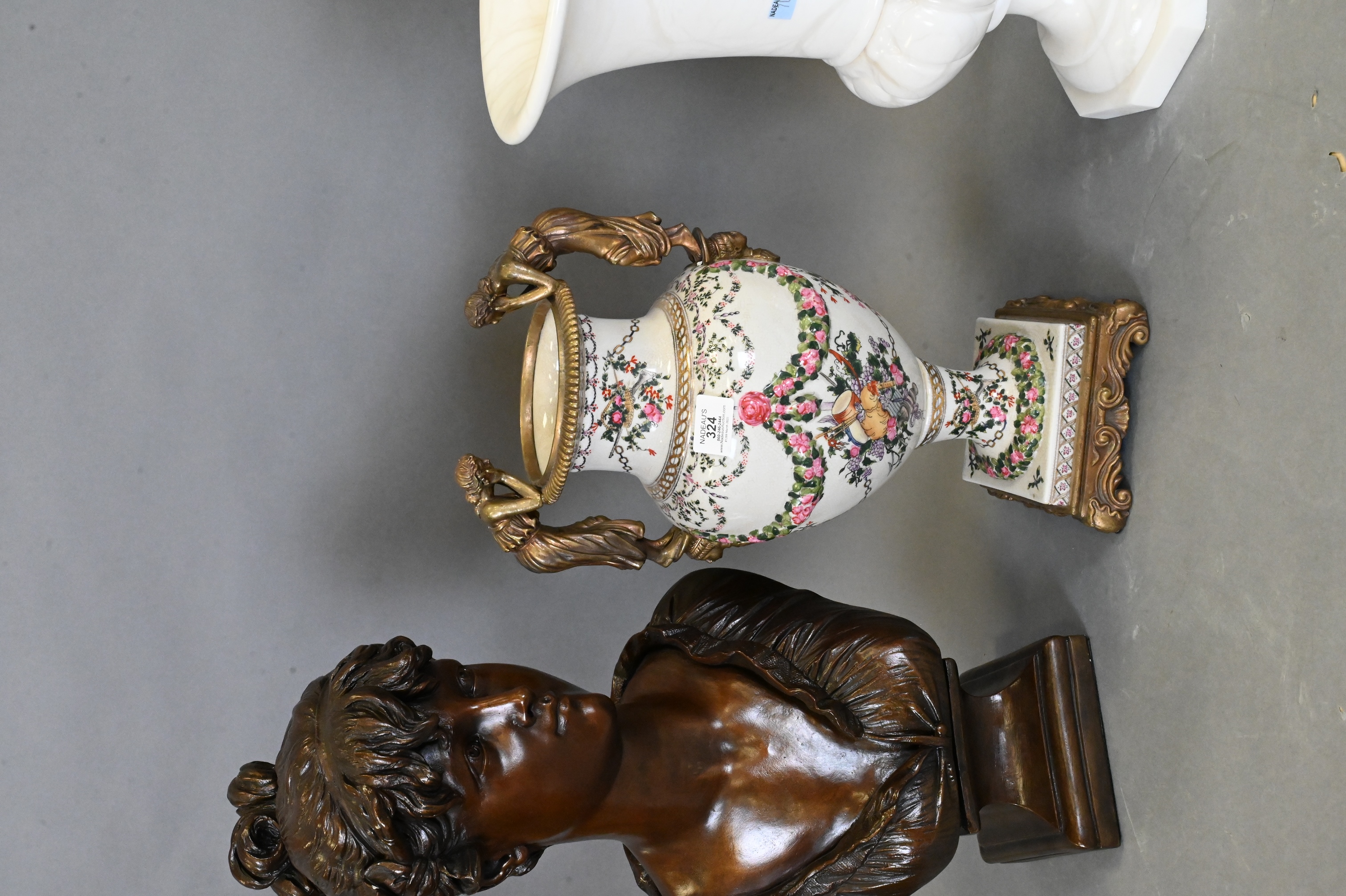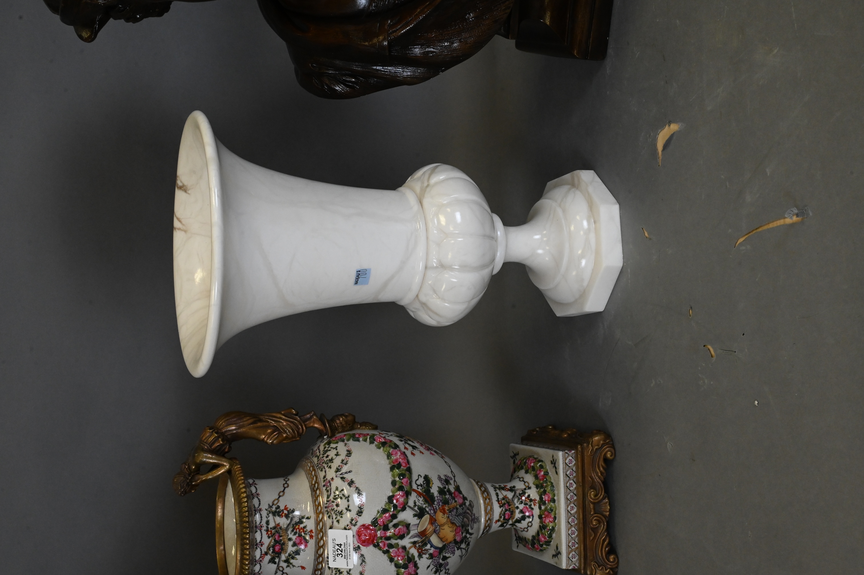 Along with one alabaster urn and one bronze porcelain mounted urn