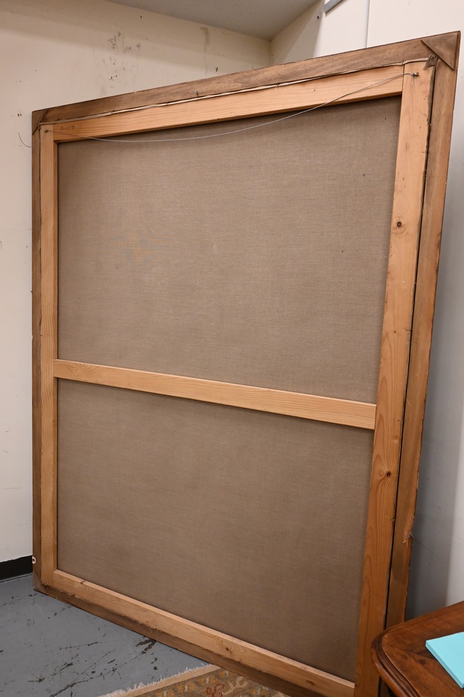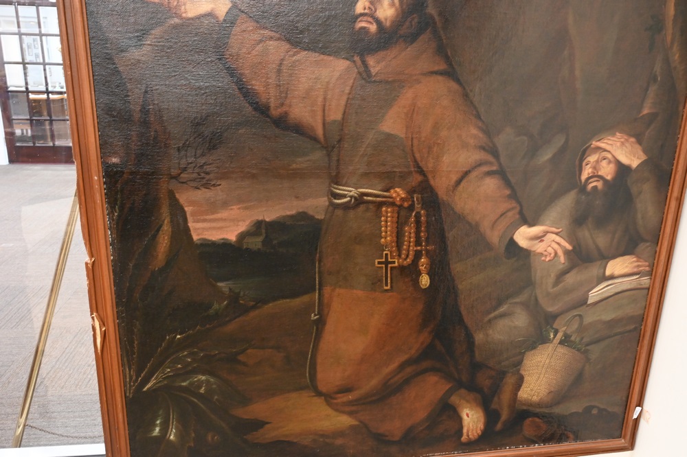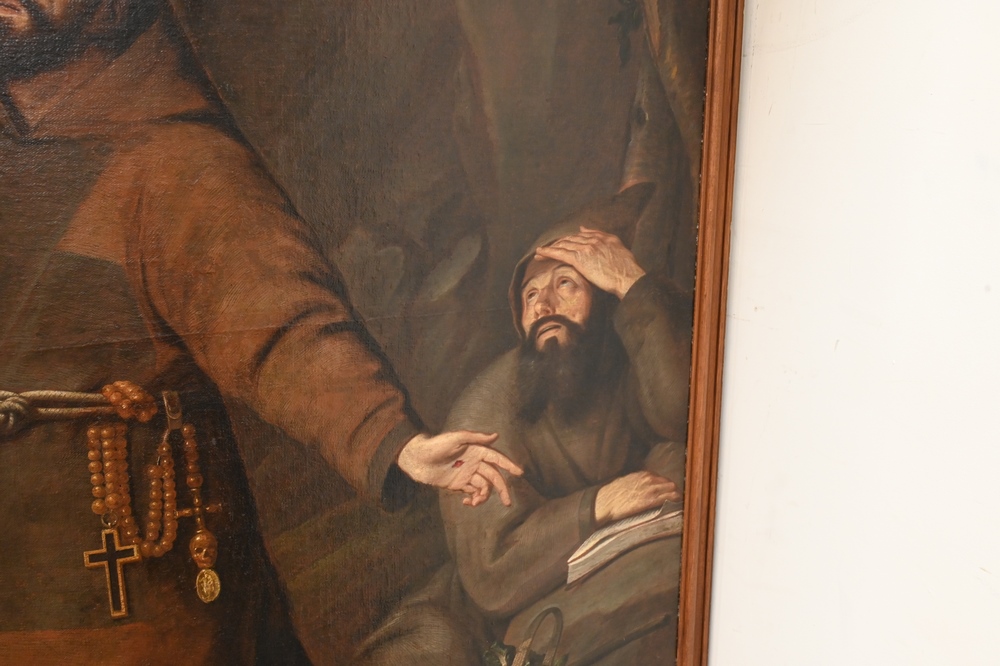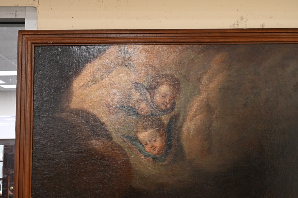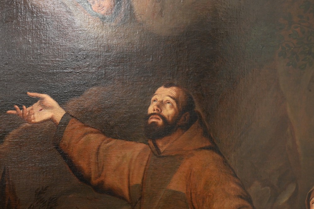 Italian School, 18th century or later, St. Francis of Assisi receiving stigmata, oil on relined canvas, unsigned, 76 1/2″ x 56 3/4″.