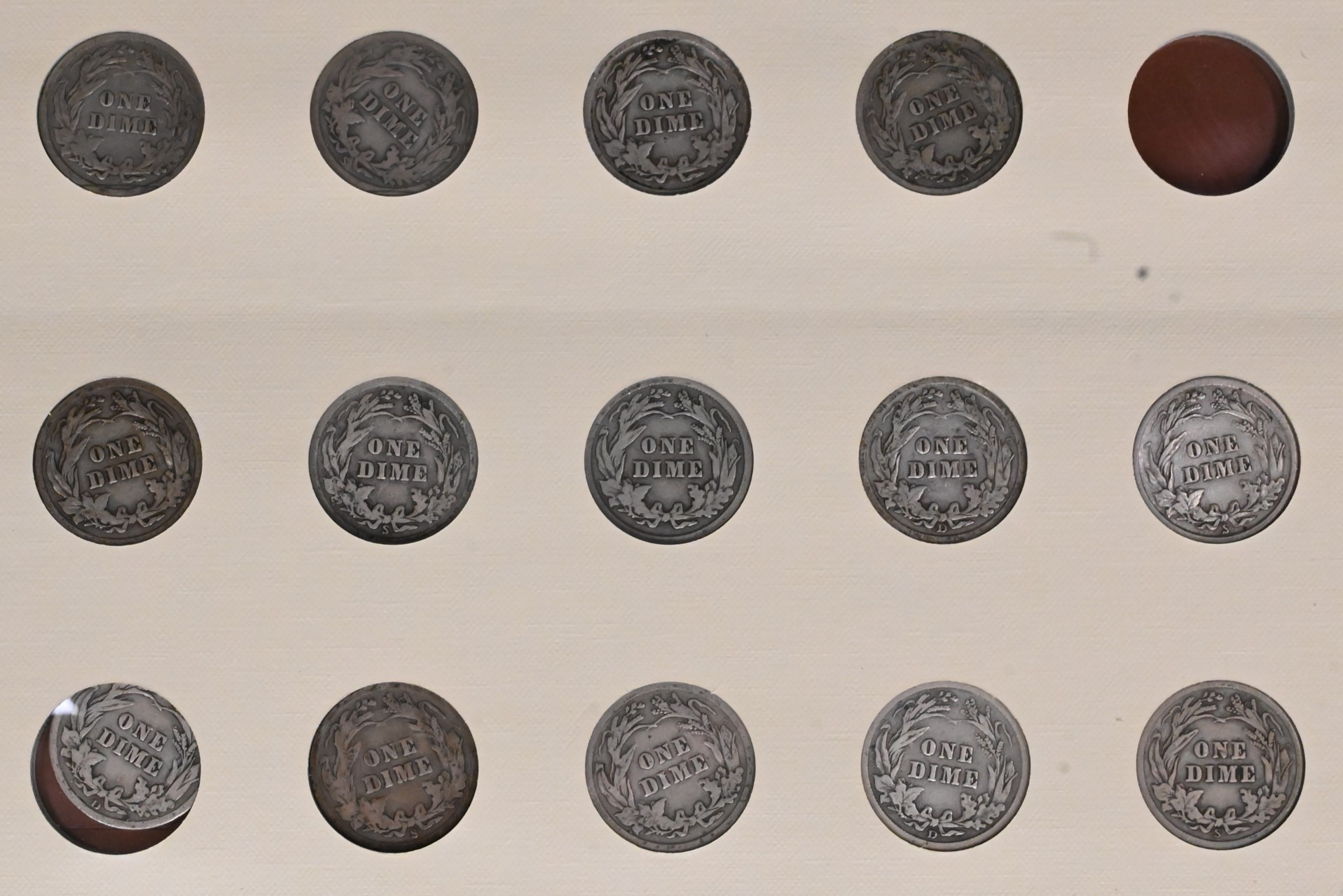 Partial Set of Barber Dimes and Eight circulated Dimes