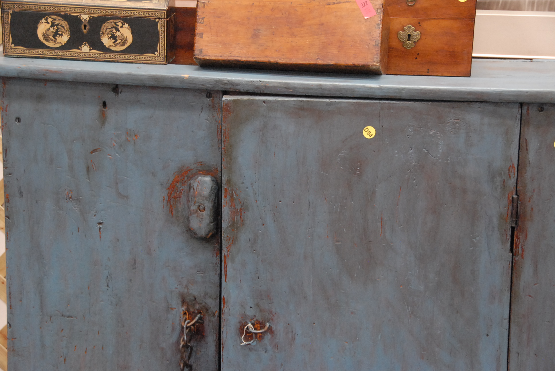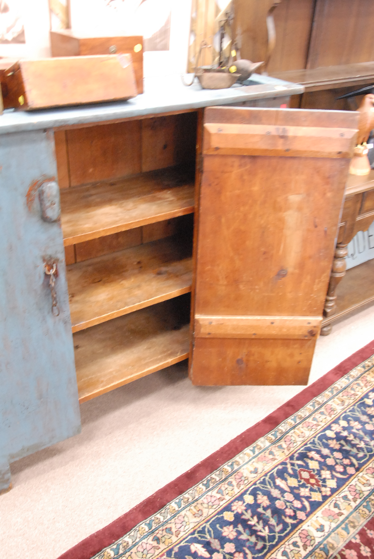 Primitive cupboard in blue paint