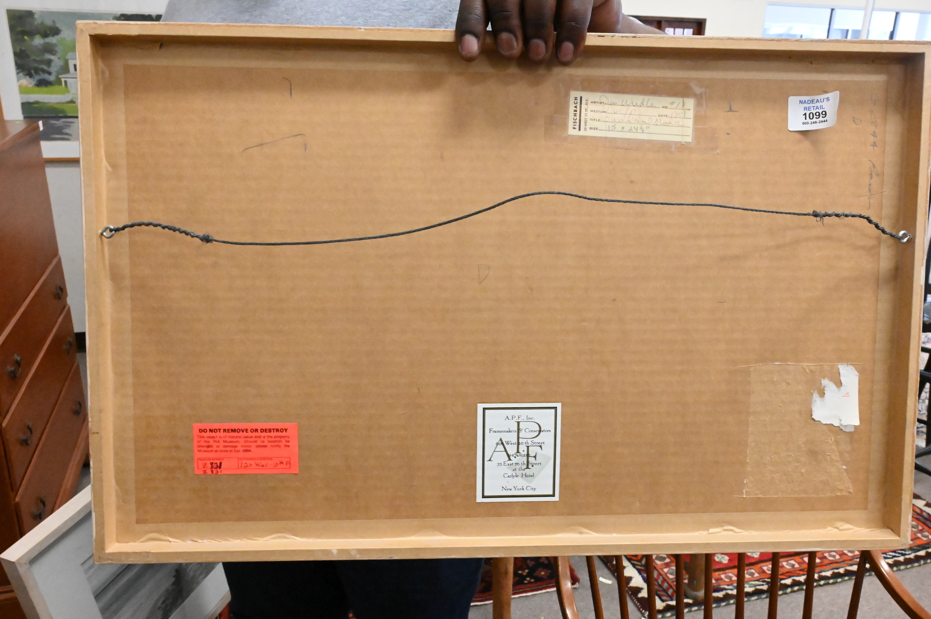 This report is provided by Nadeau’s Auction Gallery as a courtesy and reflects our opinion only. Bidders should conduct their own due diligence. The absence of a report does not imply the lot is free of issues. Assessments are based on visual inspection; unless noted, items have not been examined under UV light, movements and electrical components have not been tested, and artworks are generally not removed from frames. We are not professional conservators, and this report is not a comprehensive condition evaluation. Images provided form part of the report and should be reviewed carefully. All sales are final. For in-person inspection, please call 860-246-2444 or email info@nadeausauction.com.