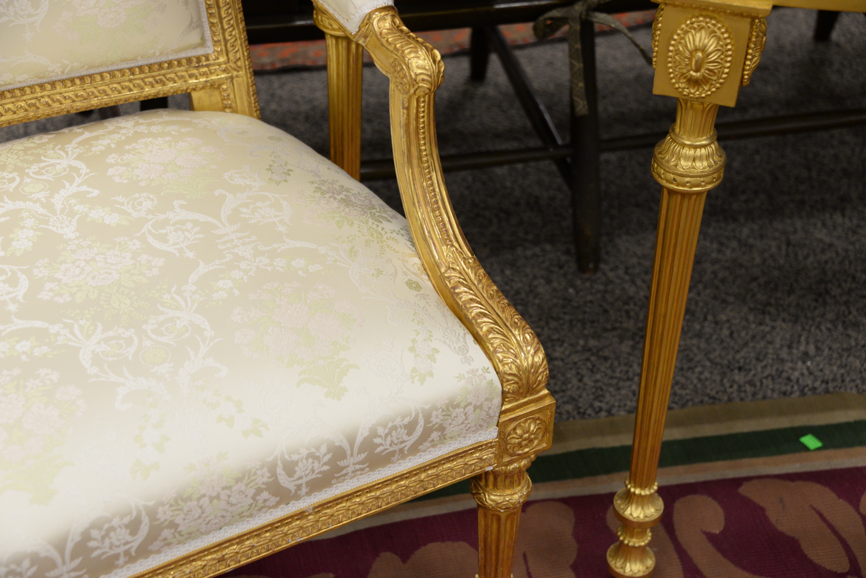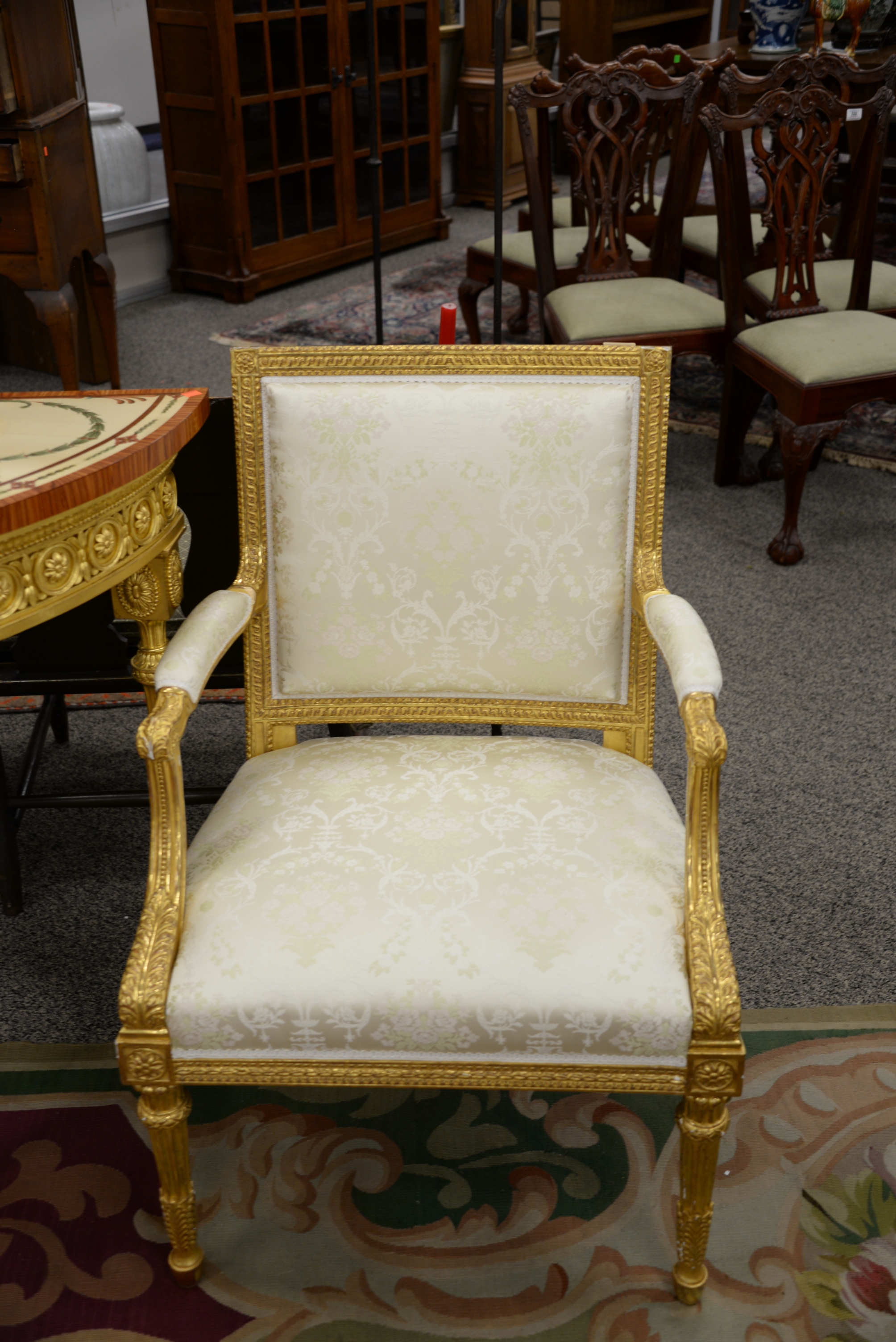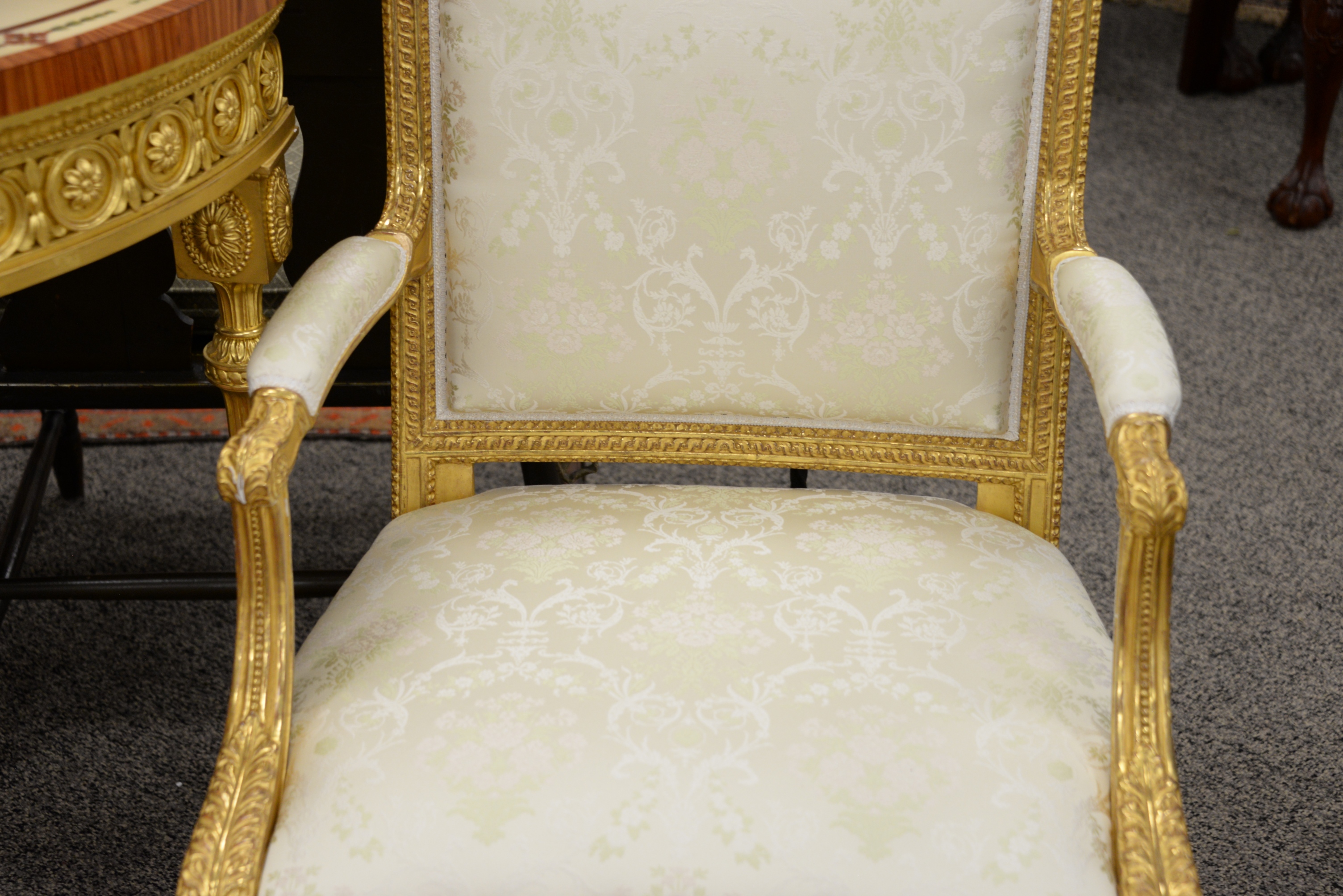 Lot 325: A Pair of Custom French Louis XVI Style Giltwood Fauteuils