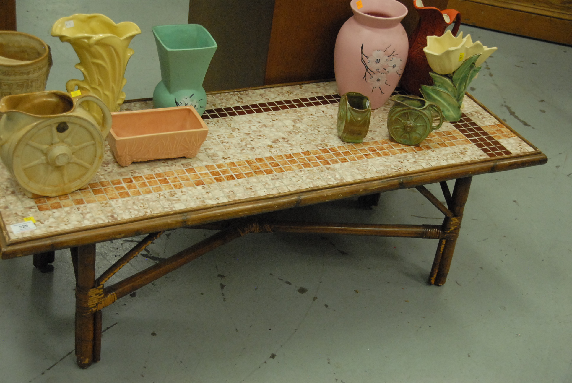 Bamboo framed tile top coffee table, lg. 48in. wd. 18in.