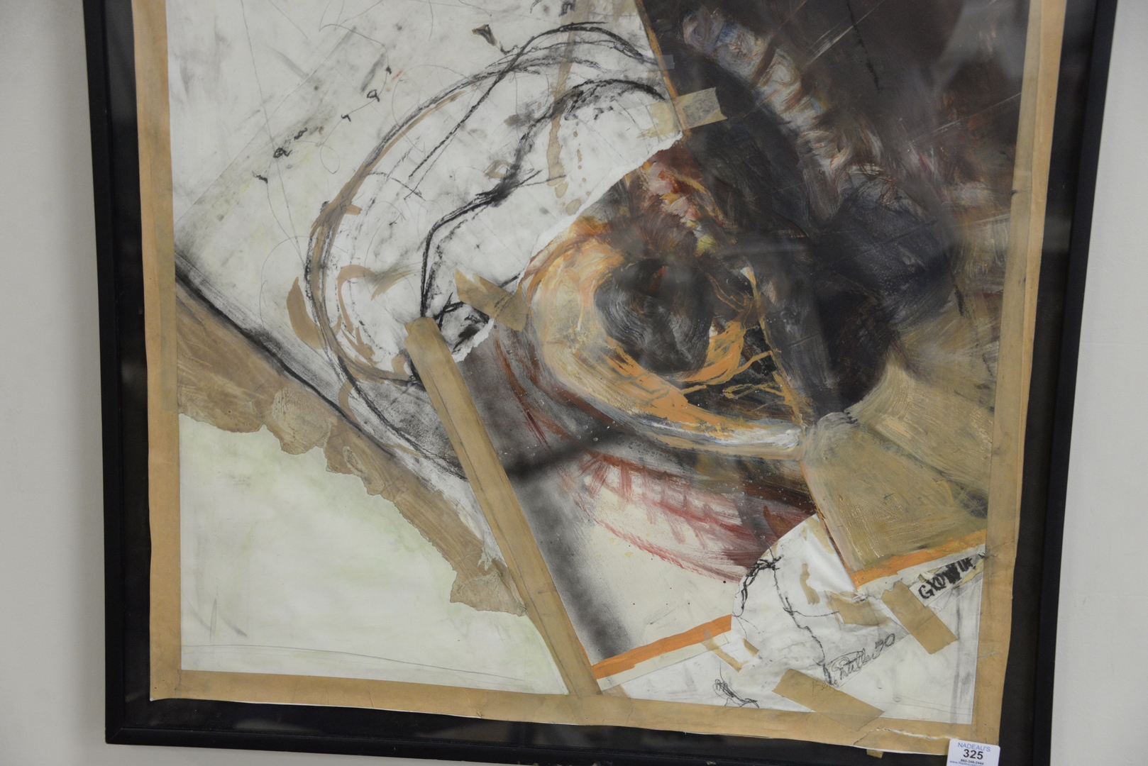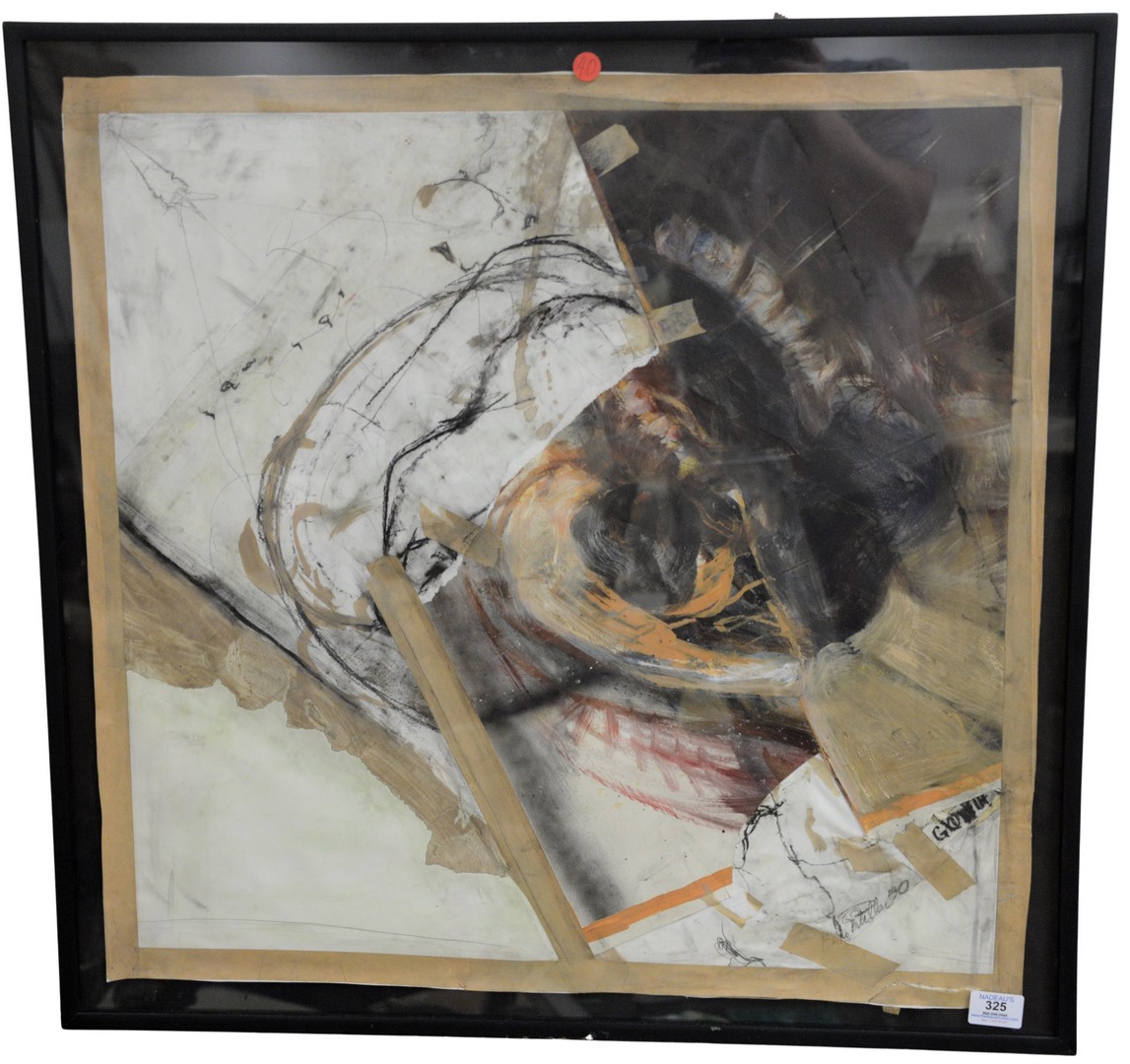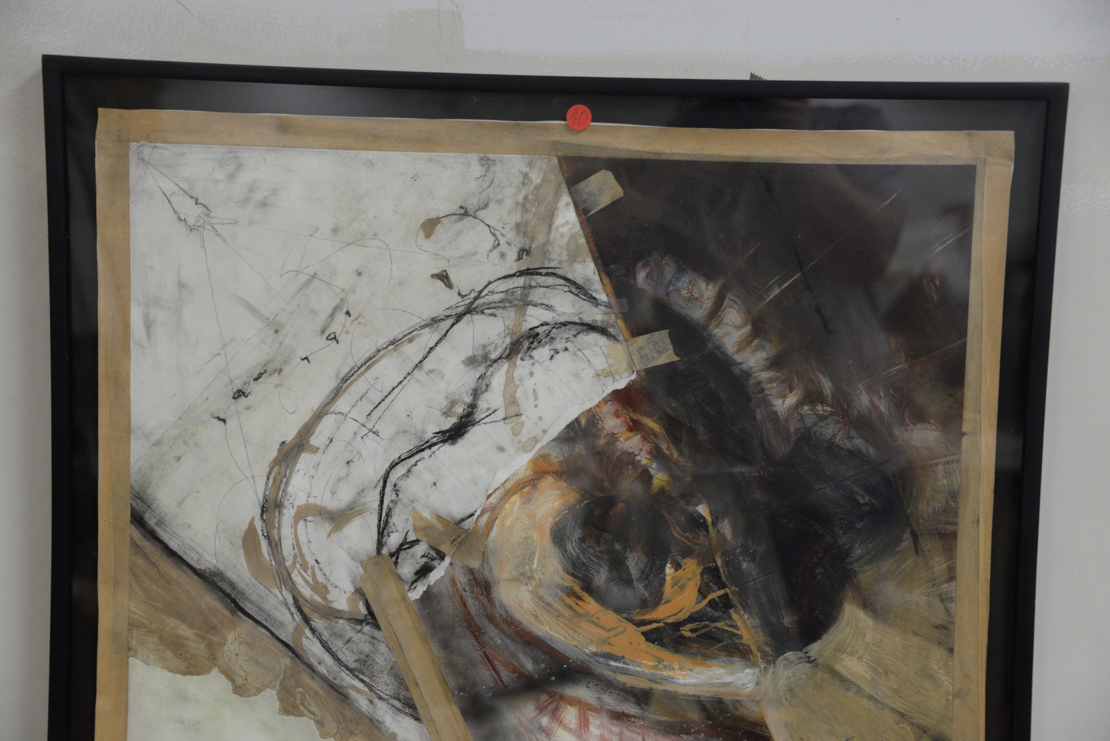 Lot 325: Ben Diller (American, 20th century), Black Heart, 1990, gouache, acrylic, charcoal and tape on paper, signed lower right “Ben Diller”, 11″ x 21″.