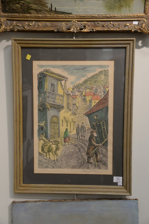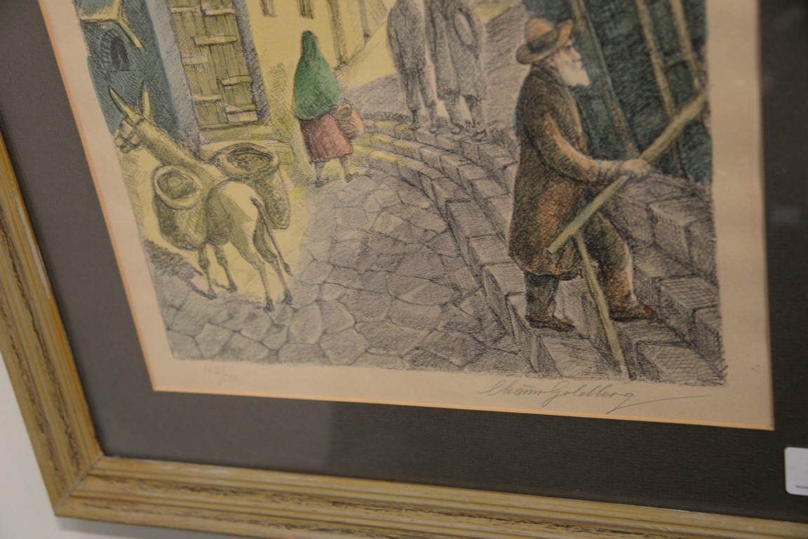 Lot 325: Chaim Goldberg Israeli 1917-2004, lithograph, Street in Israel, pencil signed, 162/200, image size 18 x 12. Provenance: Estate…