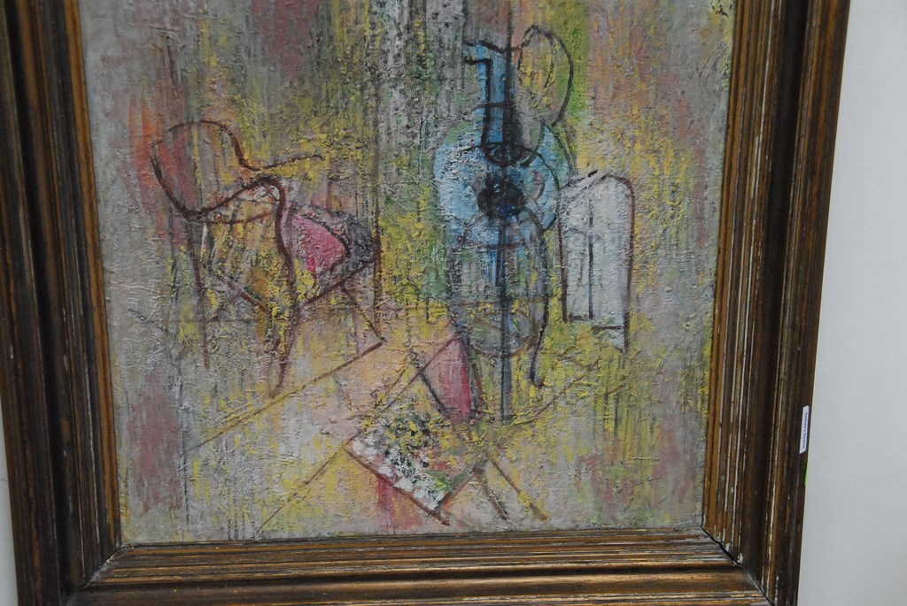 Lot 325: Contemporary YELLOW ROOM RIGHT OF CLOSET oil on canvas signed upper right indistinctly 21 1/2 x 18 7/8