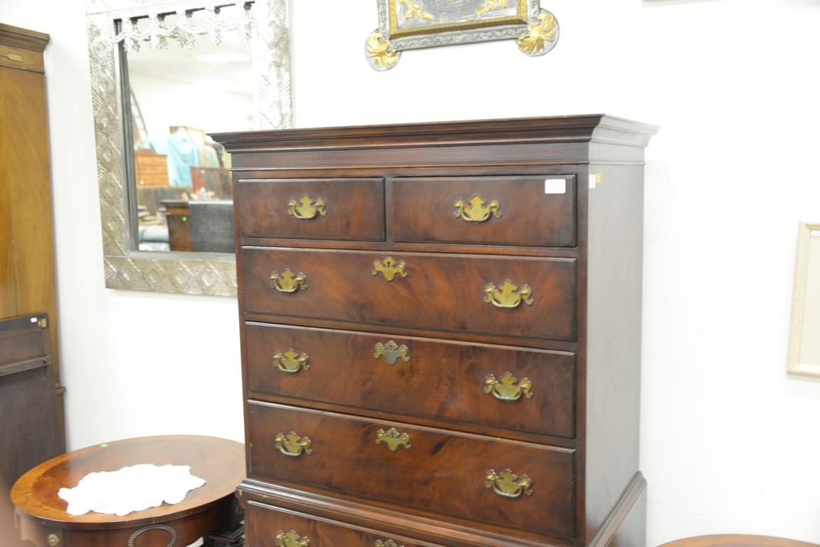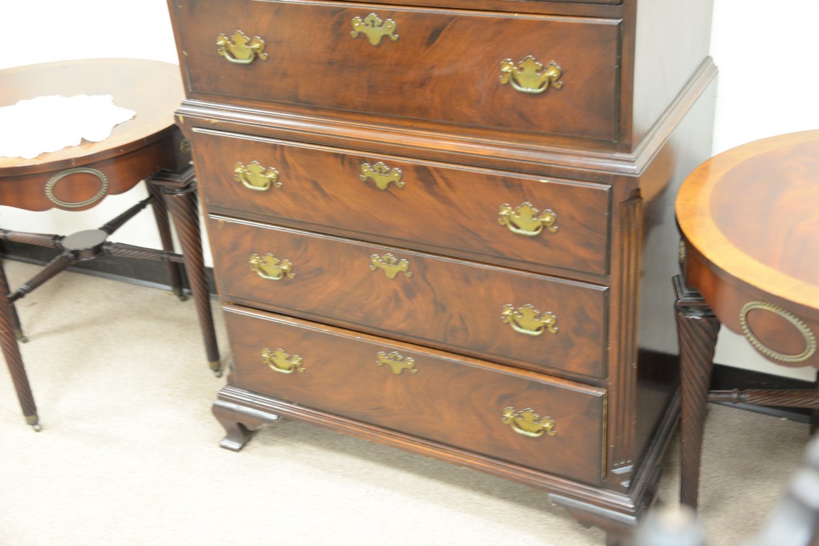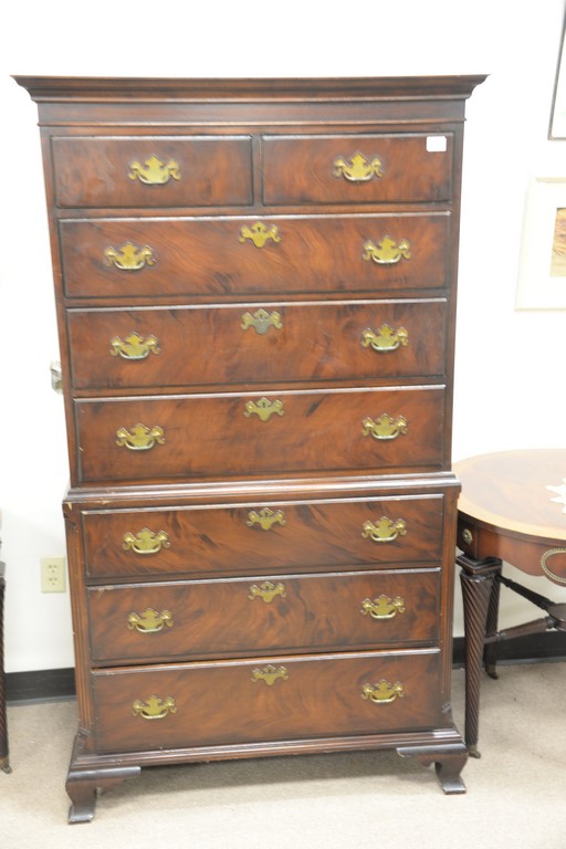 Custom mahogany two part chest on chest. ht. 67, wd. 38, dp. 21